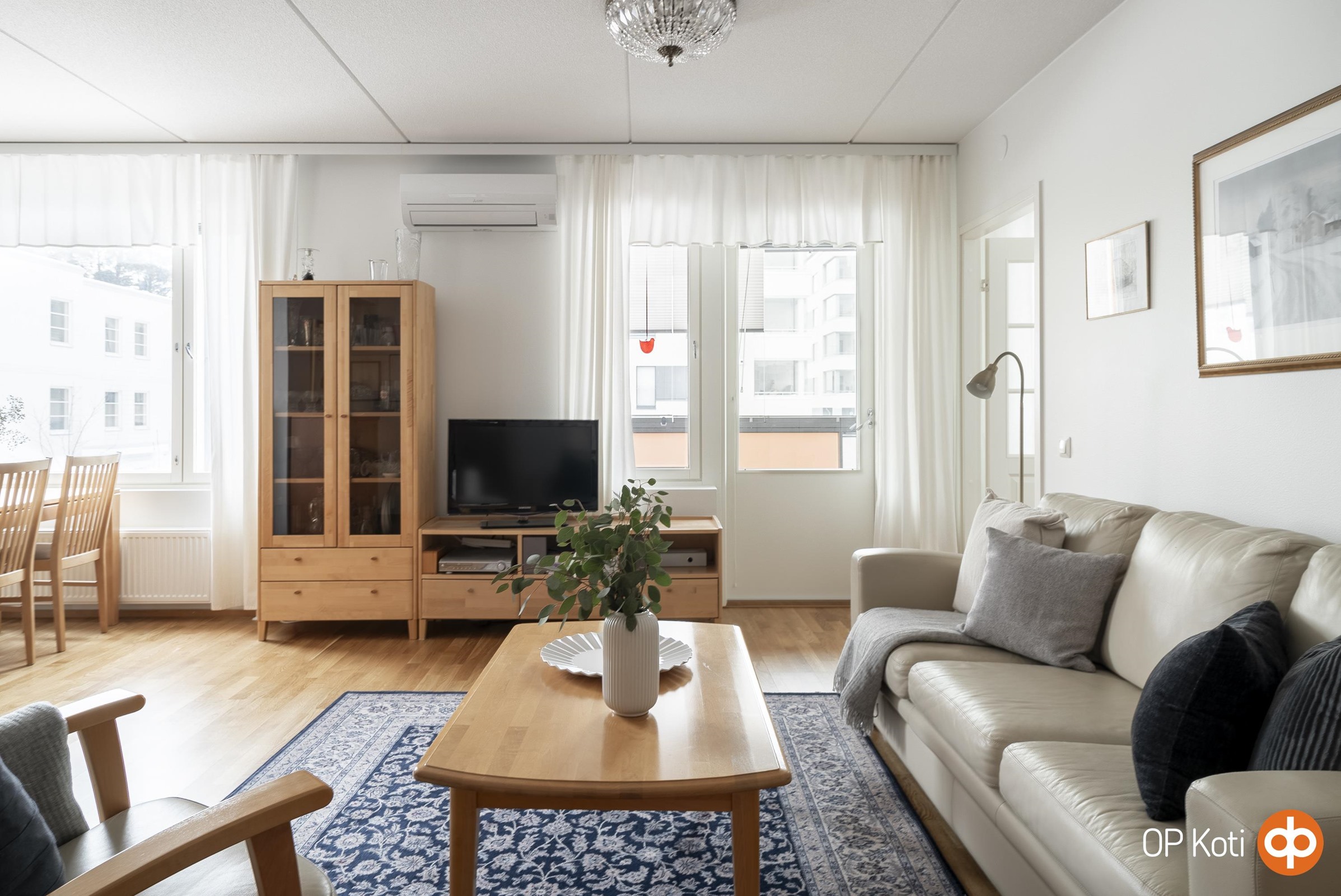 Klassisen kaunis ja valoisa koti, jonka toimiva pohjaratkaisu viehättänee sekä avo- että perinteisen keittiön nimeen vannovia. Osa keittiöstä jää katseilta piiloon seinän taakse, mutta ruokailutilan kautta keittiö yhdistyy saumattomasti olohuoneeseen ja mahdollistaa seurustelun keittiöpuuhien parissa ollessa. Asunnossa on mukavasti säilytystilaa isohkon vaatehuoneen ansiosta. Lasitetulla parvekkeella nautit aamukahvit kevään ensipäivistä pitkälle syksyyn ja tuuletat petivaatteet tuiskuilta suojassa talvipakkasilla. Ilmalämpöpumppu auttaa pitämään huoneiston lämpötilan miellyttävänä kesähelteillä. Vuonna 2020 rakennettu talo seisoo vakaana omalla tontillaan ja tarjoaa huoletonta asumista palveluiden kupeessa. Suojaisa pihapiiri on lapsi- ja senioriystävällinen. Uudehkossa yhtiössä ei ole odotettavissa suuria remontteja lähitulevaisuudessa. Autohallin latausvalmiuden asentamisen hanke toteutetaan alkuvuodesta. Kustannus projektista on 40.000 euroa ja se jakaantuu autohallipaikkojen osakkaille, joilla ei vielä ole latauspistettä. Myytävän asunnon kanssa samaan aikaan myynnissä on autohalliosake hintaan 15 000 €. Autohallipaikan osalta kustannus latausvalmiuden asentamisesta on arviolta noin 1428,57 €. Ostoskeskus Saari palveluineen löytyy kulman takaa. Merellinen Laajasalo on tulevaisuuden asuinaluetta, jossa kaikki on lähellä; palvelut, koulut, päiväkodit, luonto, meri, ulkoilualueet, monipuoliset harrastusmahdollisuudet ja kuntoportaat. Bussilla pääset nopeasti Herttoniemen metroasemalle ja siitä matkaa jatkuu näppärästi keskustaan. Tulevaisuudessa matka taittuu myös raitovaunulla. Tervetuloa tutustumaan tähän ihastuttavaan ja todella toimivaan kokonaisuuteen! Lisätiedot ja esittely: Tiina Korpinen, tiina.korpinen@op.fi tai 0407755277.