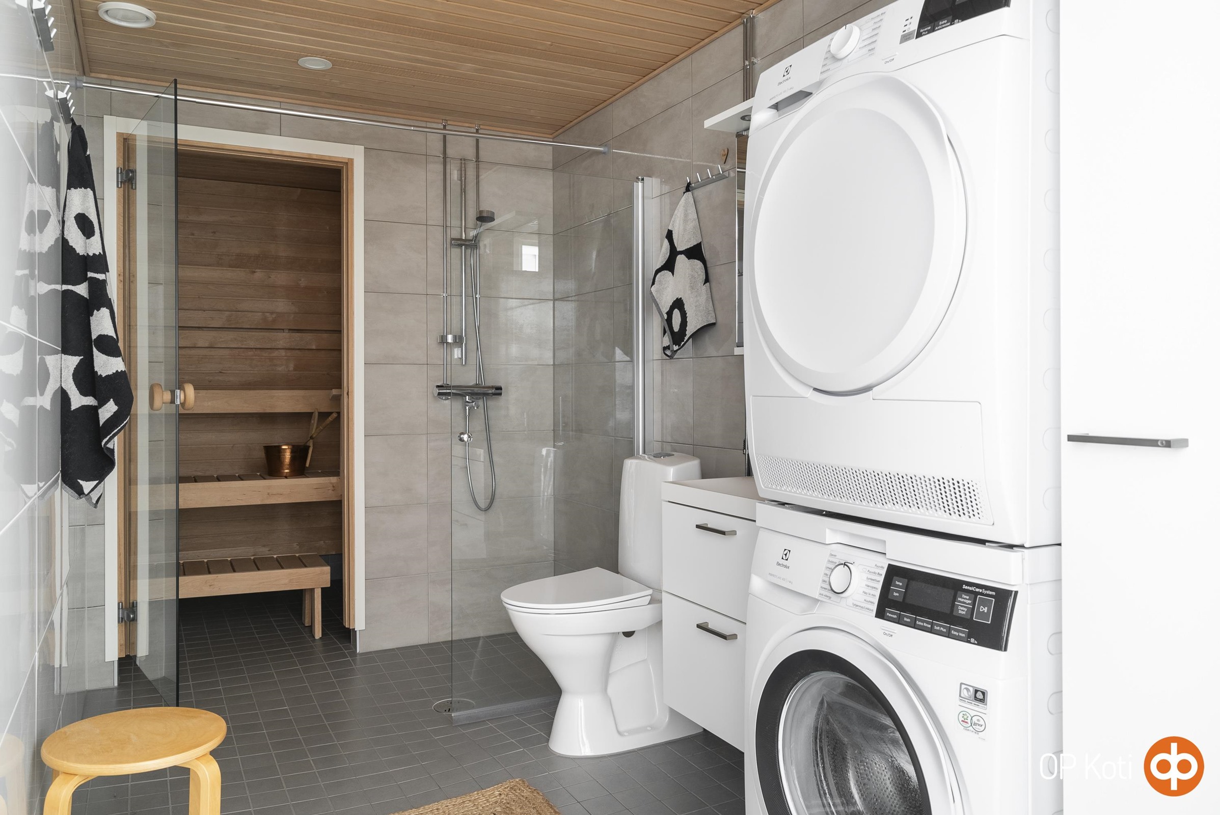 - Sauna, sähkökiuas, kylpyhuone, suihku, suihkuseinä, peilikaappi, kaapit, allaskaappi, pesukoneliitäntä, lattialämmitys, kiinteät valaisimet, bidee-suihku