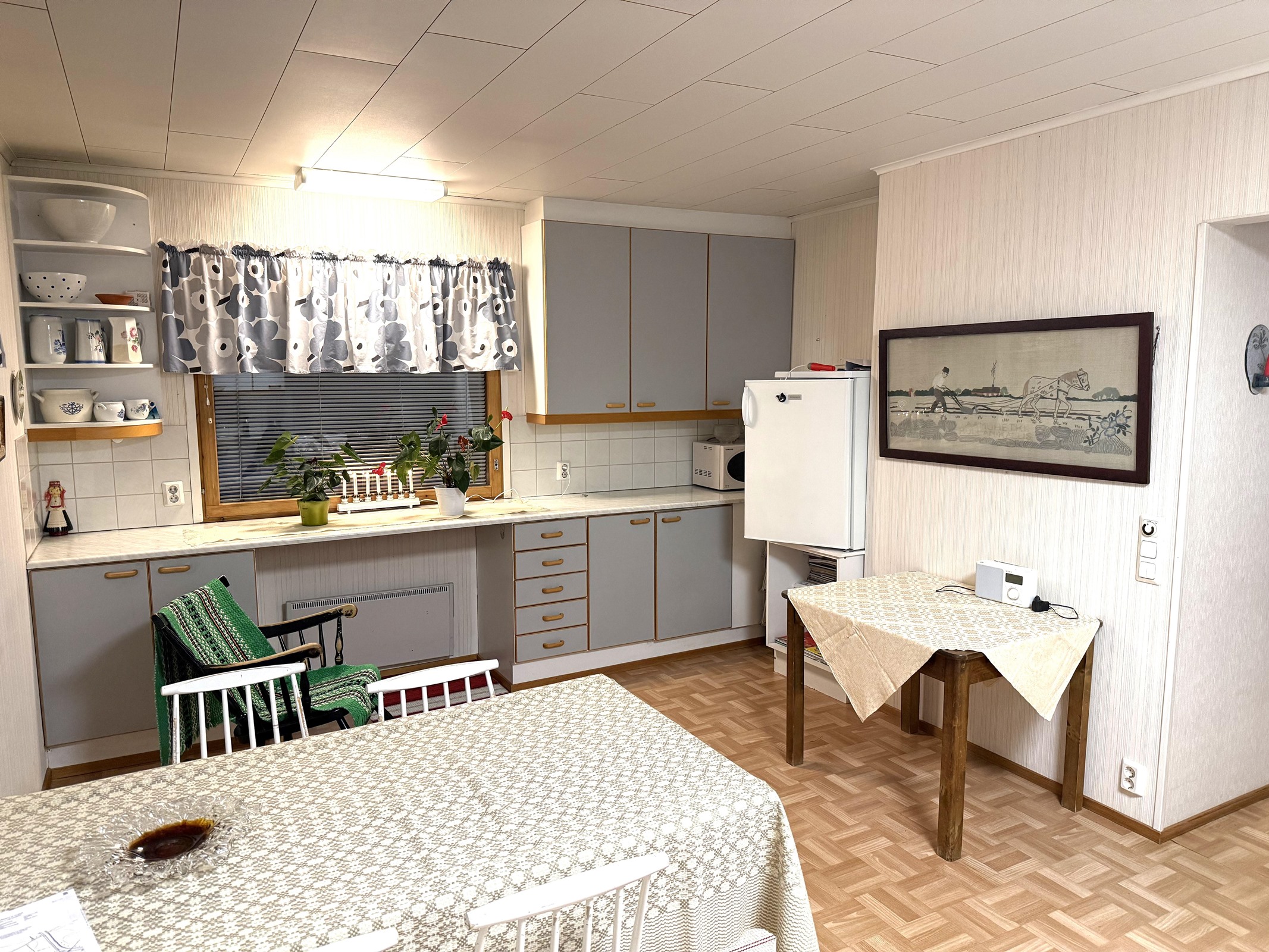 - Jääkaappi, lattialiesi, liesikupu, kaapistot, Arkkupakastin. Puuhella