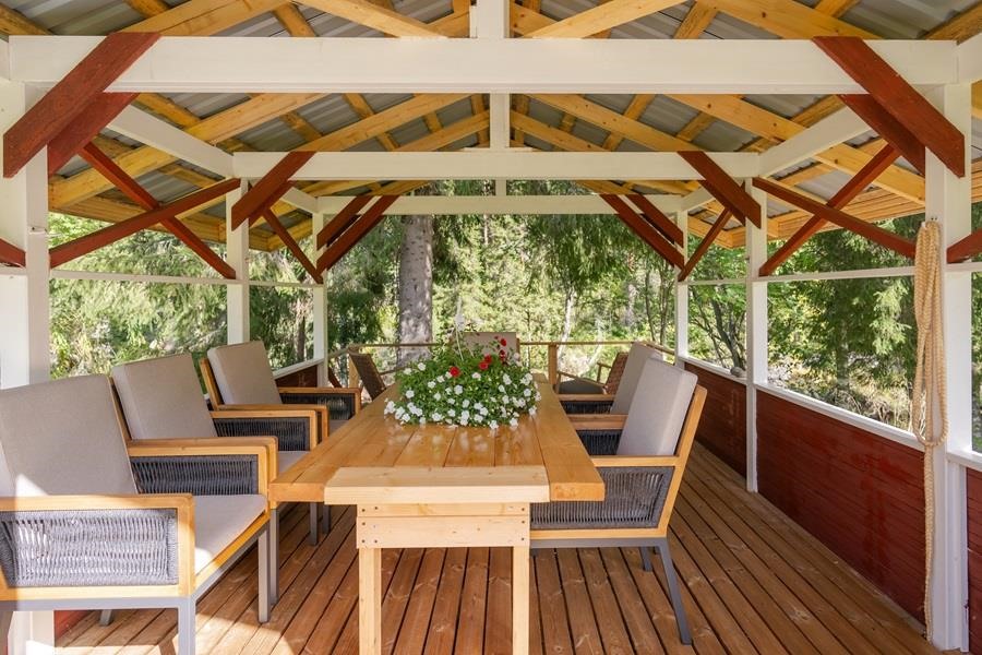 Pihapiiristä, Suolijoen rannalta löytyvät sekä jatkuvalämmitteinen sauna että unohtamattomia löylyhetkiä tarjoava iso savusauna. Lisäksi pihassa on 2013 valmistunut nikkarin tupa, jossa kodikas uniaitta kesävieraille ja verstas/varastotilaa.