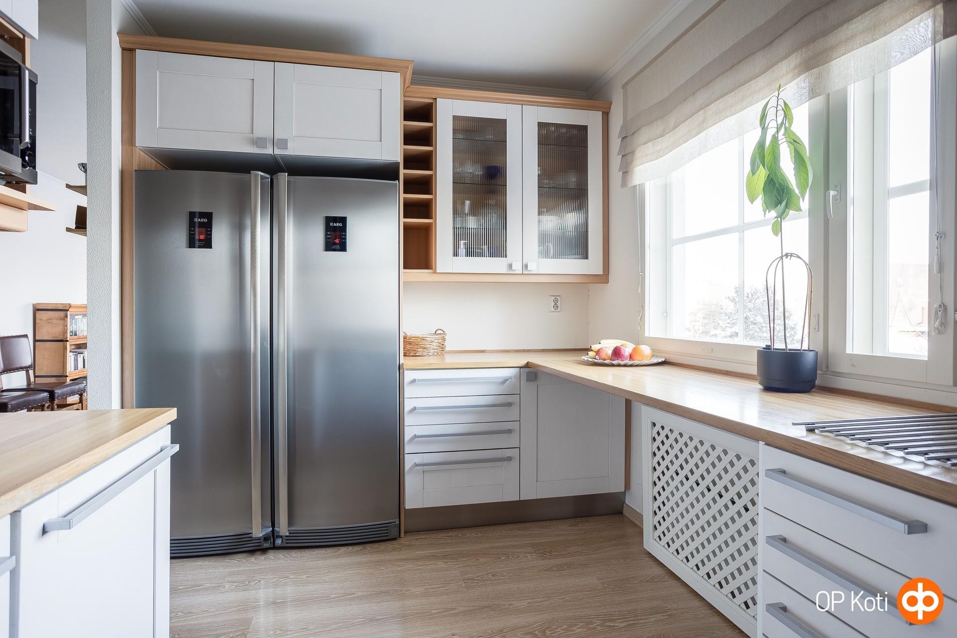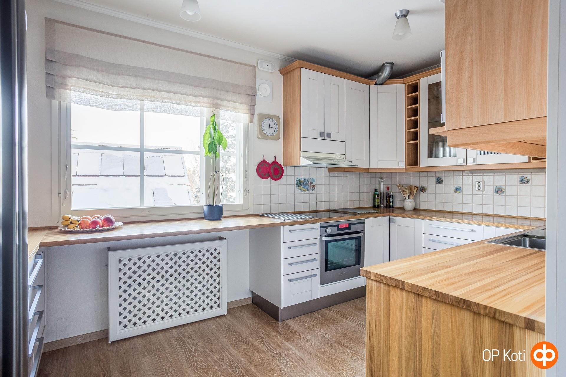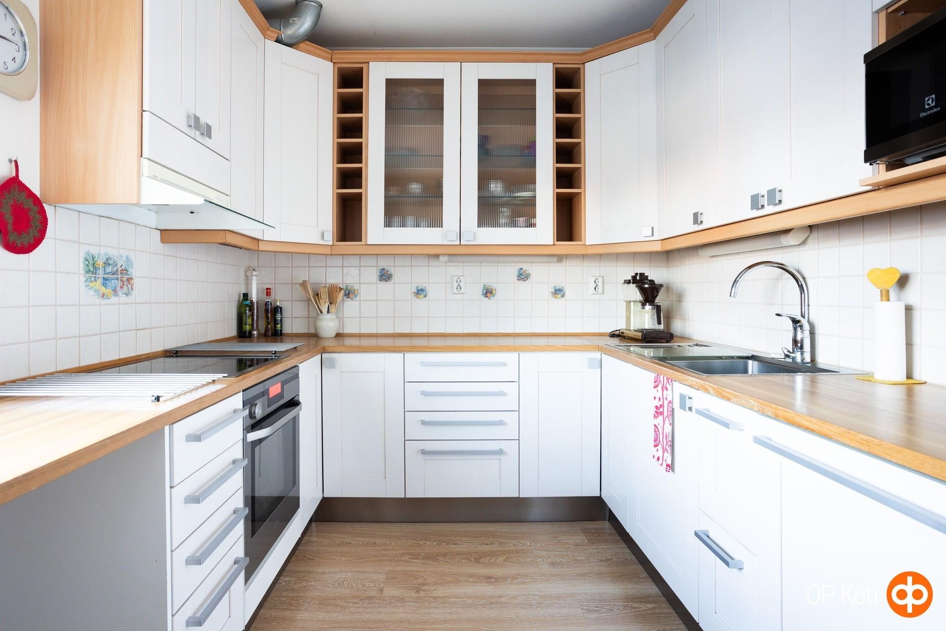- Jääkaappi Täyskorkea, uusittu -15, jääkaappipakastin Täyskorkea, uusittu -15, erillisuuni höyryuuni, liesitaso keraaminen, liesituuletin, astianpesukone uusittu -15, kaapistot, kiinteät valaisimet. Keittiö remontoitu 2015