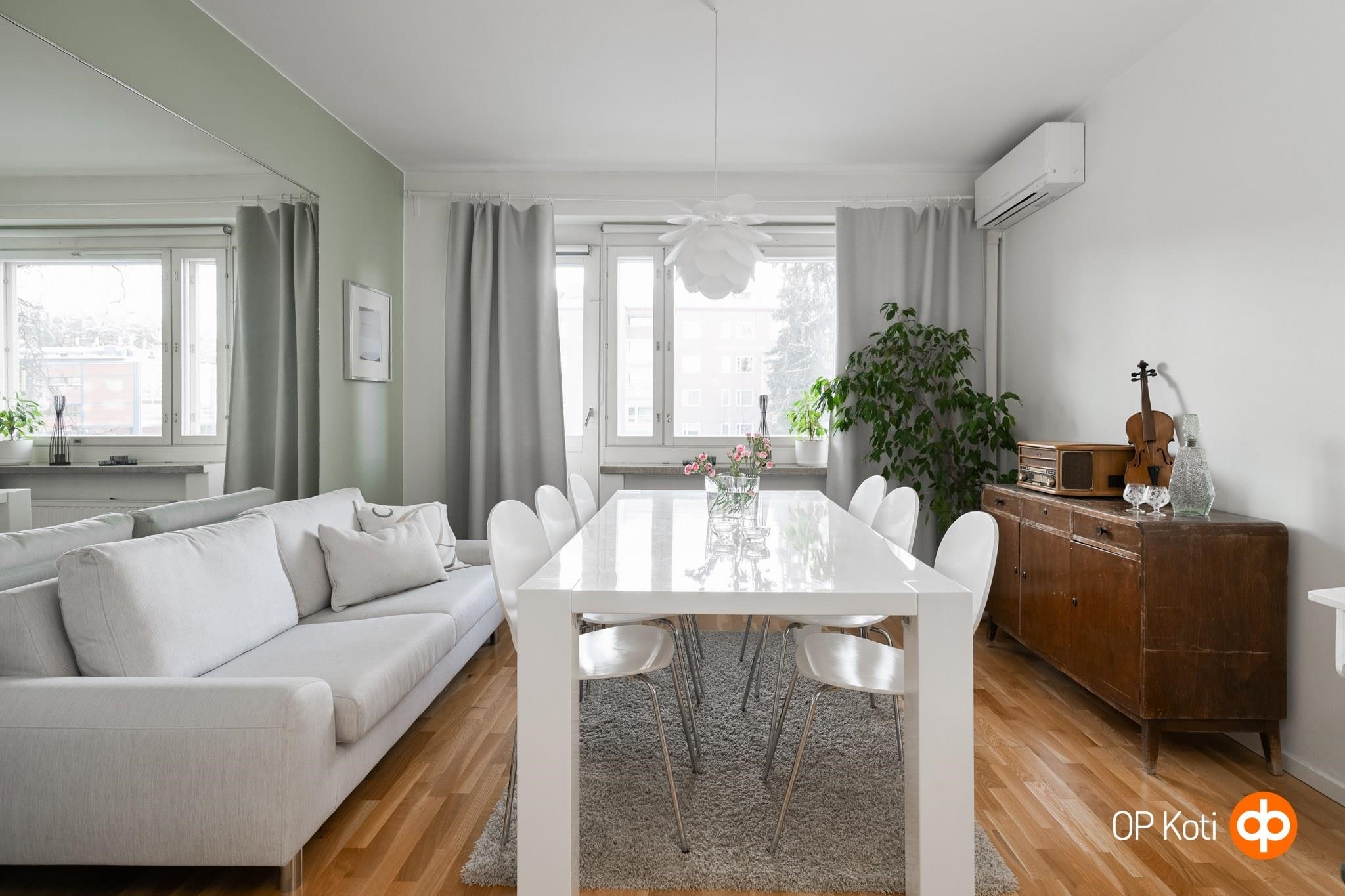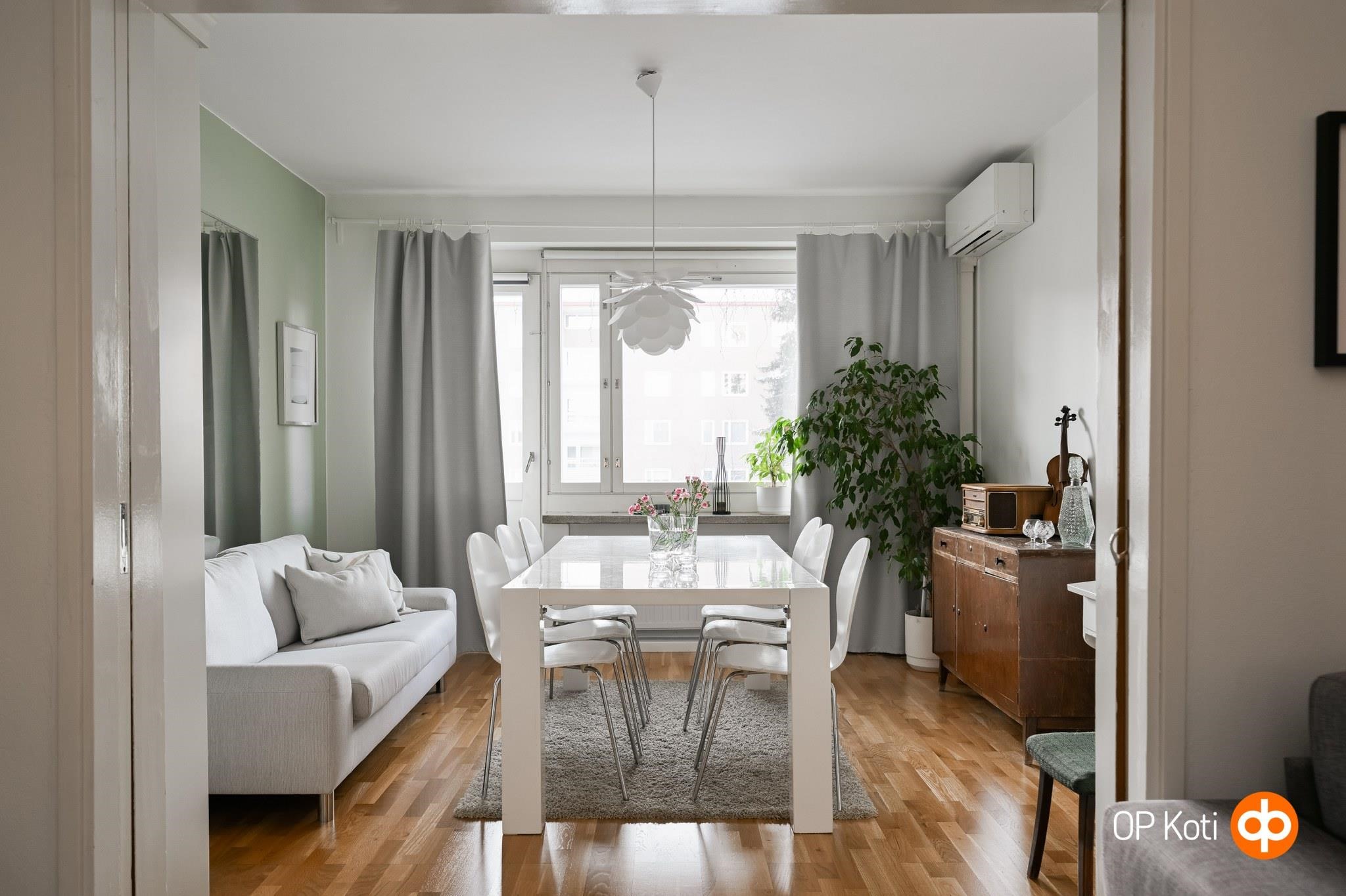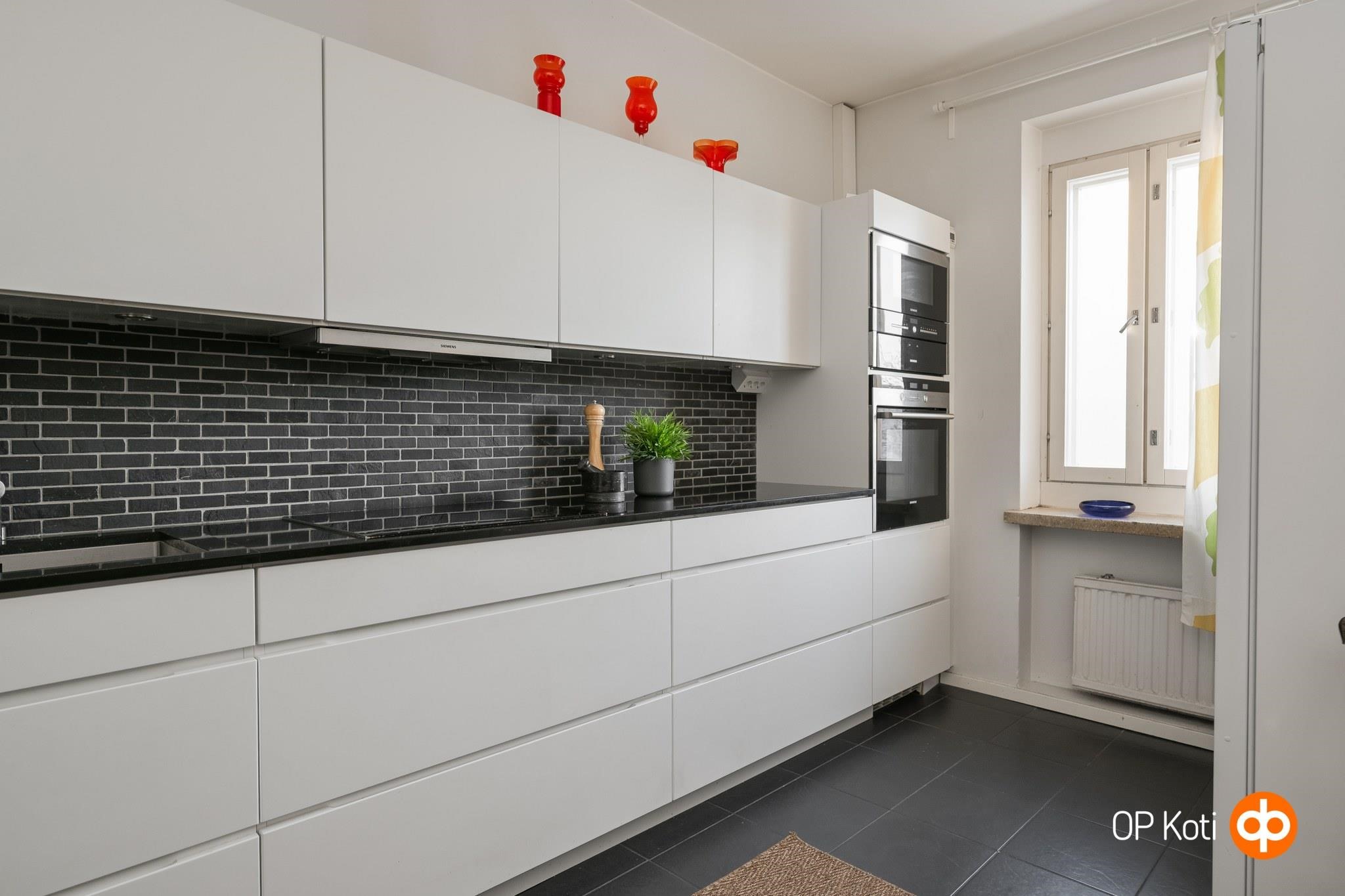 Huippupaikalla yläkaupungilla Vaasankadulla tilava ja valoisa 4. kerroksen läpitalonhuoneisto on todellinen löytö käytännöllisyyttä arvostavalle kodin etsijälle. Tässä idyllisessä 50-luvun kivitalossa voi nauttia avotakan tunnelmasta kotisohvalla ja järjestää illallisia isommallekin porukalle. Asunnossa on loistava pohjaratkaisu. Avarassa ja tunnelmallisessa olohuoneessa on parkettilattia ja sinne sopii tyylikkäästi myös iso ruokailutila. Olohuoneesta avautuu ovi suurimpaan makuuhuoneeseen. Kaksi pienenpää makuuhuonetta sijoittuvat sisäpihan puolelle ja soveltuvat erinomaisesti niin lasten kuin vieraiden tyyssijoiksi. Lisäksi kaksi wc:tä helpottavat perheen arkea. Koti lähellä kouluja, päiväkoteja ja ruokakauppoja on suorastaan jo arjen kevennys. Tämän kohteen ulottuvilta löydät myös hyvät julkiset liikenneyhteydet. Tässä v.1952 rakennetussa taloyhtiössä on useita liiketiloja ja vastike on vain 2,6 €/m2. Myös remontit ja korjaustoimenpiteet on tehty ajallaan mm. hissit saneerattu ja tehty perinteinen putkiremontti, sekä viimeisimpänä vesikaton saneeraus. Keväällä yhtiössä alkaa julkisivuremontti. Onko tässä juuri sinun uusi kotisi? Varaa oma esittelyaikasi jo tänään.