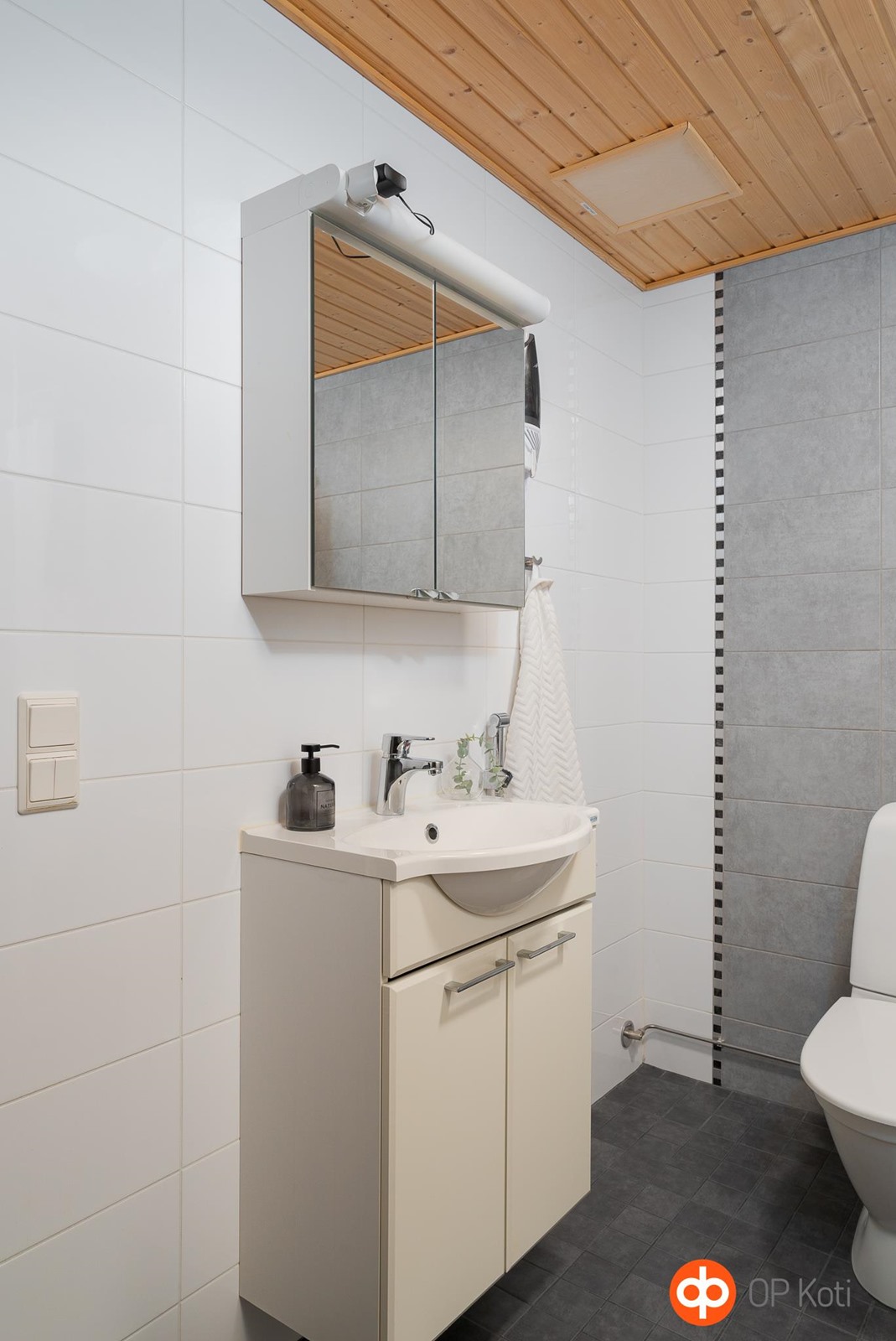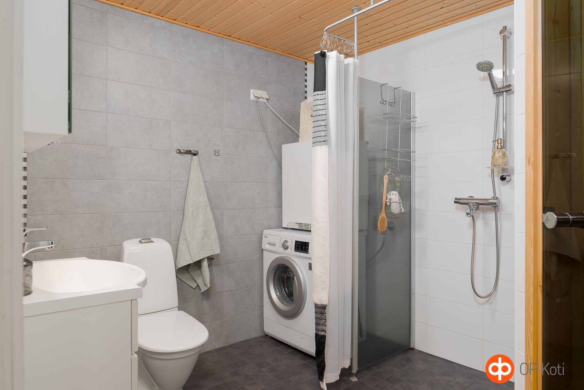 - Sauna, sähkökiuas, kylpyhuone, erillinen wc, suihku, suihkuseinä, peilikaappi, kaapit, allaskaappi, pesukoneliitäntä, lattialämmitys, kiinteät valaisimet.