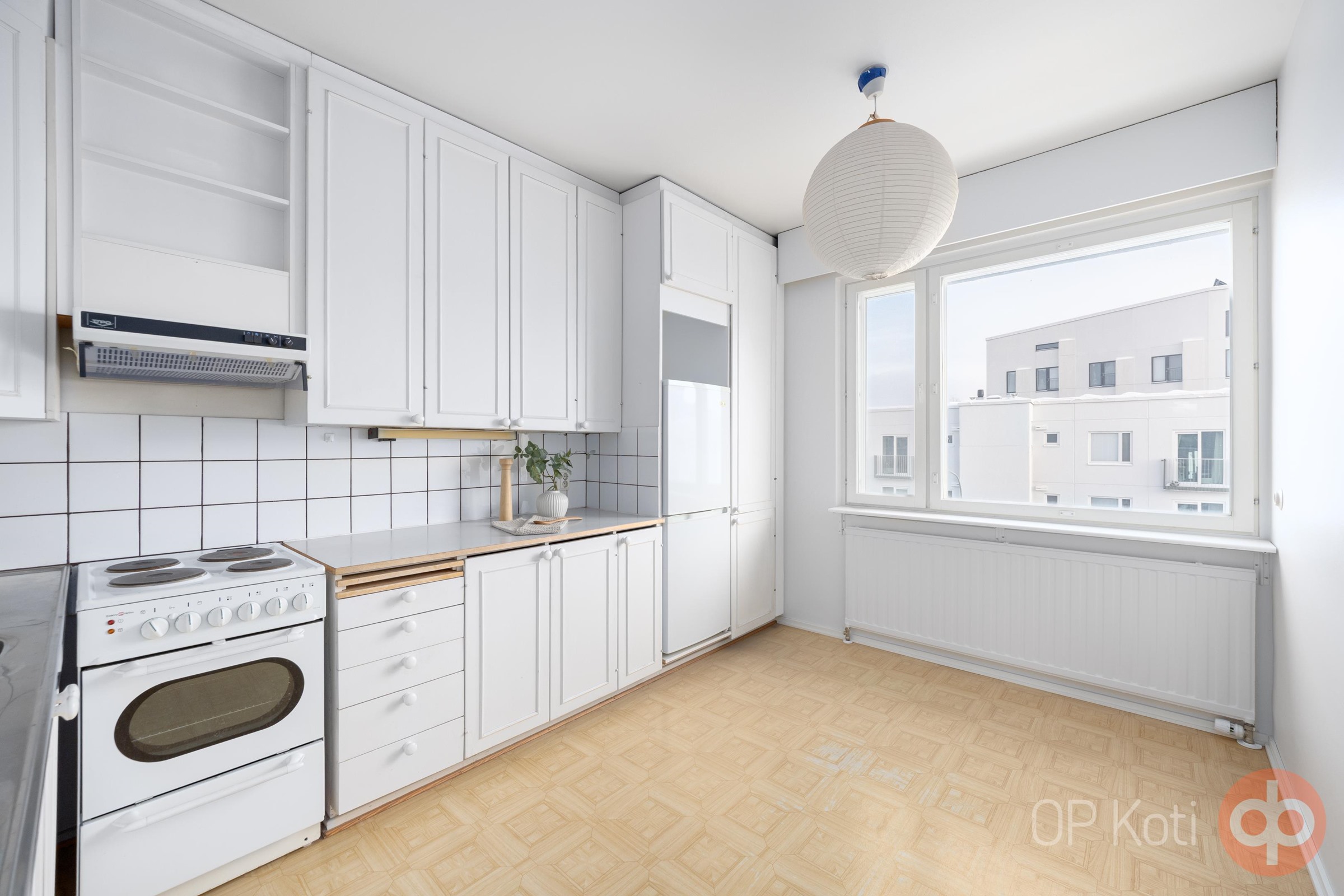- Jääkaappipakastin, lattialiesi, sähköliesi, liesituuletin, kaapistot, kiinteät valaisimet.