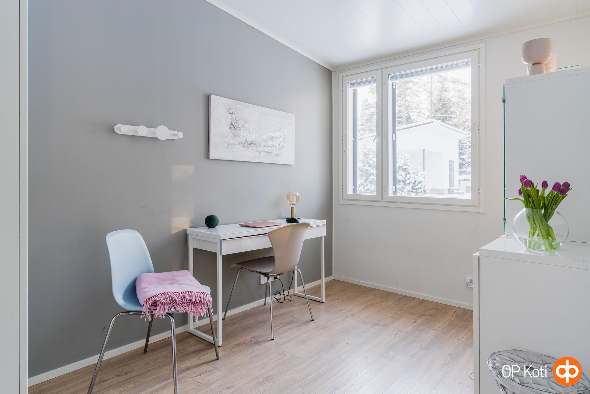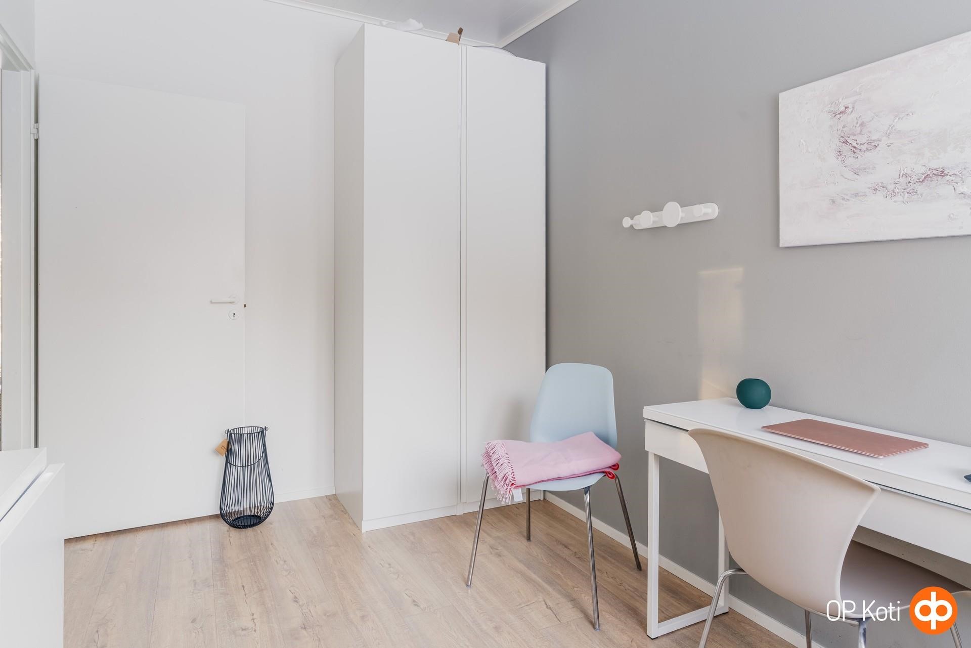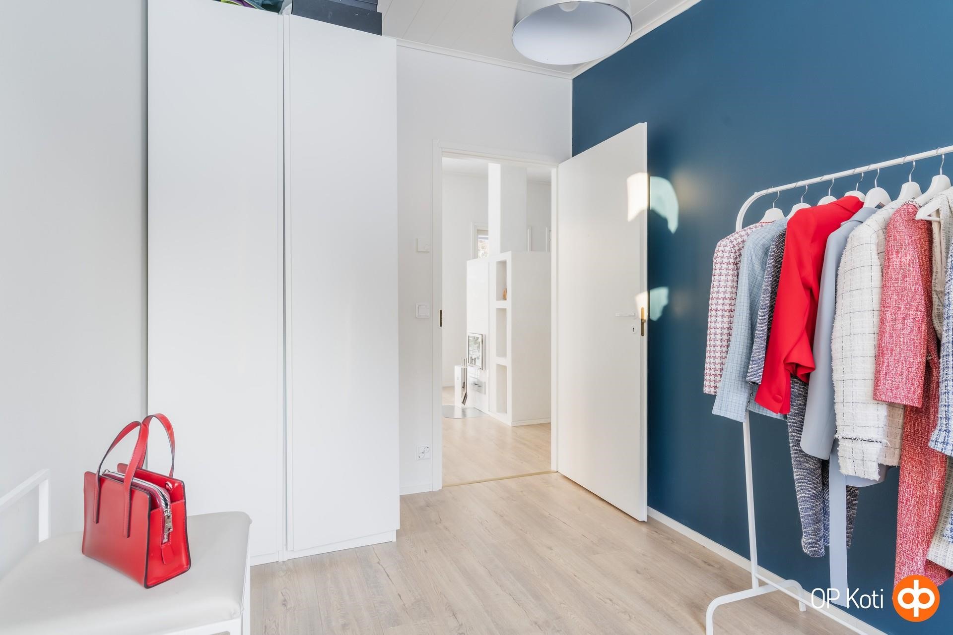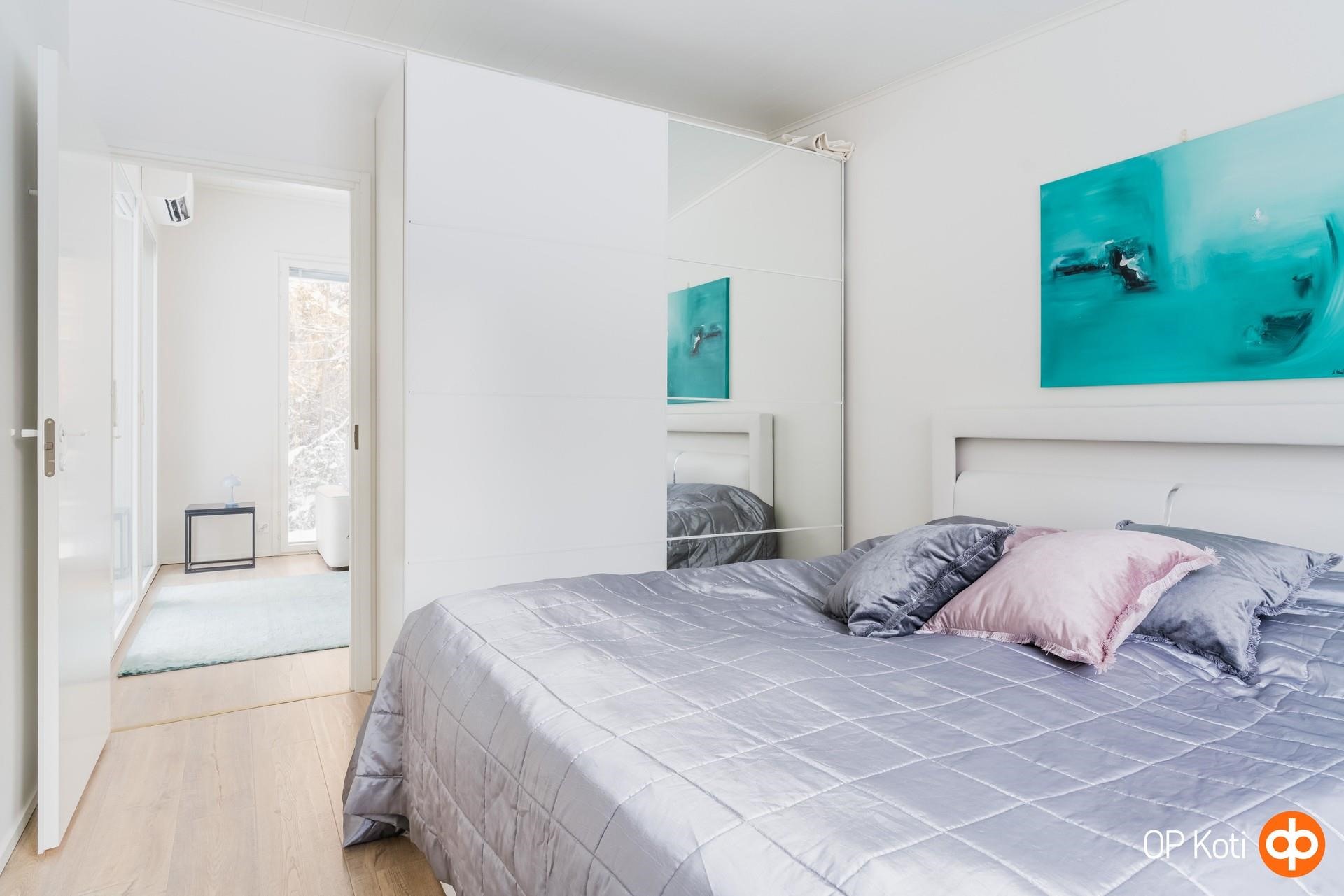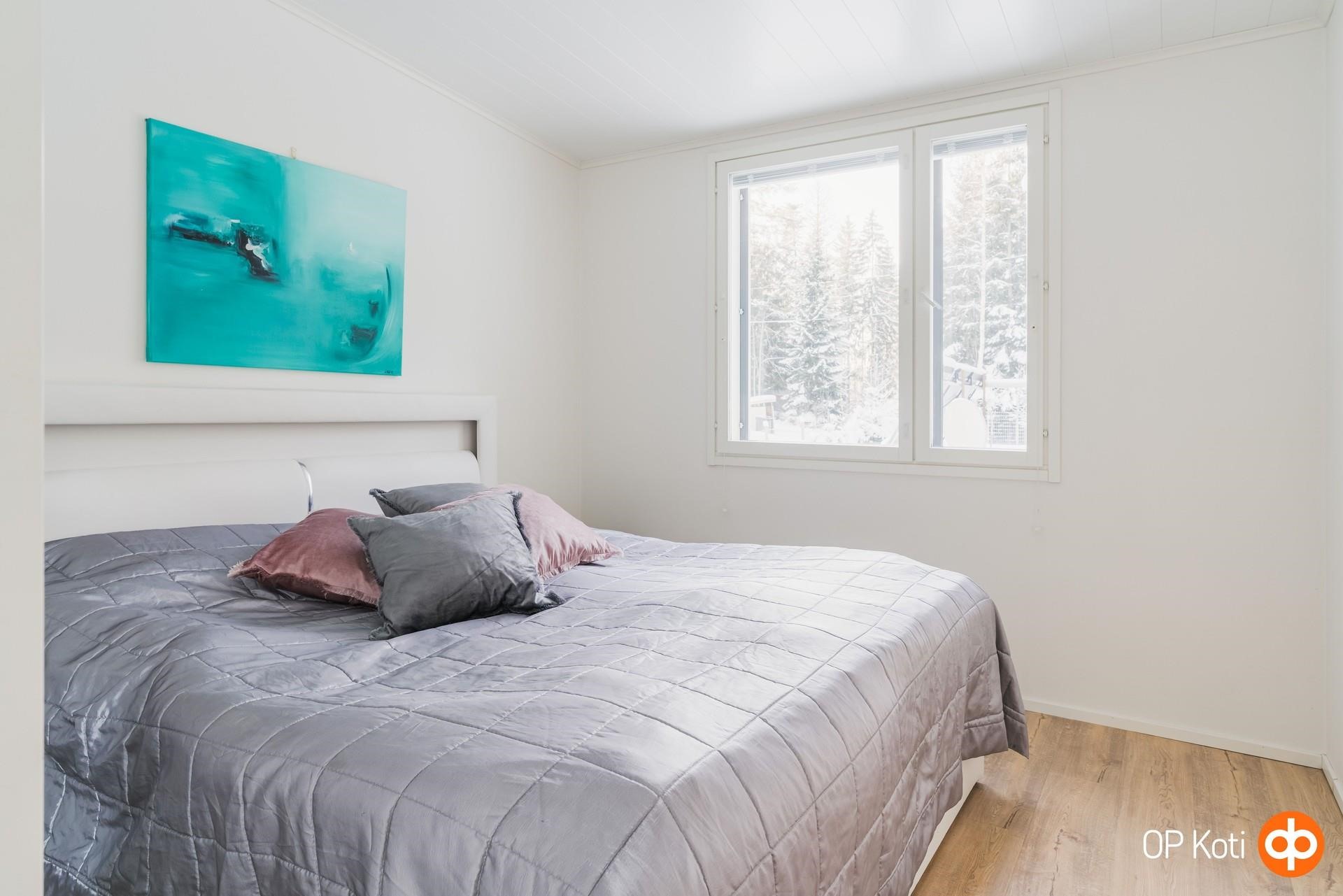 Kodissa on kolme hyvän kokoista makuuhuonetta, joissa jokaisessa on kaapistot. Autokatoksen yhteydessä oleva lämmin varasto toimii tällä hetkellä kuntoilutilana, mutta se soveltuu mainiosti myös työskentelyyn tai muuhun harrastuskäyttöön.