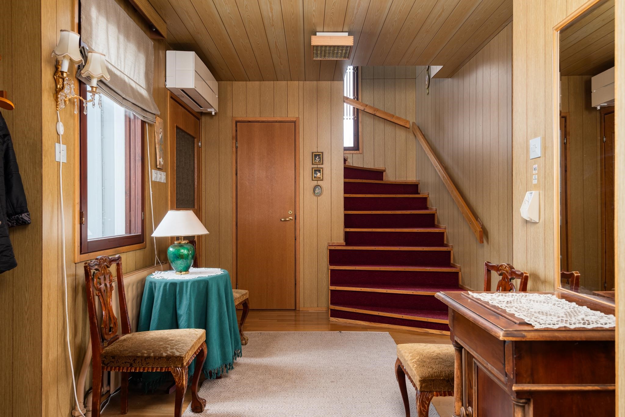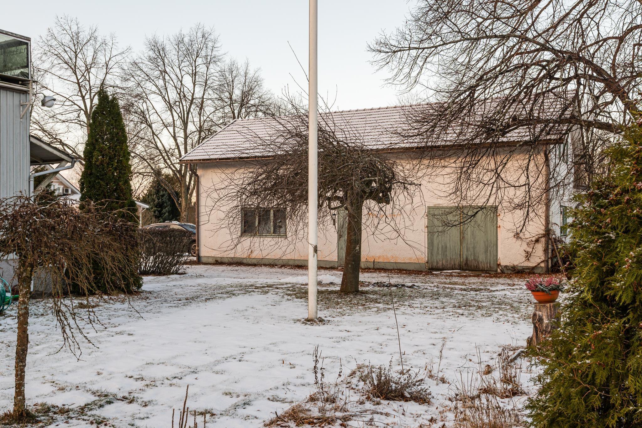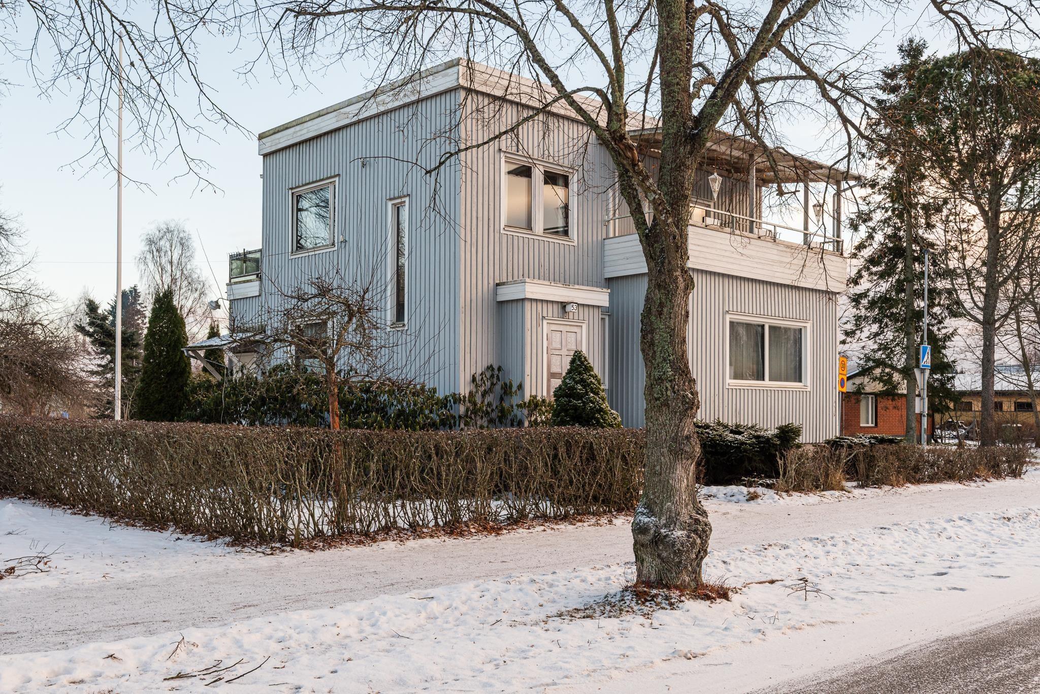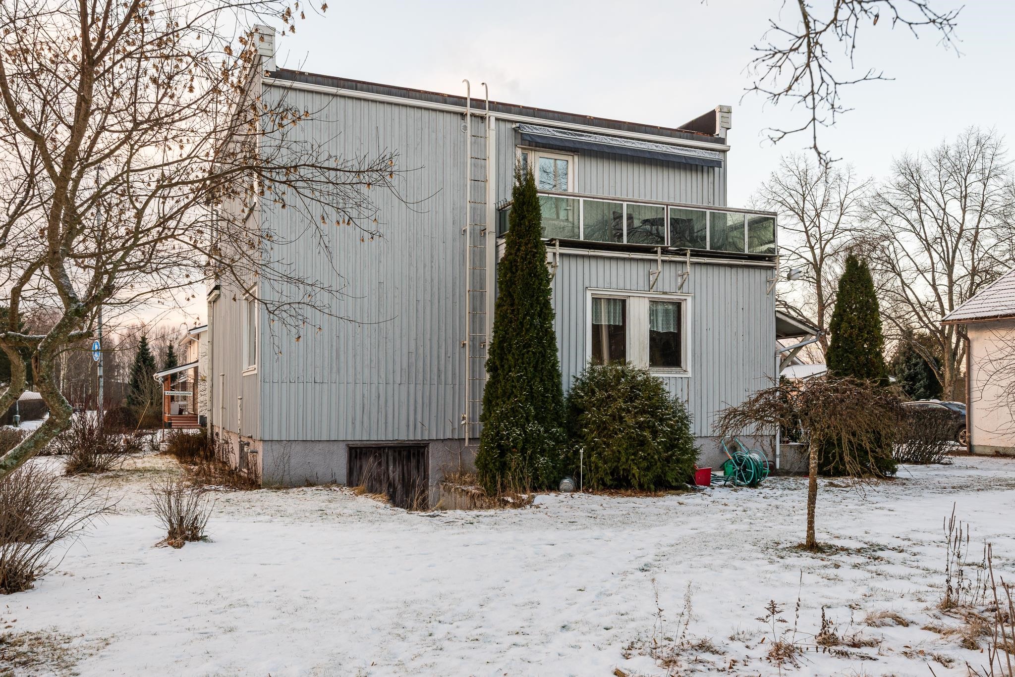 Asuinrakennus on uniikki funkkistalo 1930-1940-luvulta. Sisääntulokerroksessa avara olohuone ja keittiö, jossa todella paljon kaappitilaa. Yläkerrassa kaksi makuuhuonetta, kylpyhuone ja tilava vaatehuone. Kellarikerroksessa saunatilat ja varastotilaa.