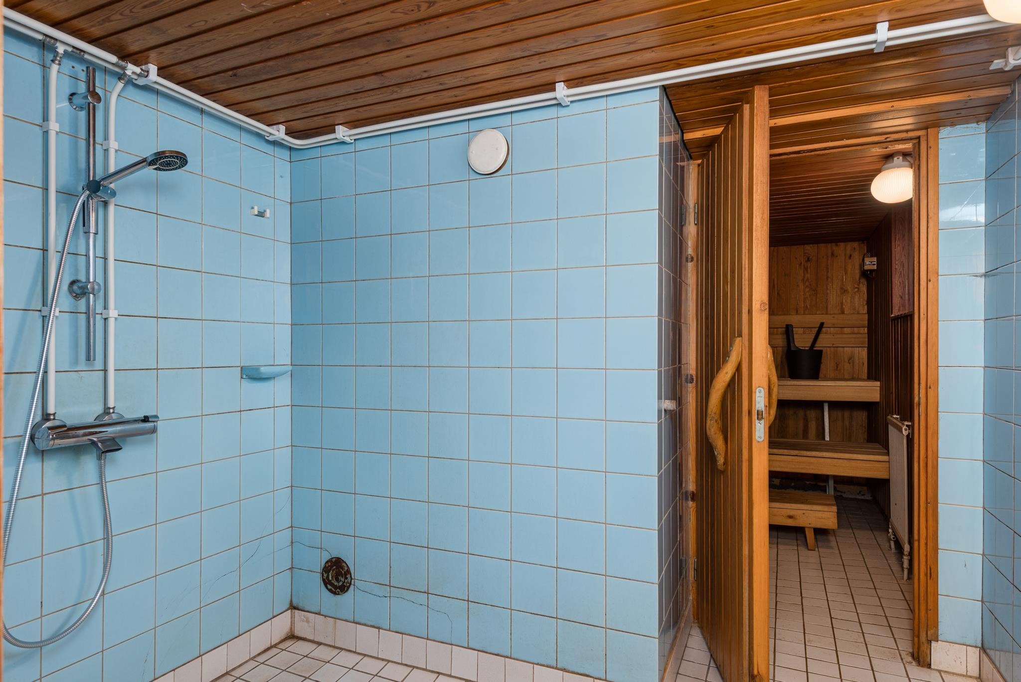 - Sauna, sähkökiuas, kylpyhuone pesuhuone kellarissa, kylpyhuone yläkerrassa, erillinen wc, suihku kellari ja yläkerta, peilikaappi kph, allaskaappi, pesukoneliitäntä kellarin aulassa, kiinteät valaisimet.