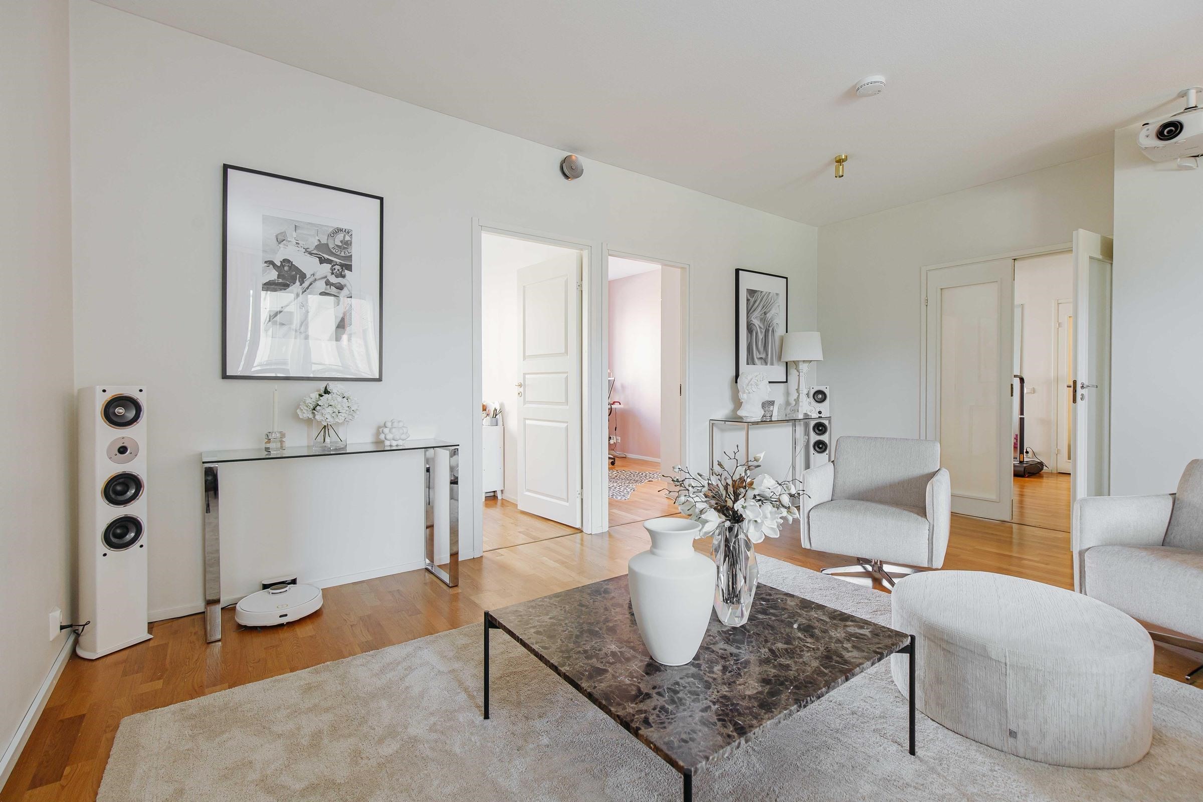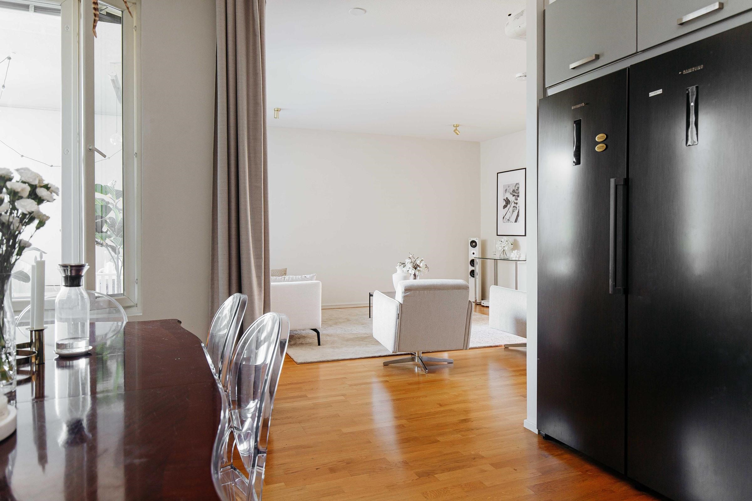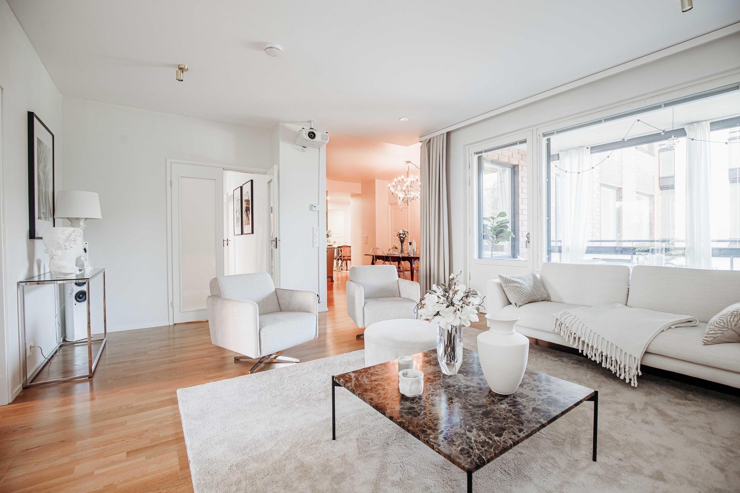 Tervetuloa tutustumaan valoisaan ja tyylikkääseen toisen kerroksen kotiin, jossa näkyy moderni ilme ja ajatuksella suunniteltu koti. Tämä avara ja harmoninen kokonaisuus tarjoaa rauhallisen ja viihtyisän asuinympäristön, jossa jokainen yksityiskohta on huolella toteutettu. Tässä kodissa tilava ja käytännöllinen keittiö yhdistyy sulavasti avoimeen ja valoisaan olohuoneeseen, luoden yhtenäisen ja kutsuvan oleskelutilan. Moderni keittiö tarjoaa runsaasti kaappi- ja työskentelytilaa, jolloin arjen ruoanlaitto sujuu vaivattomasti. Avoin pohjaratkaisu lisää tilan tuntua ja mahdollistaa mukavan yhdessäolon, ruokailu, rentoutuminen ja seurustelu soljuvat luontevasti samassa tilassa. Suuret ikkunat tuovat runsaasti luonnonvaloa, ja harmoninen värimaailma korostaa kodin avaraa ilmettä. Avara eteinen toivottaa tervetulleeksi ja tarjoaa käytännöllisen walk-in-kaapiston, joka tuo arkeen sujuvuutta ja järjestelmällisyyttä. Laadukas säilytysratkaisu takaa, että sisääntulo pysyy siistinä ja käytännöllisenä, ja lisää kodin esteettisyyttä. Kodin päämakuuhuone on erityisen tilava, tarjoten runsaasti säilytystilaa sekä rauhallisen ympäristön lepoon ja rentoutumiseen. Vaalea ja moderni kylpyhuone on suunniteltu laadukkaista materiaaleista, ja sen oma sauna viimeistelee arjen luksuksen. Tämä koti tarjoaa rentouttavan spa-tunnelman, jossa voi nauttia kiireettömistä hetkistä. Lasitettu parveke avautuu rauhalliselle sisäpihalle, tarjoten viihtyisän paikan aamukahville tai iltahetkille. Parveke tuo kodin luonnonläheisyyttä ja antaa mahdollisuuden nauttia vuodenaikojen vaihtelusta suojaisasti. Sijainti Aurinkolahdessa on erinomainen, palvelut ja kulkuyhteydet ovat lähellä, ja meri tuo luonnon kauniisti osaksi asumista.