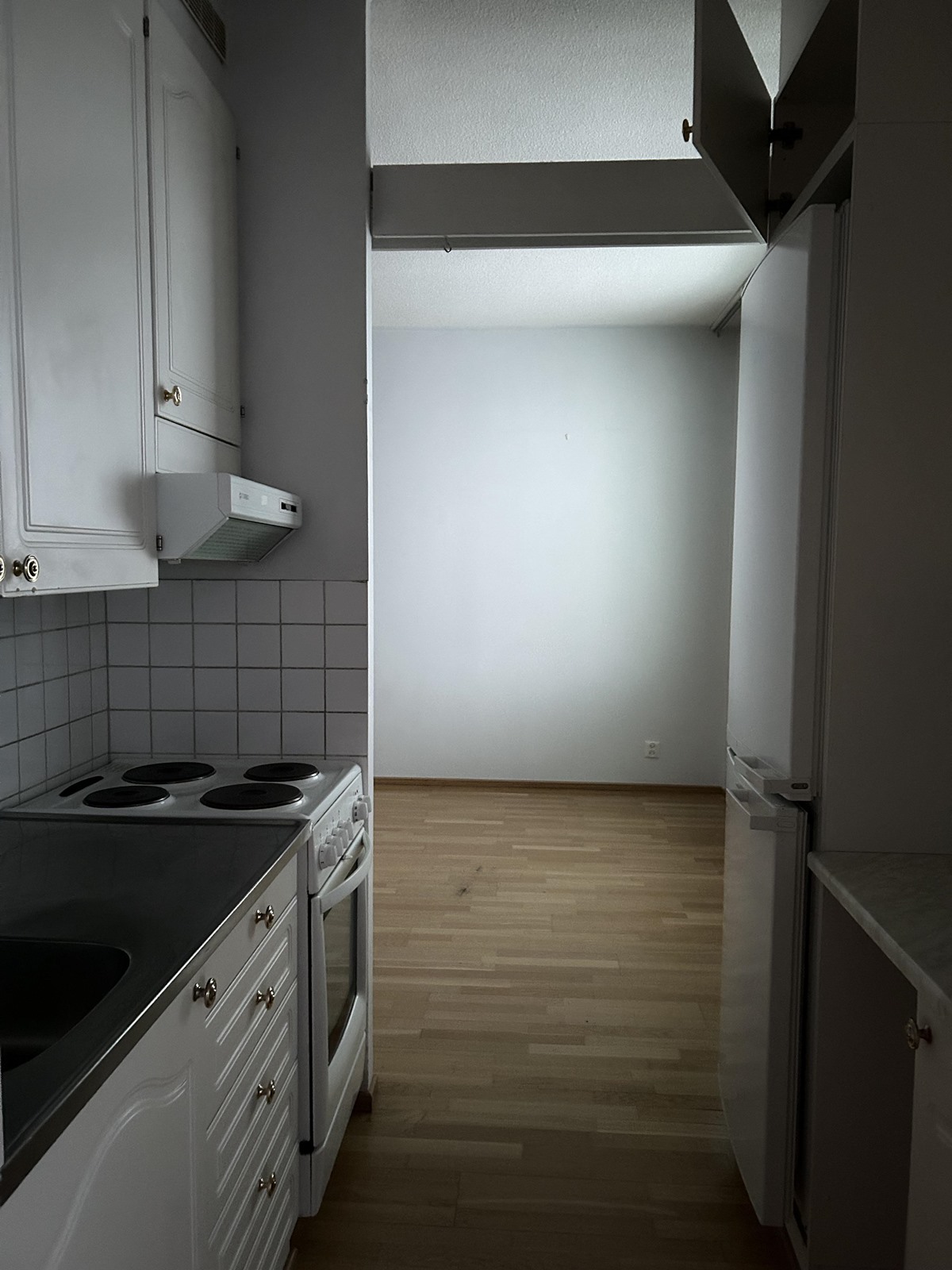 - Jääkaappipakastin, lattialiesi, kaapistot.