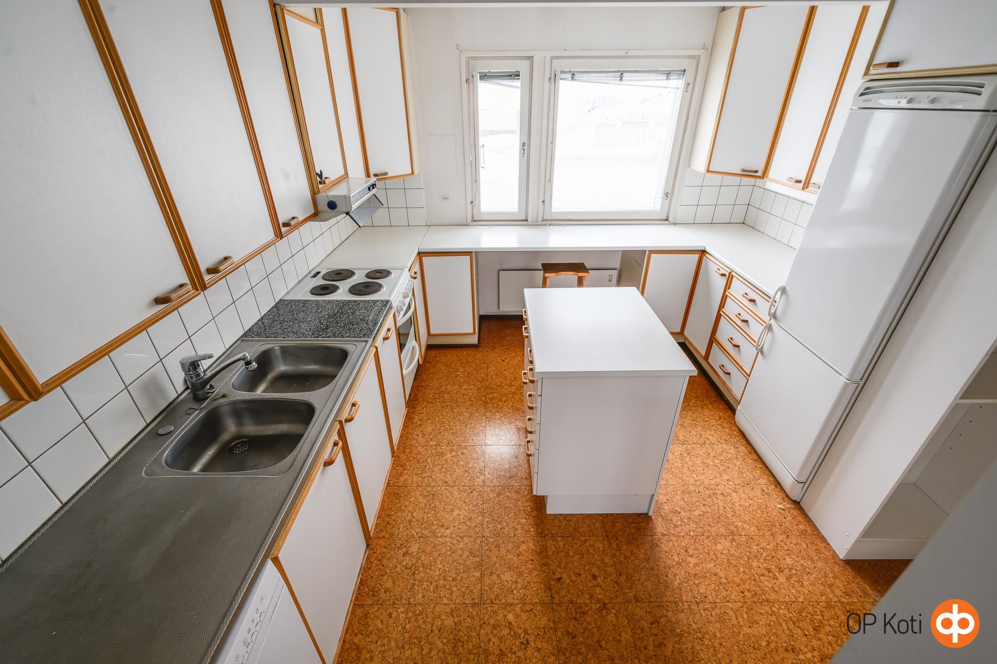 - Jääkaappipakastin, sähköliesi, liesituuletin, astianpesukone, kaapistot, irralliset saarekkeet, kiinteät valaisimet.