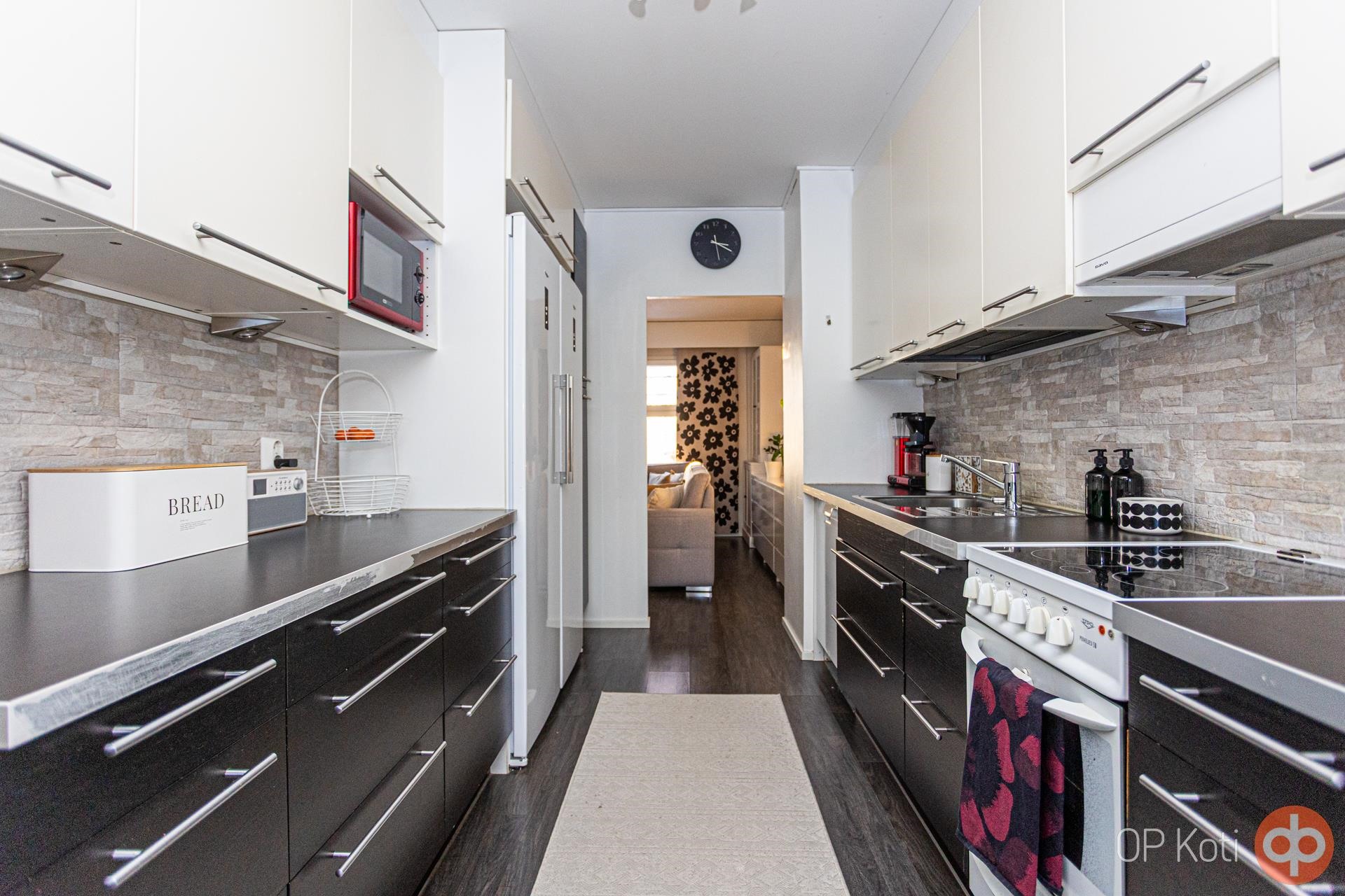 - Jääkaappi uusittu 2023, pakastekaappi uusittu 2023, keraaminen liesi, liesituuletin huippuimurilla, astianpesukone, kaapistot, kiinteät valaisimet.