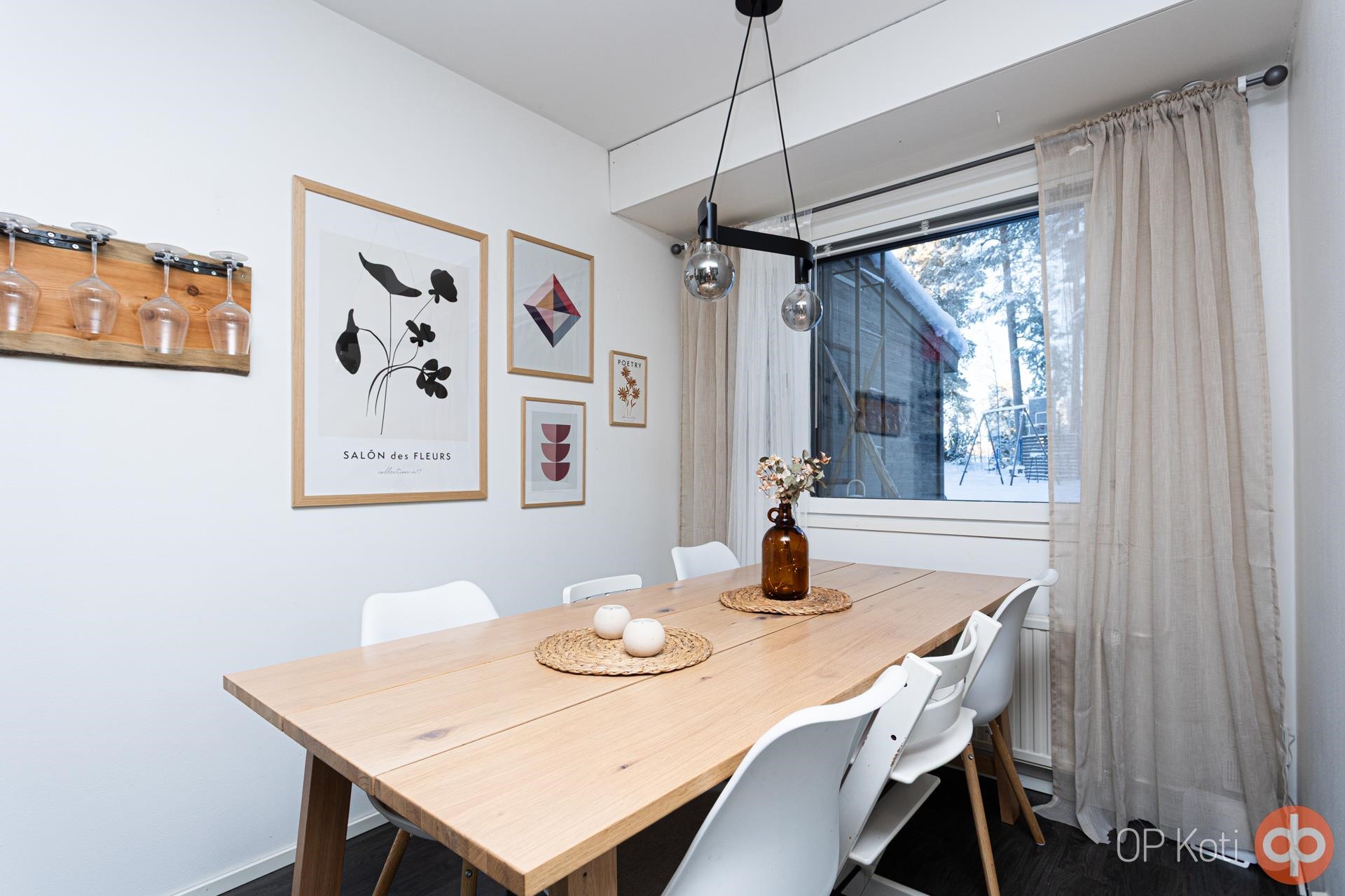 Tervetuloa tutustumaan viihtyisään kaksitasoiseen rivitalokotiin rauhallisella ja luonnonläheisellä alueella metsän reunassa. Kodissa on tehty kattavasti remontteja: kylpyhuone (2016), upea helohonkapuinen sauna, alakerran wc (2023) sekä keittiö (2017). Jääkaappi/pakastin on uusittu 2023. Valoisat oleskelutilat, kauniit seinäpinnat ja laminaattilattiat tuovat kotiin raikkaan ilmeen. Suojaisa takapiha tarjoaa miellyttävän paikan rentoutumiseen. Autolle on oma pistokepaikka, jossa mahdollisuus myös sähköauton lataukseen. Tämä koti tarjoaa helppoa ja huolettomaa asumista luonnon rauhassa.