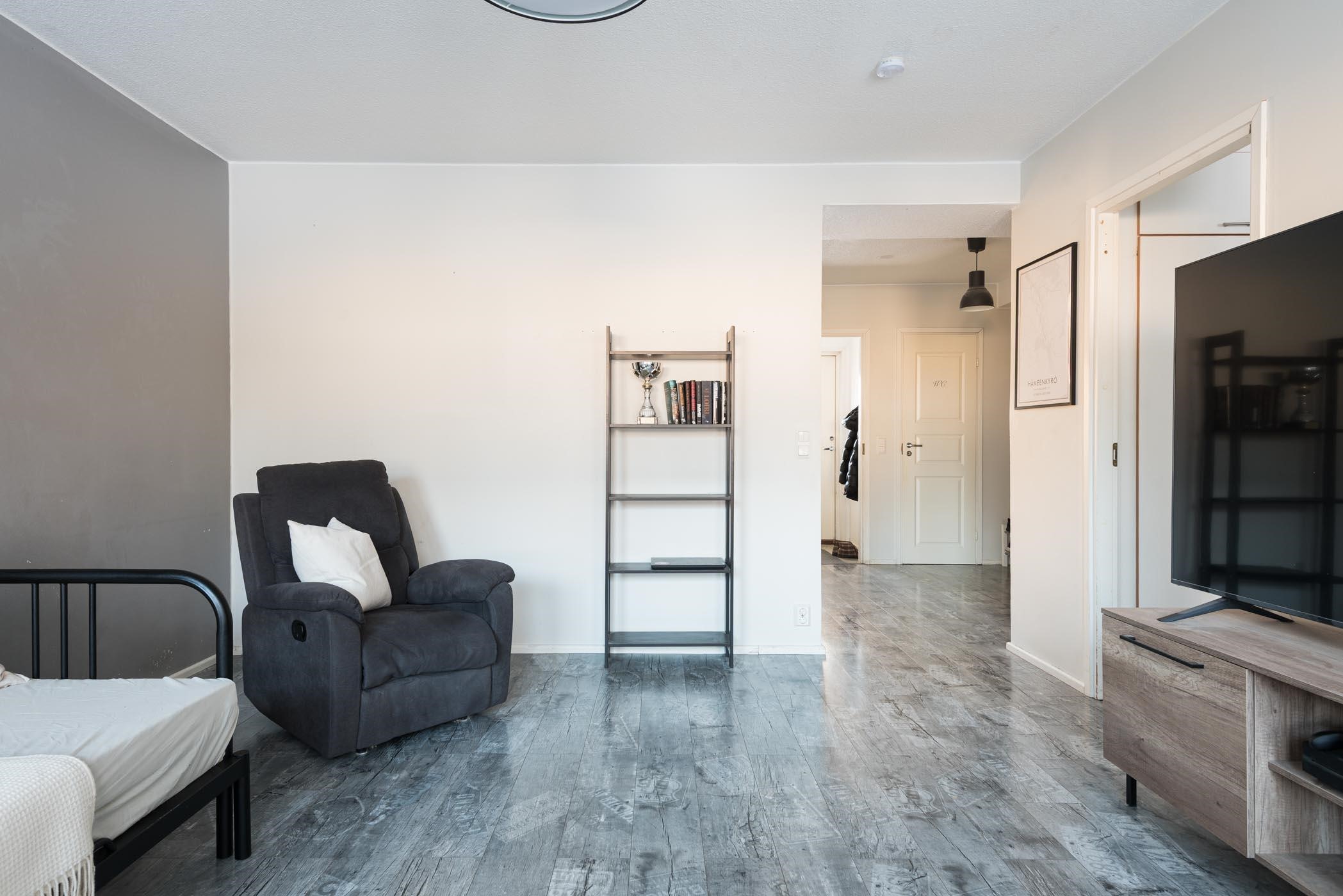 Tämä yksitasoinen huoneisto kutsuu viihtymään selkeillä tilaratkaisuillaan, tarjoten rauhaa, tilaa ja arjen helppoutta. Kodin sydämenä toimii valoisa olohuone, josta avautuu näkymät ja kulku länteen suuntautuvalle terassille ja omalle pihalle. Kodissa on tehty vuosien varrella kevyitä päivityksiä, kuten pintojen maalausta sekä keittiön ja laitteiden uudistuksia. Kaksi makuuhuonetta sijoittuvat rauhallisesti asunnon itäpuolelle, mikä tekee niistä mukavan vilpoisia myös kesäaikaan. Pesuhuone ja sauna on remontoitu yhtiön valvonnassa vuonna 2012, ja erillinen wc sekä kodinhoitonurkkaus tuovat arkeen käytännöllisyyttä.