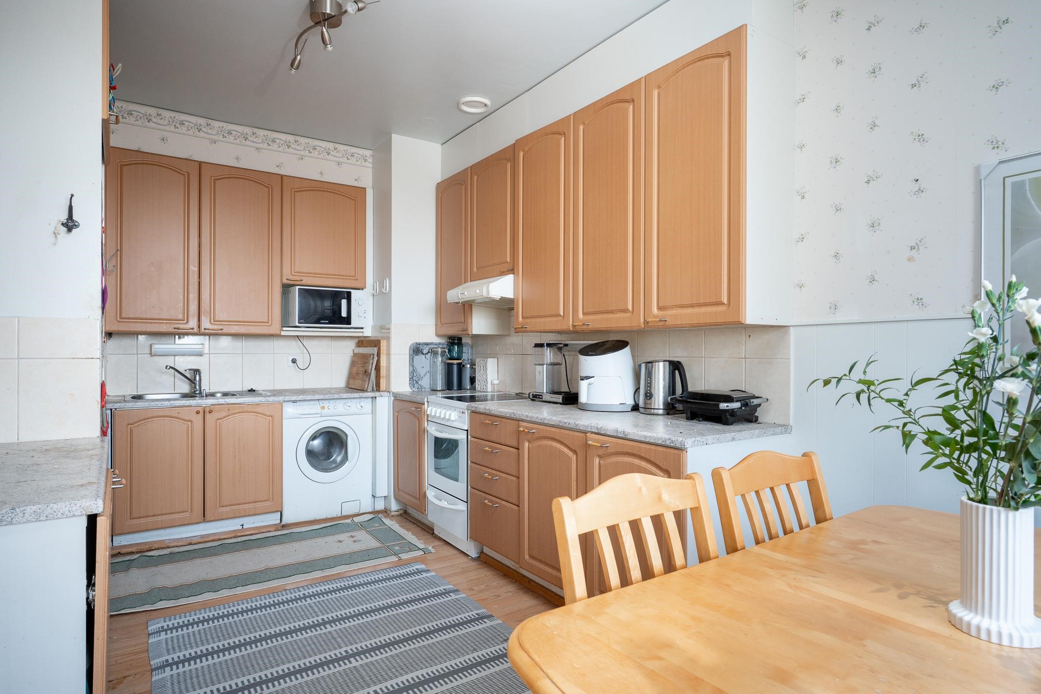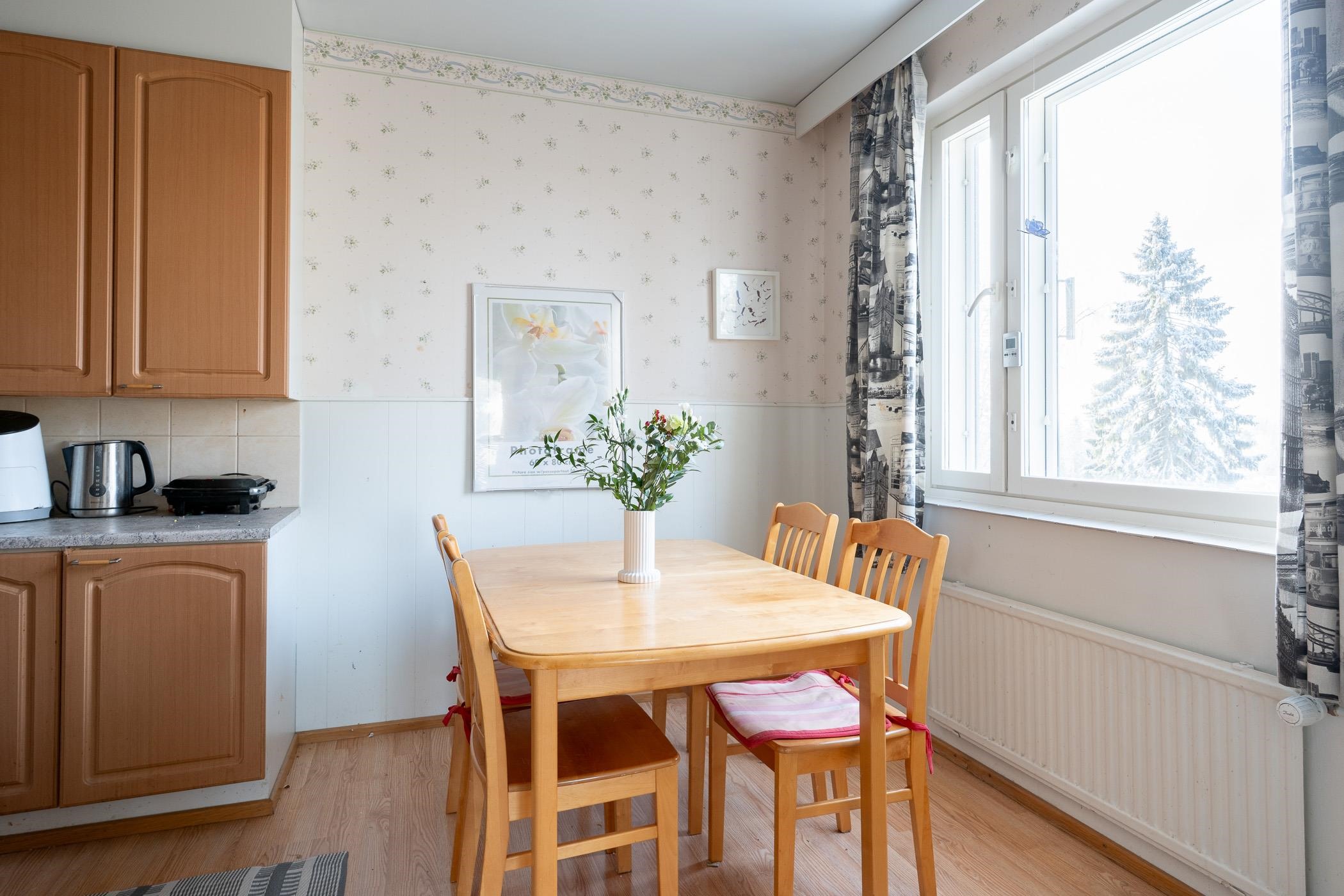 Kodissa on toimiva pohjaratkaisu, jonka valttina ovat tilavat huoneet, vaatehuone ja lasitettu parveke. Keittiössä on uusi jääkaappi vuodelta 2024 ja asuntoon kuuluu kiinteät valaisimet sekä sälekaihtimet. Säilytystilaa löytyy runsaasti niin vaatehuoneesta kuin kellarista, ja arkea helpottavat taloyhtiön yhteiset tilat kuten sauna, pesutupa ja urheiluvälinevarasto. Asunto myydään vuokrattuna: vuokra on 770 €/kk, joten tämä on erinomainen vaihtoehto myös sijoittajalle.