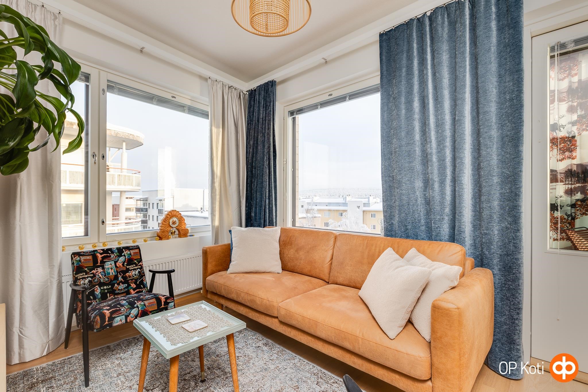 Valoisa ja hyväkuntoinen kulmahuoneisto Rovaniemen ydinkeskustassa, ylimmässä kerroksessa, josta lasitetulta parvekkeelta avautuvat upeat näkymät Ounasvaaralle ja Jätkänkynttilälle. Mahdollisuus ostaa autohallipaikka omina osakkeina, vh. 20.500 €.