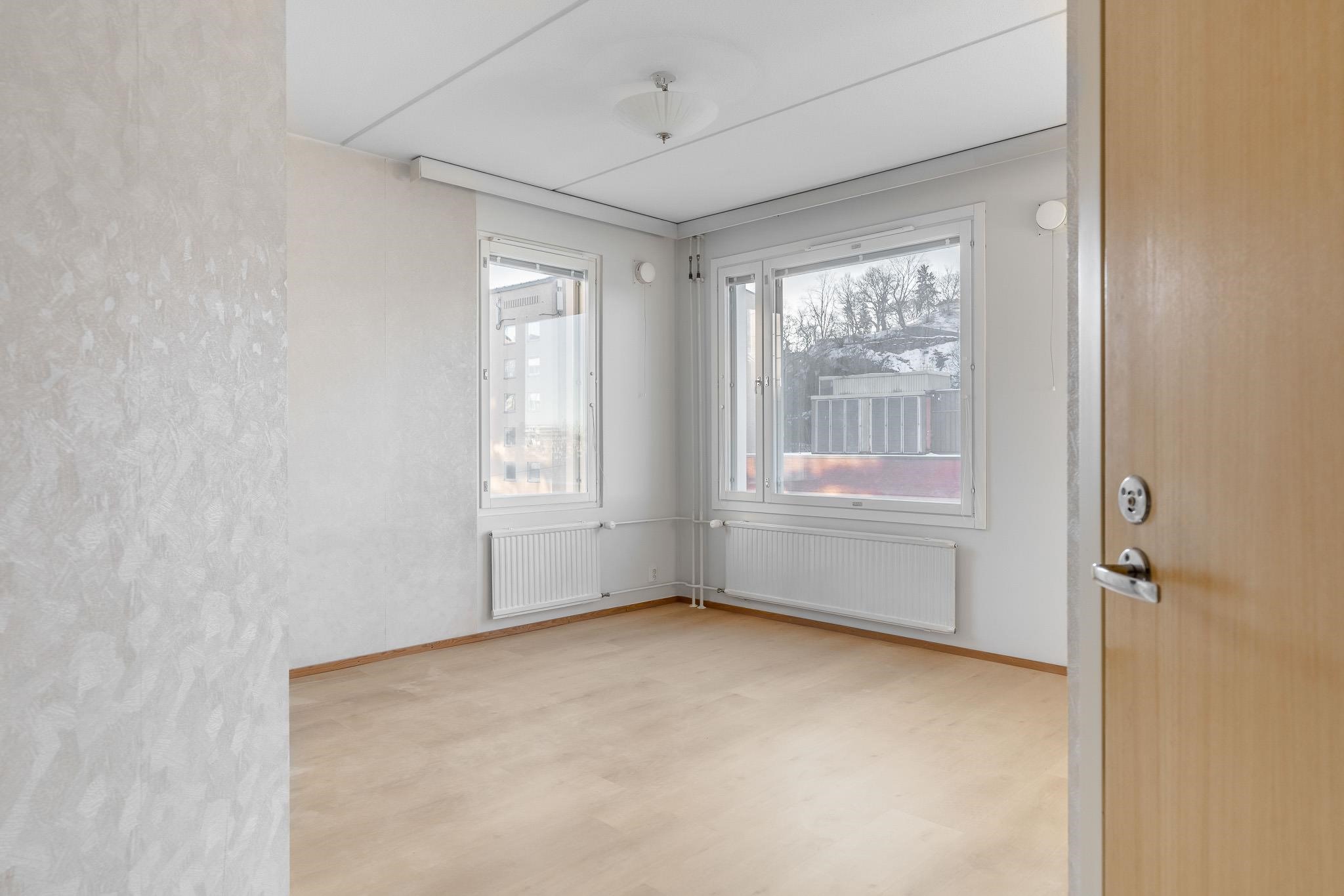 - Kulma-asunto, ikkunat kaakkoon ja lounaaseen