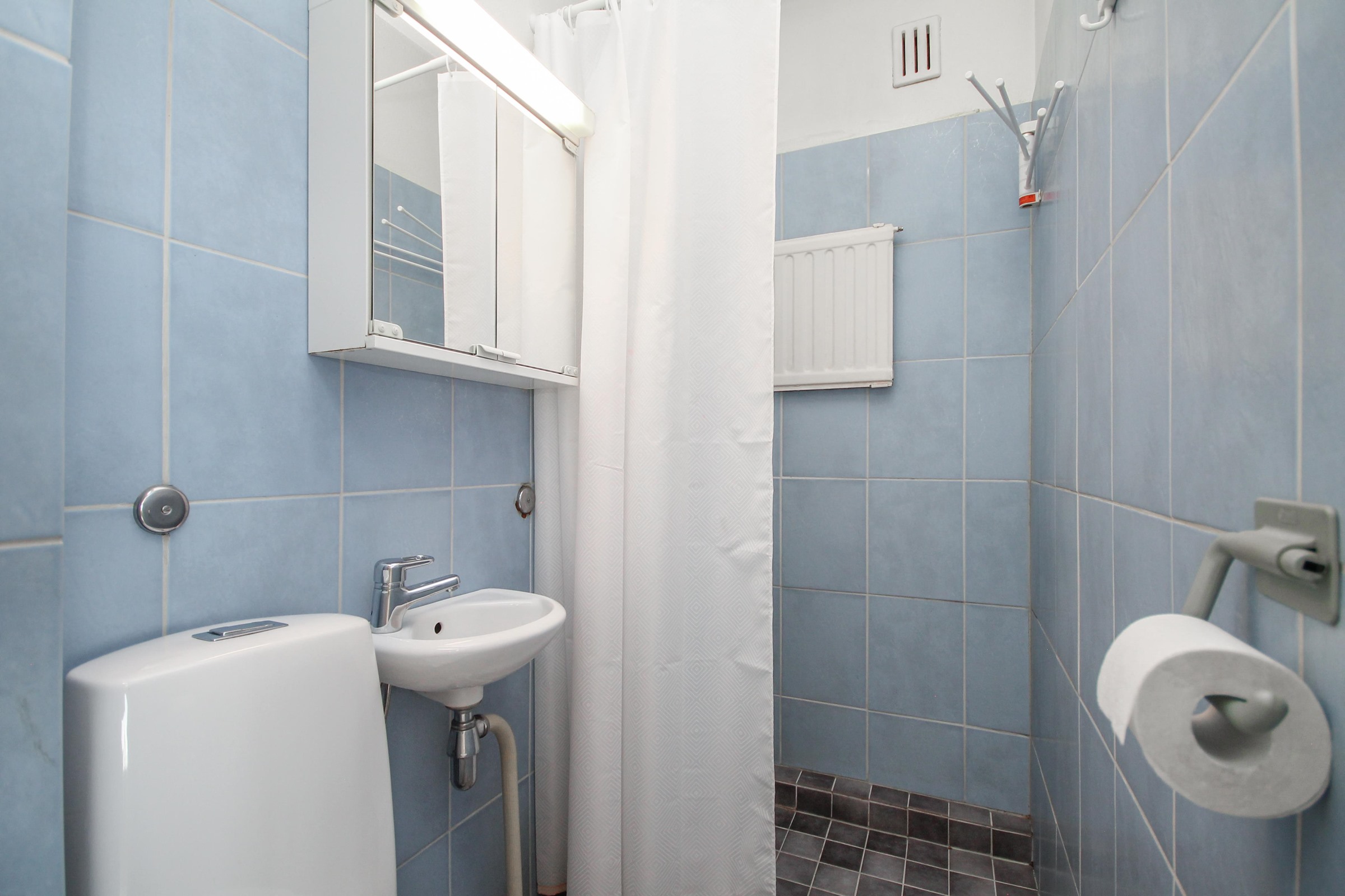 - Suihku, peilikaappi, kiinteät valaisimet.