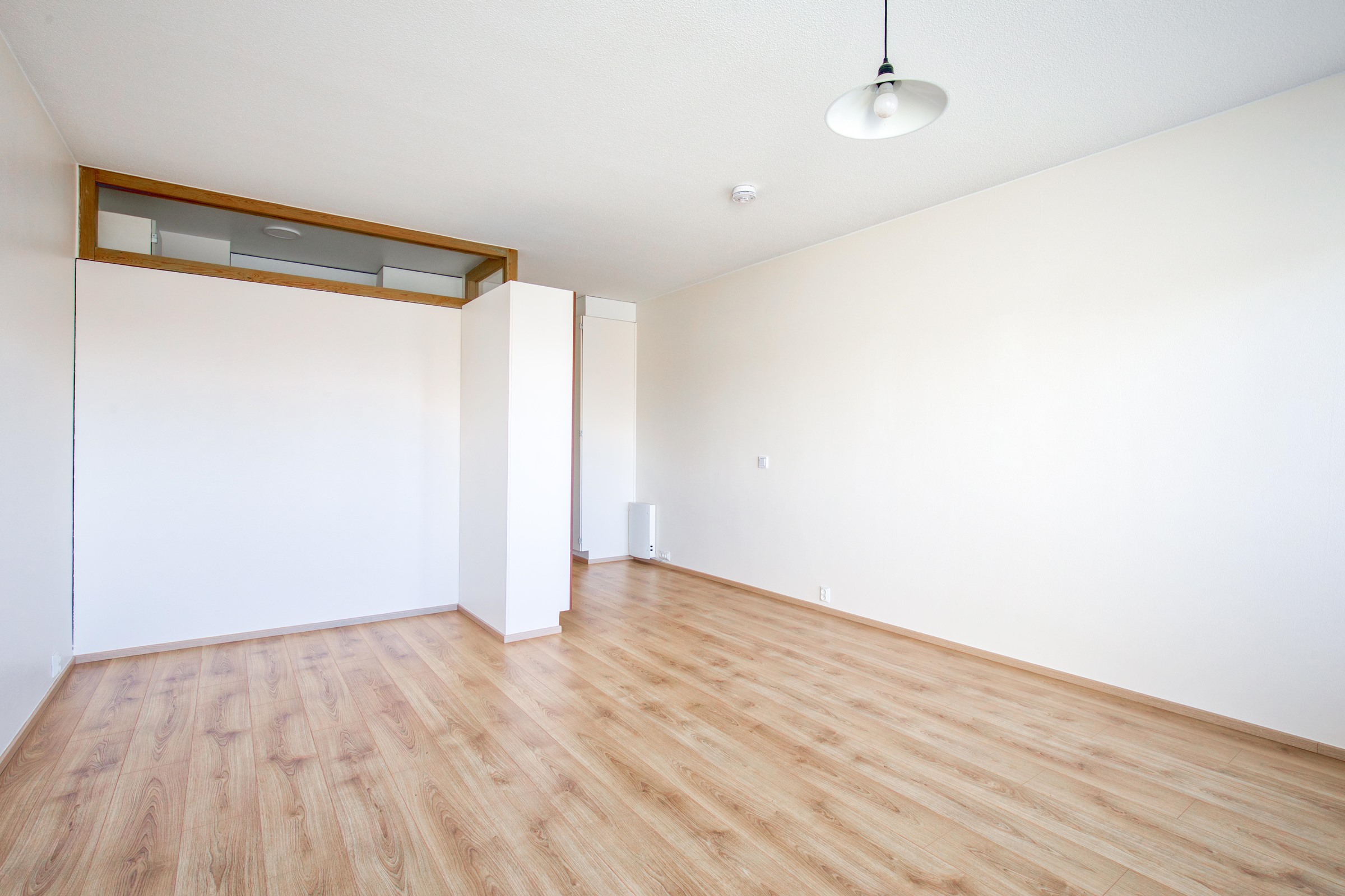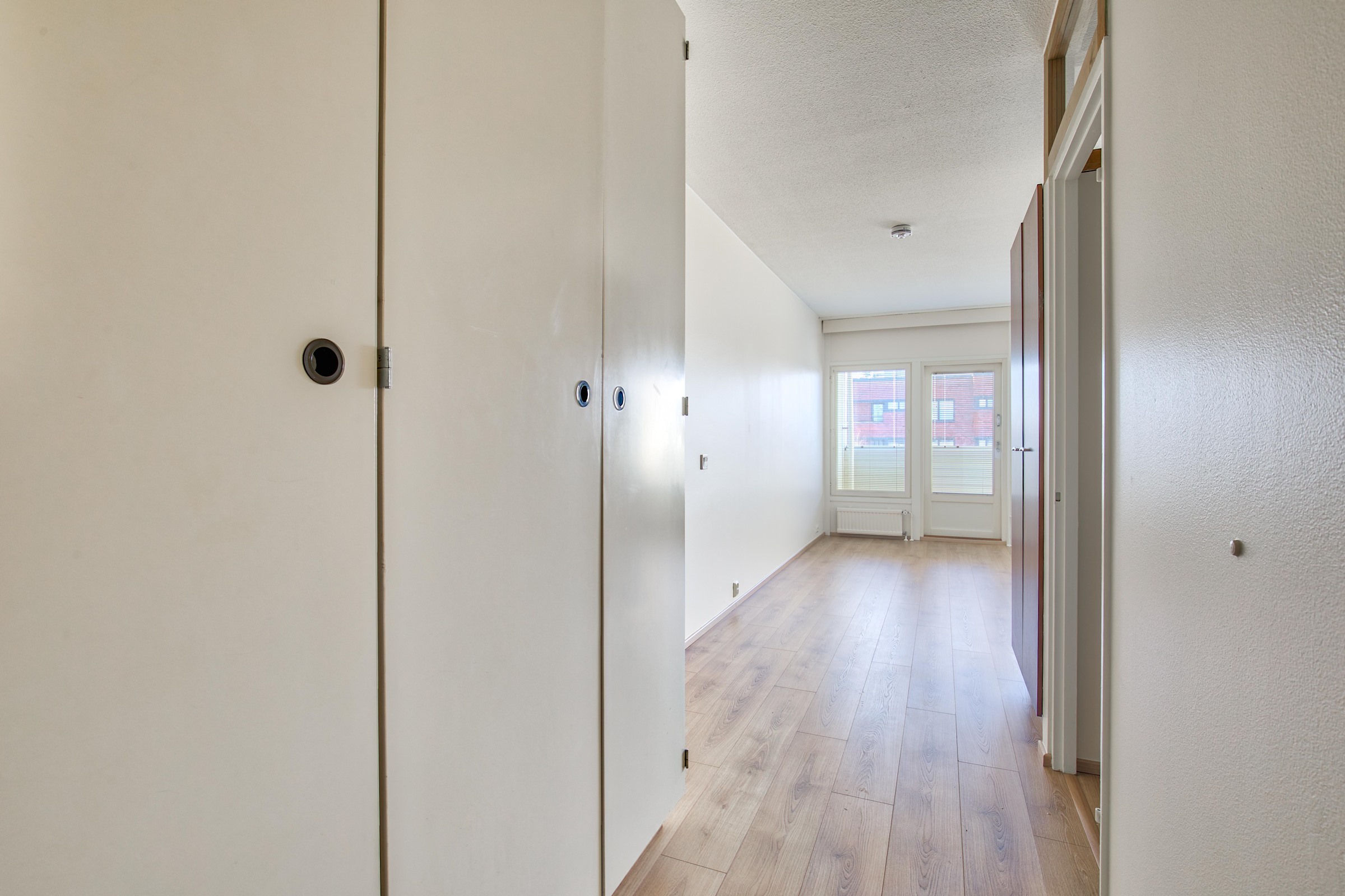 Asuntoon saavutaan tilavan eteisen kautta, jossa on runsaasti kiinteää säilytystilaa. Eteisestä avautuu avara olohuone, jota koko päädyn levyinen ikkunaseinä tulvii luonnonvaloa. Tilaan on helppo toteuttaa toimiva ja monipuolinen pohjaratkaisu eri tarpeisiin.