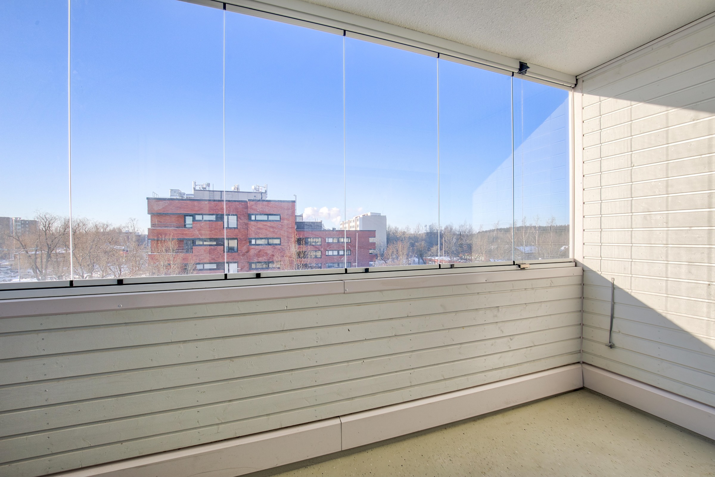 Yksi kodin ehdottomista valttikorteista on reilun kokoinen lasitettu parveke. Kylpyhuone on kokenut täydellisen peruskorjauksen kuluvan vuoden aikana, ja samalla asuintiloihin on tehty pintaremonttia. Kokonaisuus on siisti ja muuttovalmis.