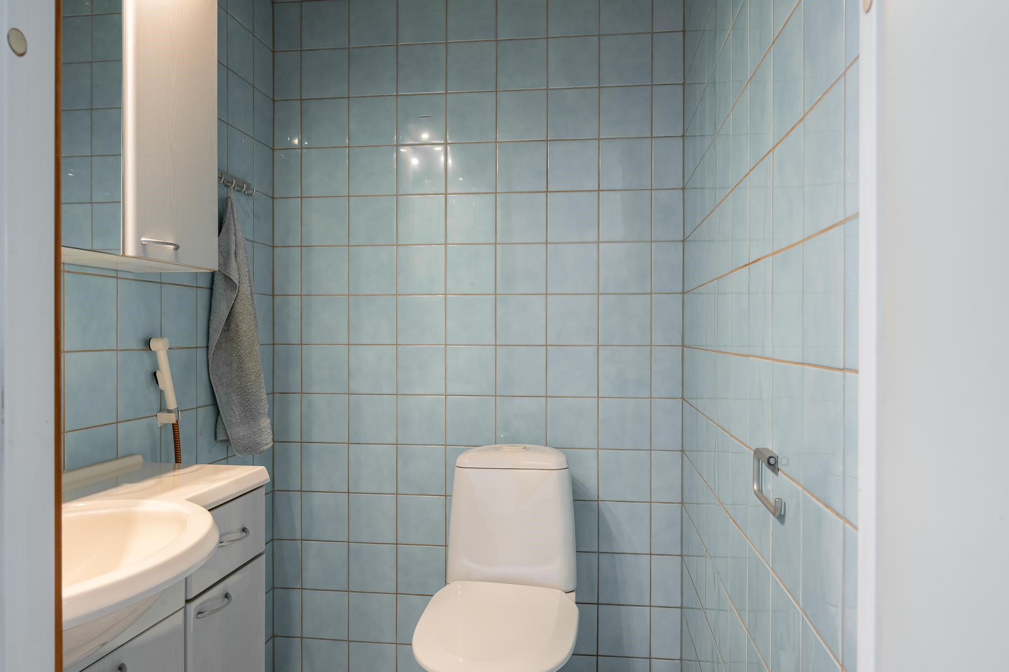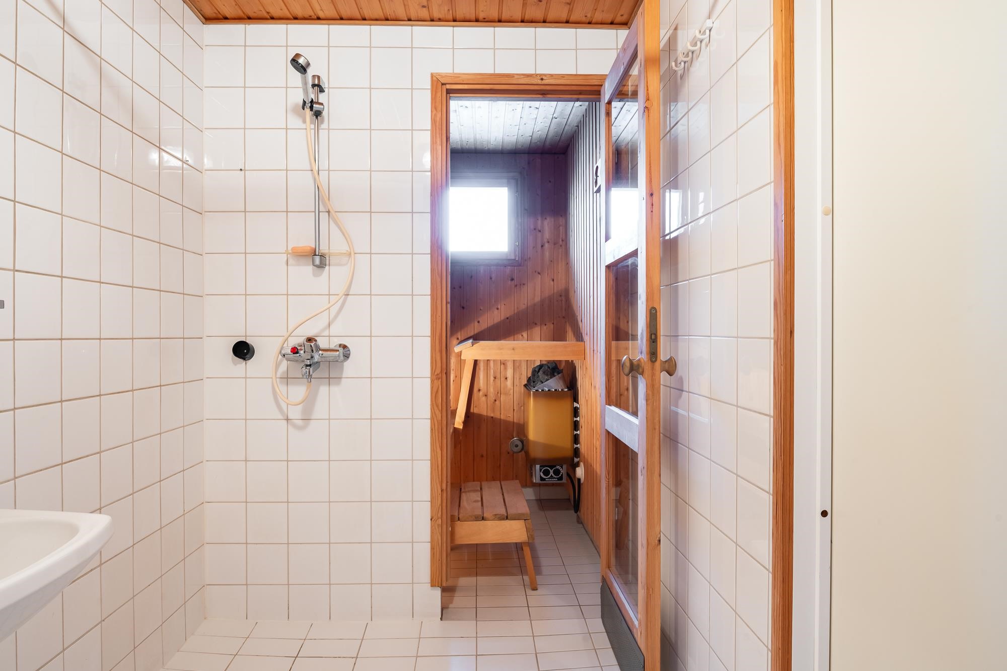 - Sauna, sähkökiuas, kylpyhuone, erillinen wc, suihku, suihkuseinä, peilikaappi, allaskaappi, pesukoneliitäntä, kiinteät valaisimet.