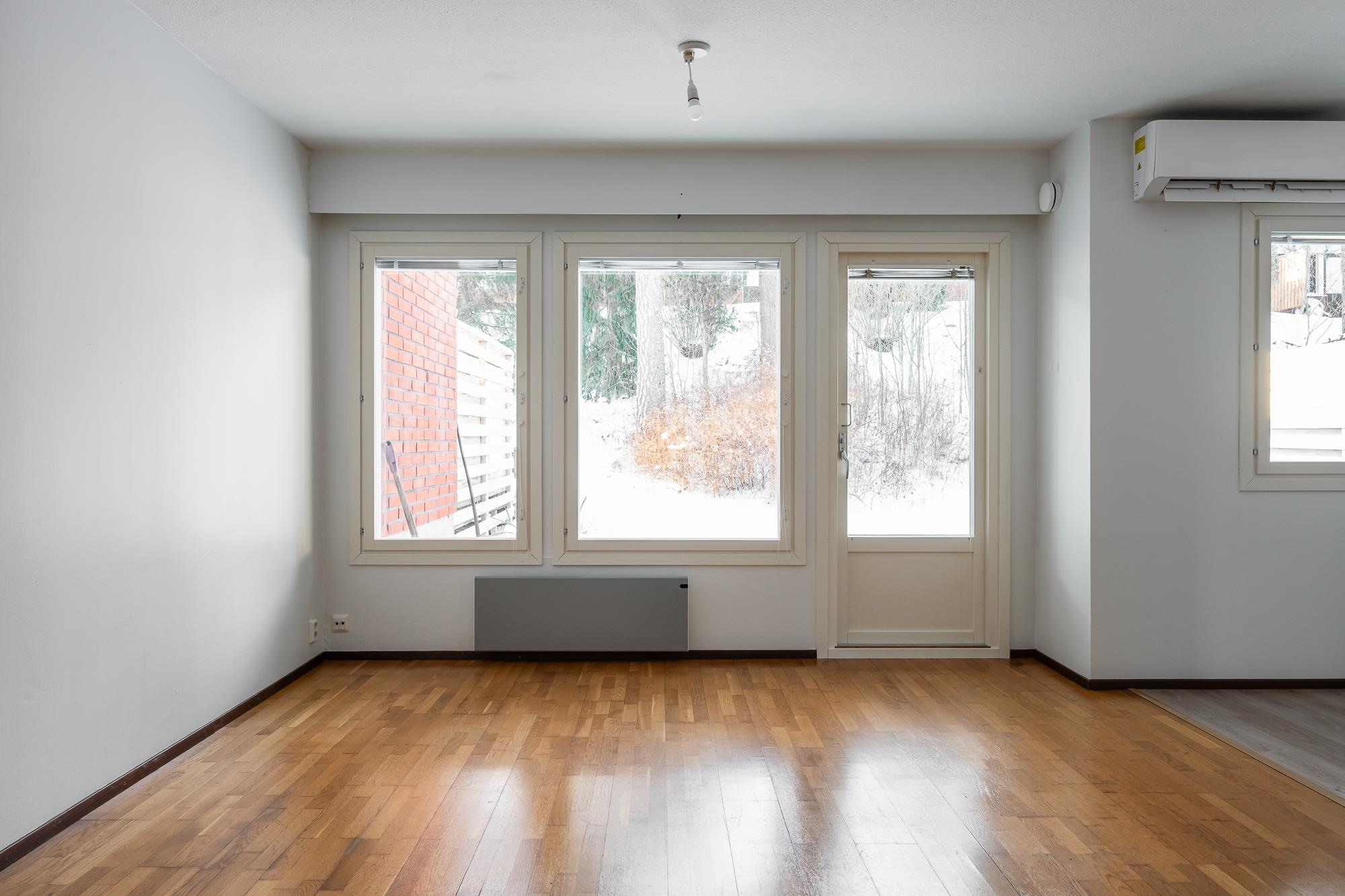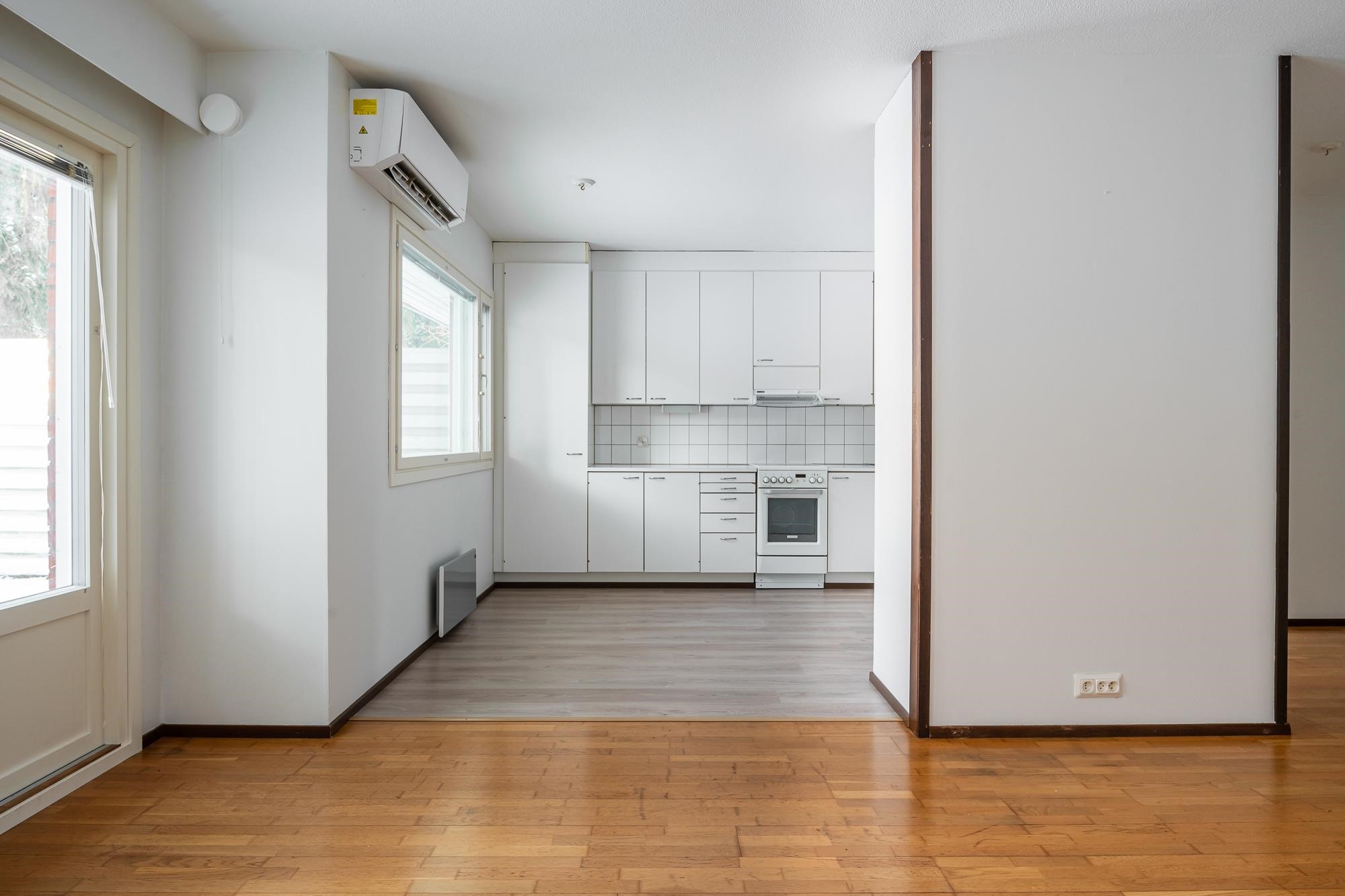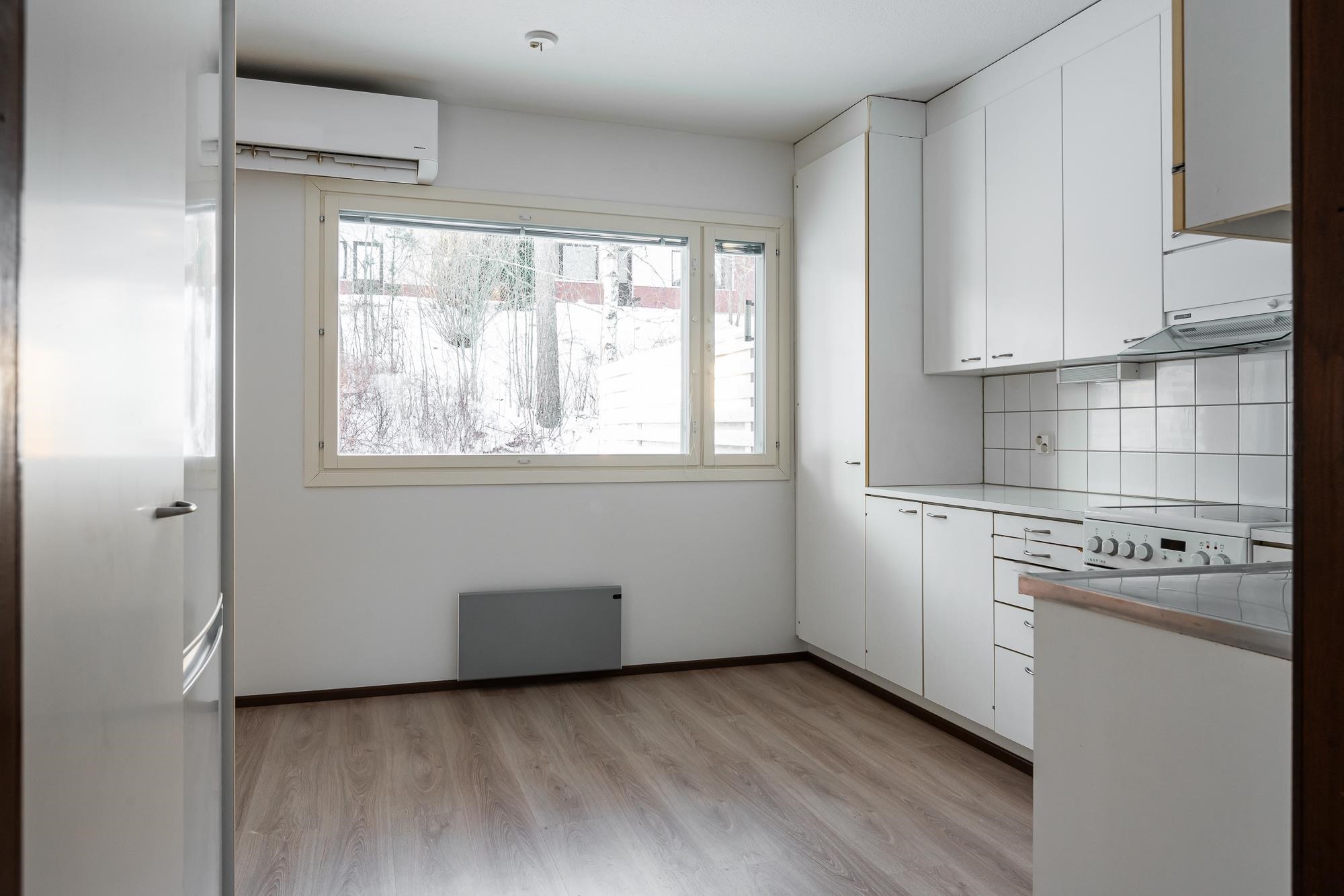 - Sähkö. Ilmalämpöpumppu keittiön puolella.