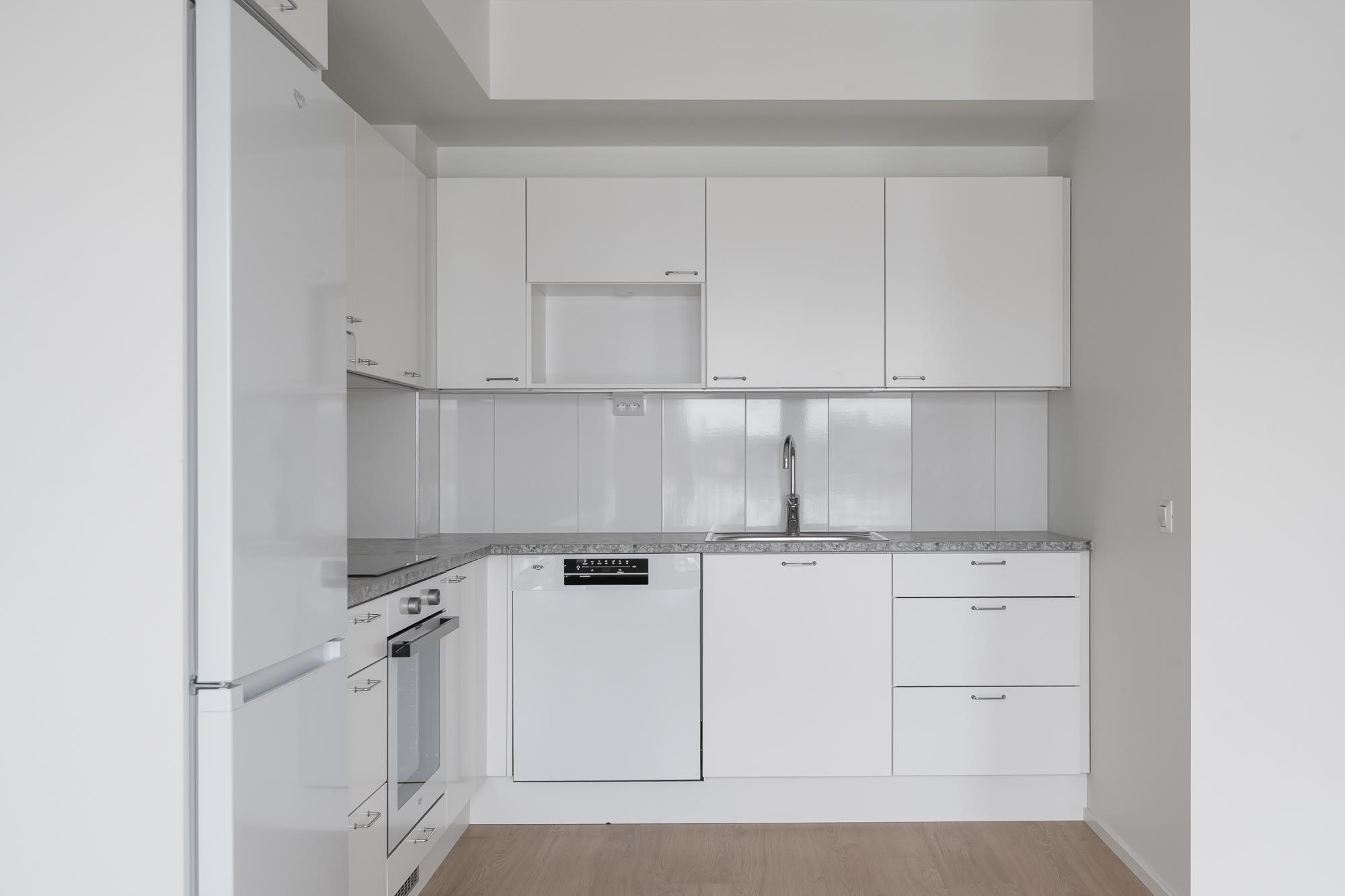 - Jääkaappipakastin, erillisuuni, liesitaso, astianpesukone, kaapistot.