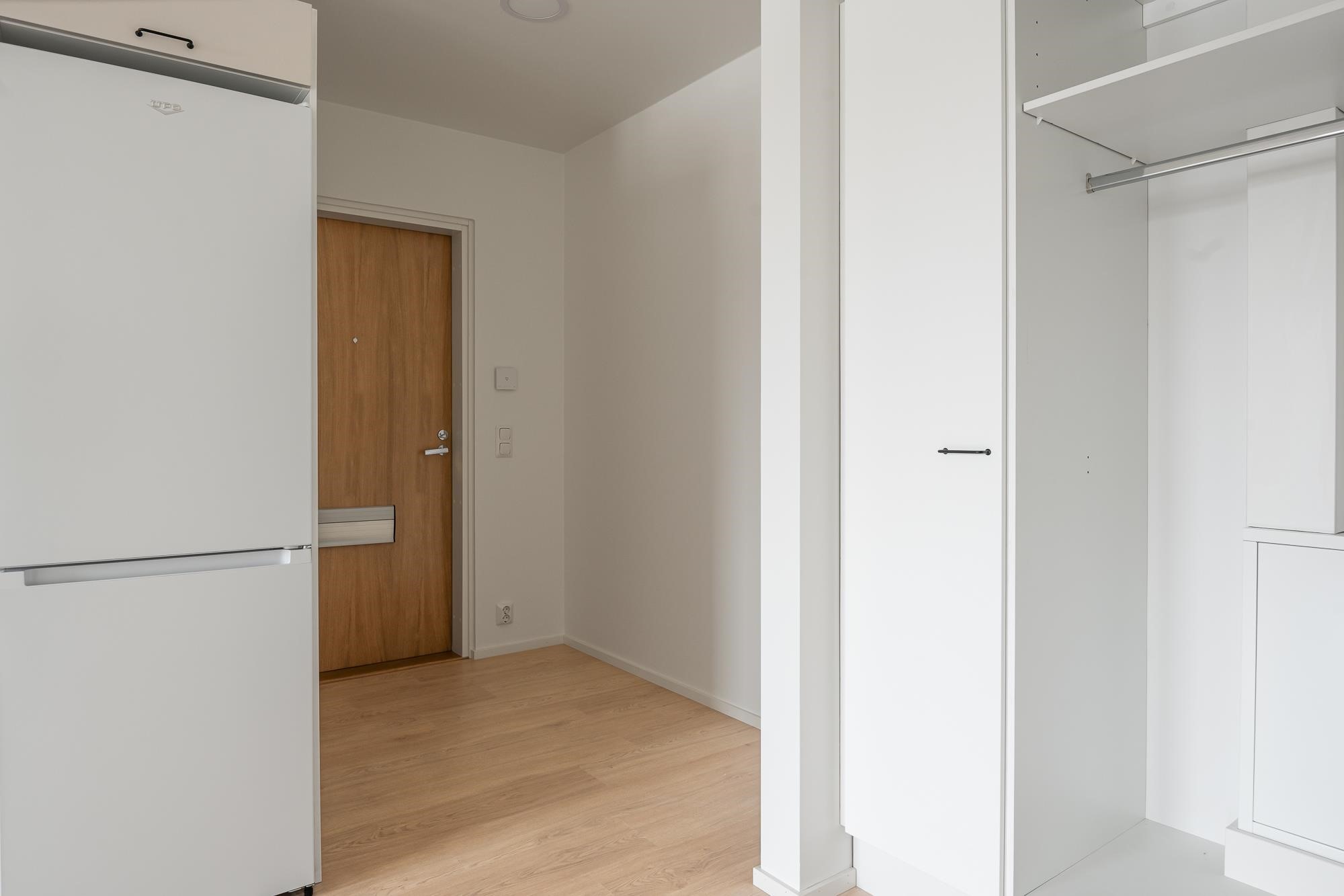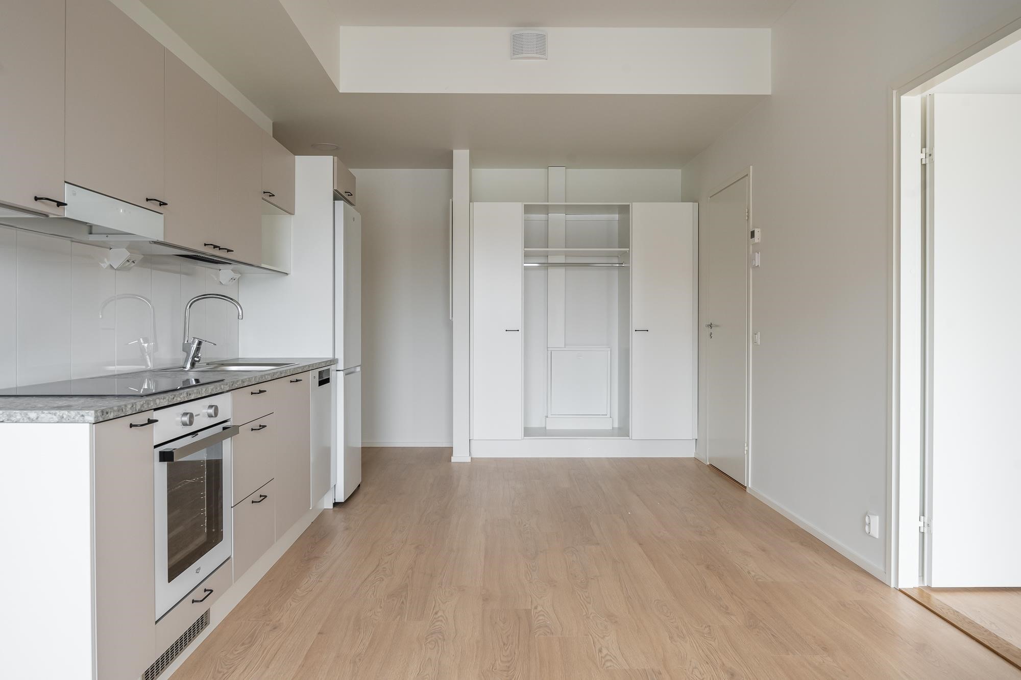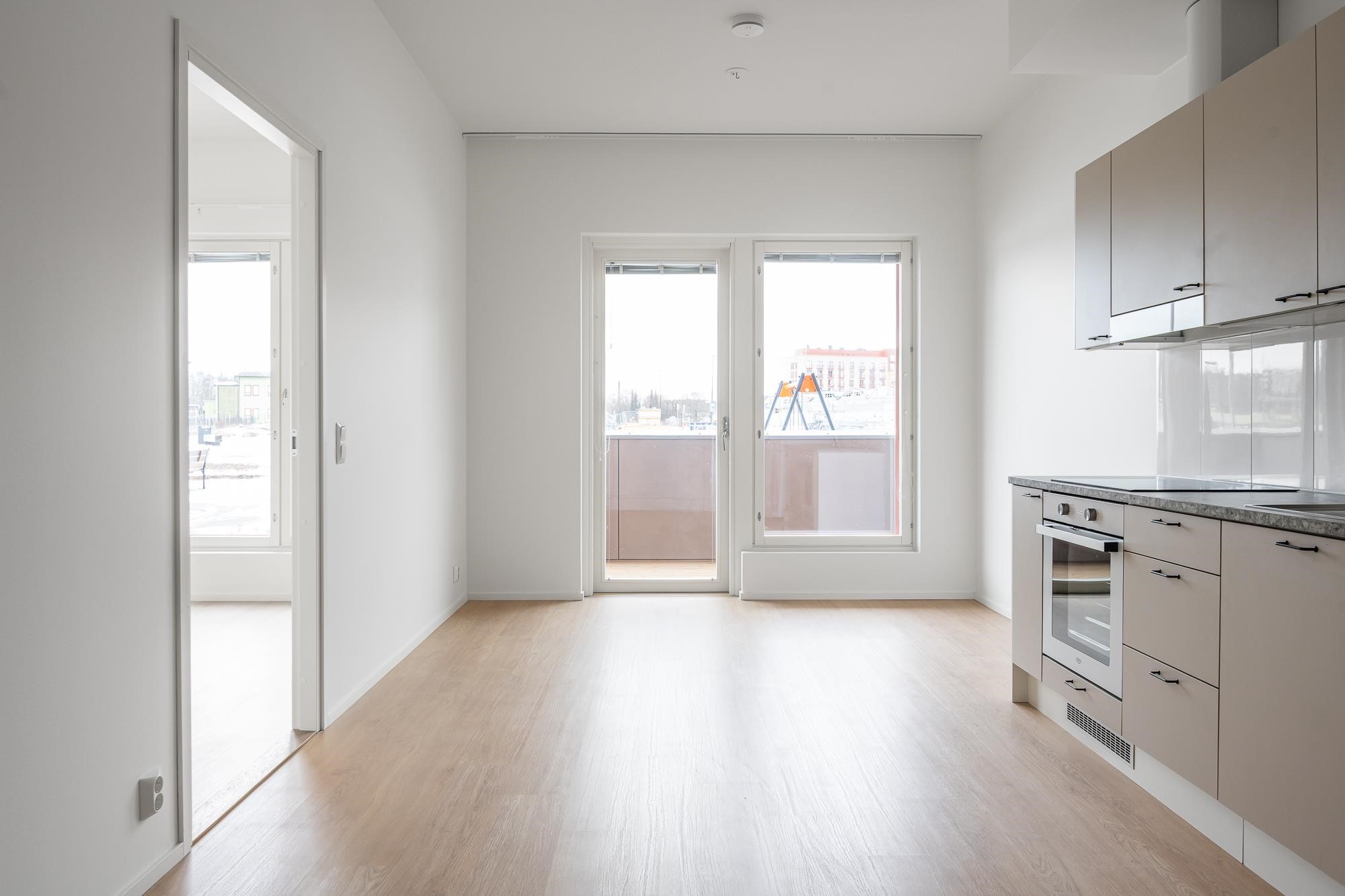 Asunnossa on avara olohuone-keittiö, erillinen makuuhuone ja reilunkokoinen vaatehuone. Keittiössä on kaikki tarpeellinen arkeen, ja oleskelutilasta on käynti omalle terassille, joka tuo lisämukavuutta asumiseen. Kylpyhuoneessa on tilaa pesukoneelle, ja kaapeli-TV sekä tietoliikennekaapelointi viimeistelevät varustuksen.