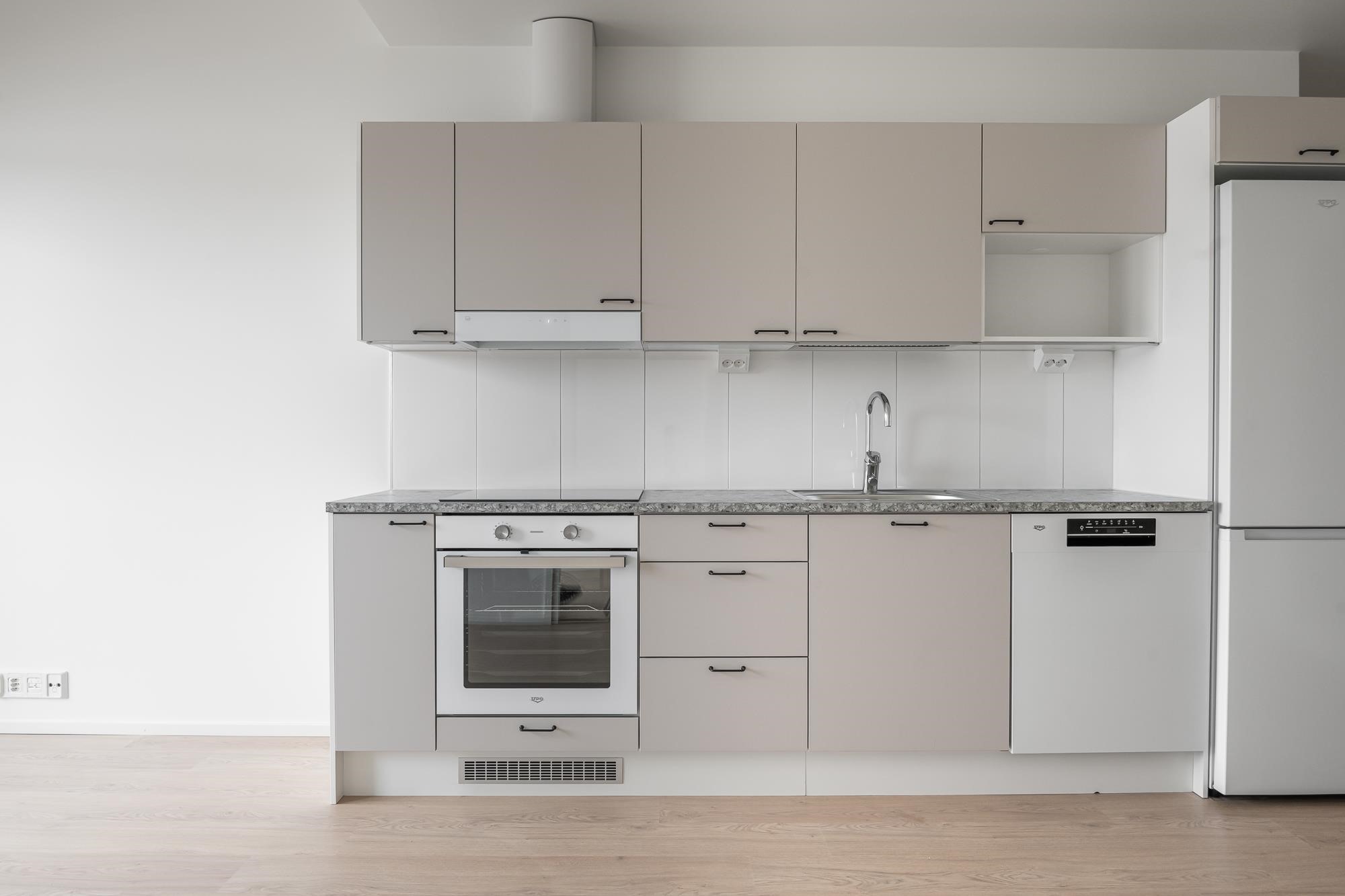 - Jääkaappipakastin, erillisuuni, liesitaso, astianpesukone, kaapistot.