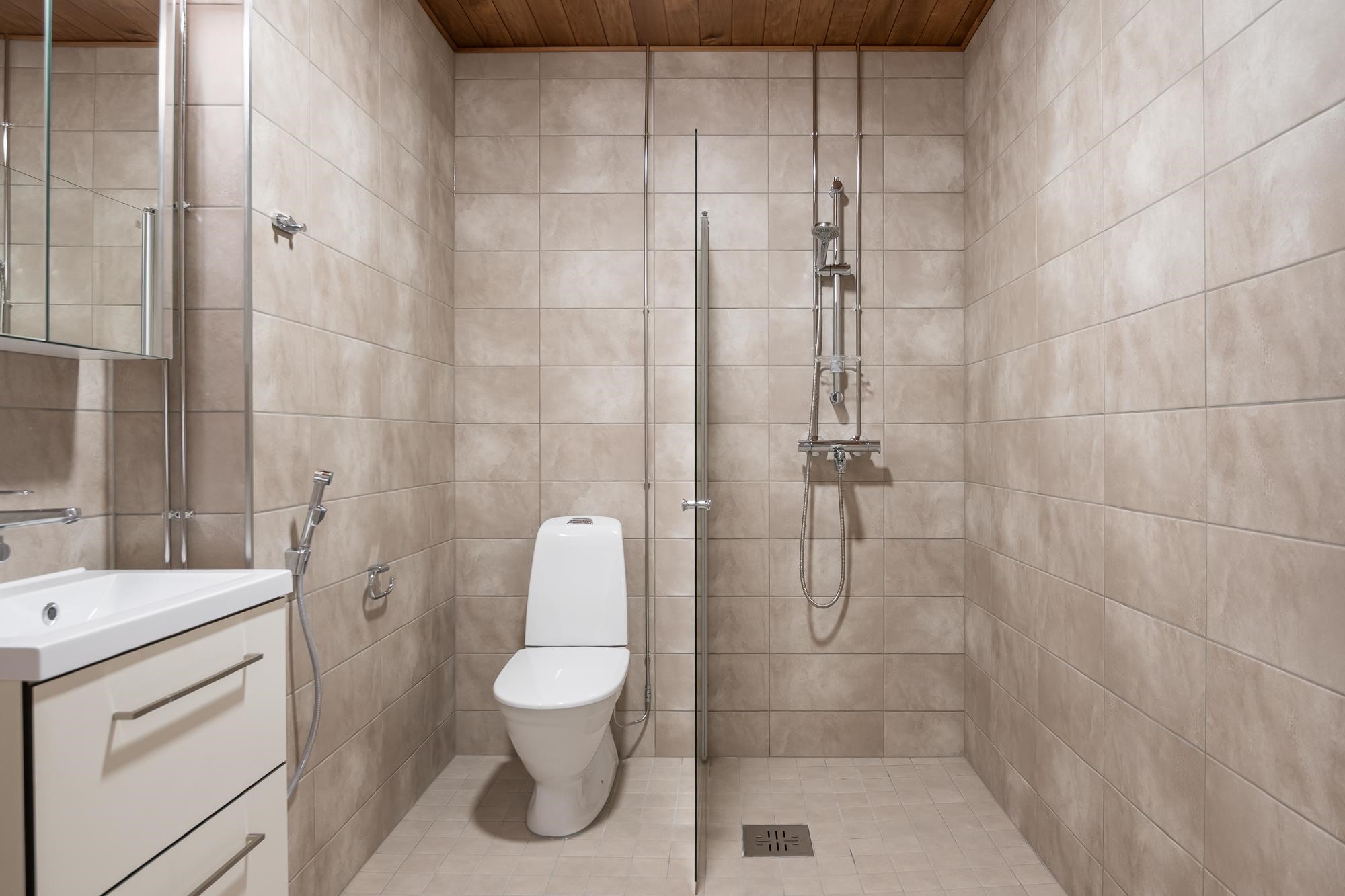 - Suihku, peilikaappi, allaskaappi, pesukoneliitäntä, lattialämmitys.