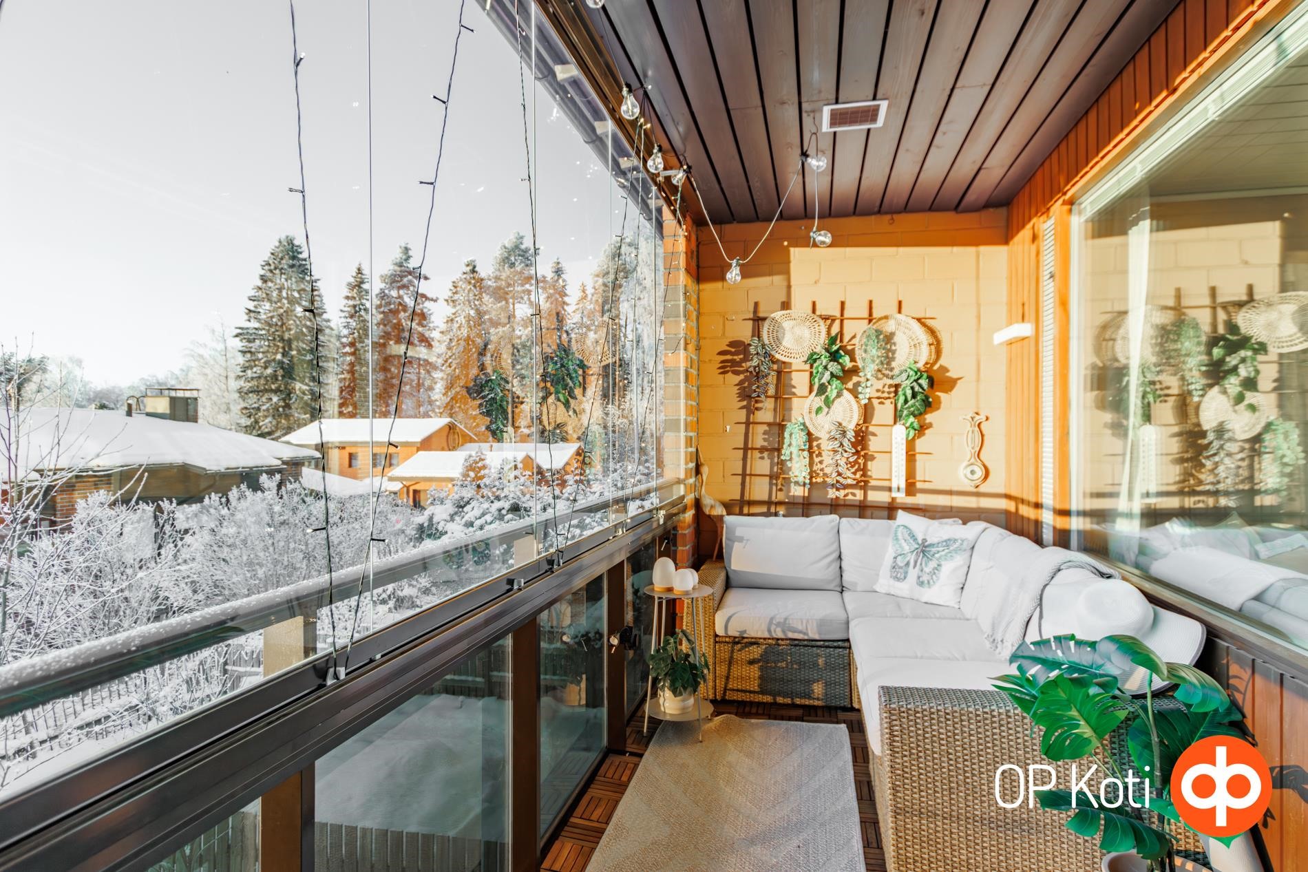 Asunnon tilaratkaisut ovat toimivat ja avarat. Makuuhuoneet sijoittuvat molempiin kerroksiin, ja arjen sujuvuutta lisäävät kaksi wc:tä. Olohuoneesta avautuu suuri lasitettu terassi, joka tarjoaa viihtyisää lisätilaa keväästä syksyyn. Iso takapiha tuo runsaasti mahdollisuuksia oleskeluun ja vapaa-ajan viettoon.