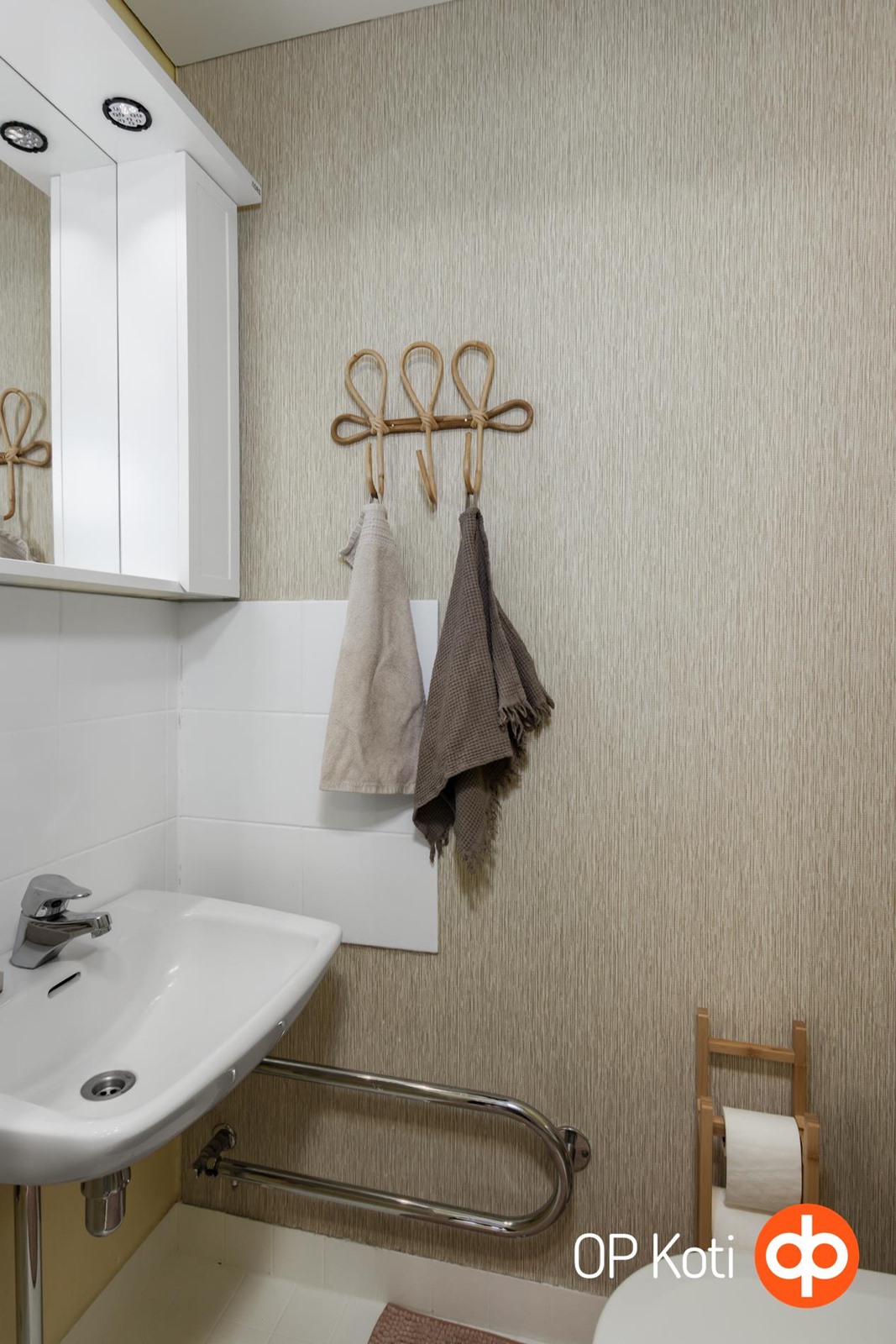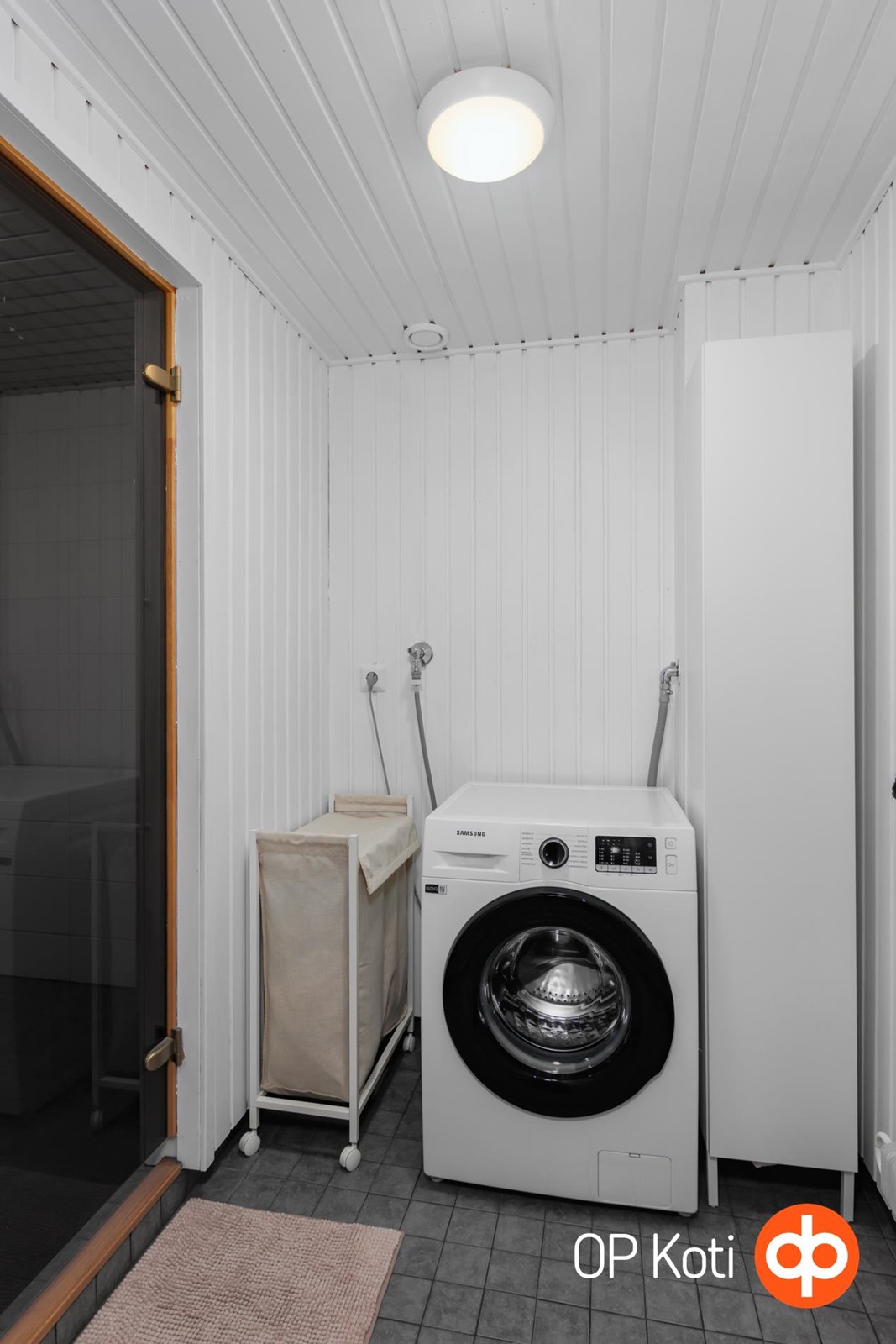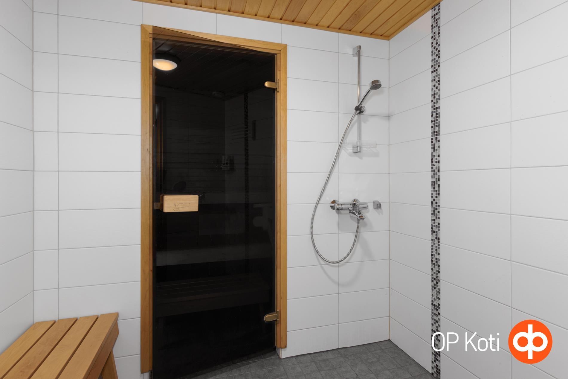 - Sauna, sähkökiuas, kylpyhuone, erillinen wc, suihku, peilikaappi, allaskaappi, pesukoneliitäntä, lattialämmitys kylpyhuoneen osalta, kiinteät valaisimet. alakerta wc peili, allas