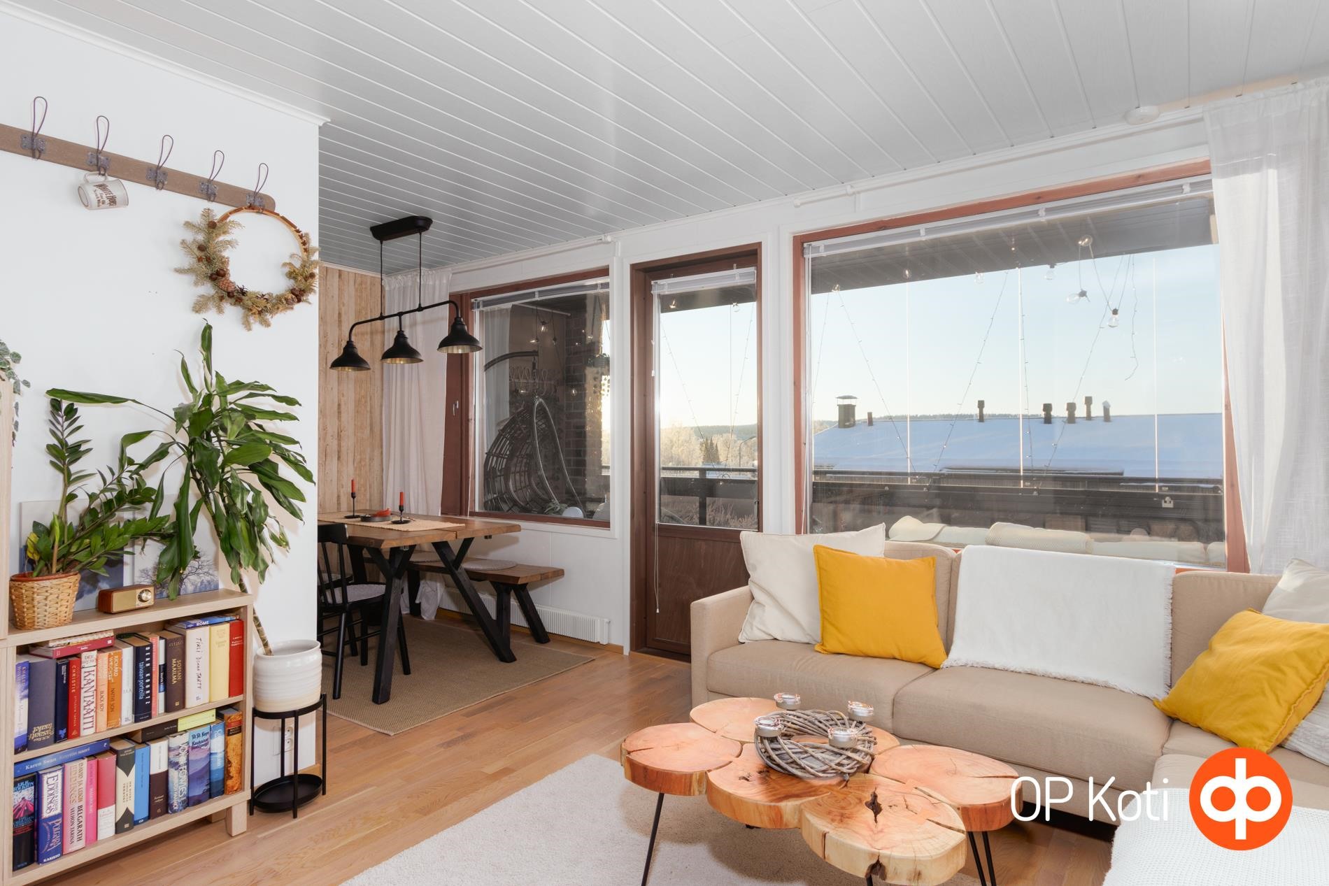 Tässä viihtyisässä kodissa seesteiset sävyt ja harkitut ratkaisut kulkevat kauniisti läpi asunnon. Viimeisen kymmenen vuoden aikana asuntoon on tehty kattavia remontteja, mm. keittiö sekä kylpyhuone-saunaosasto on uusittu ja pintoja päivitetty tukemaan tämän päivän asumisen mukavuutta.