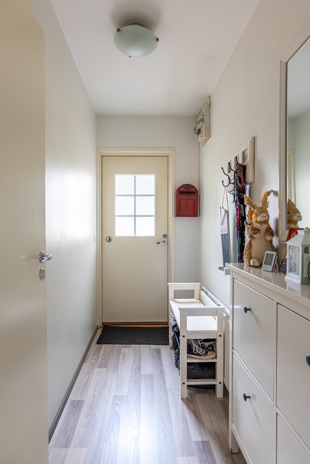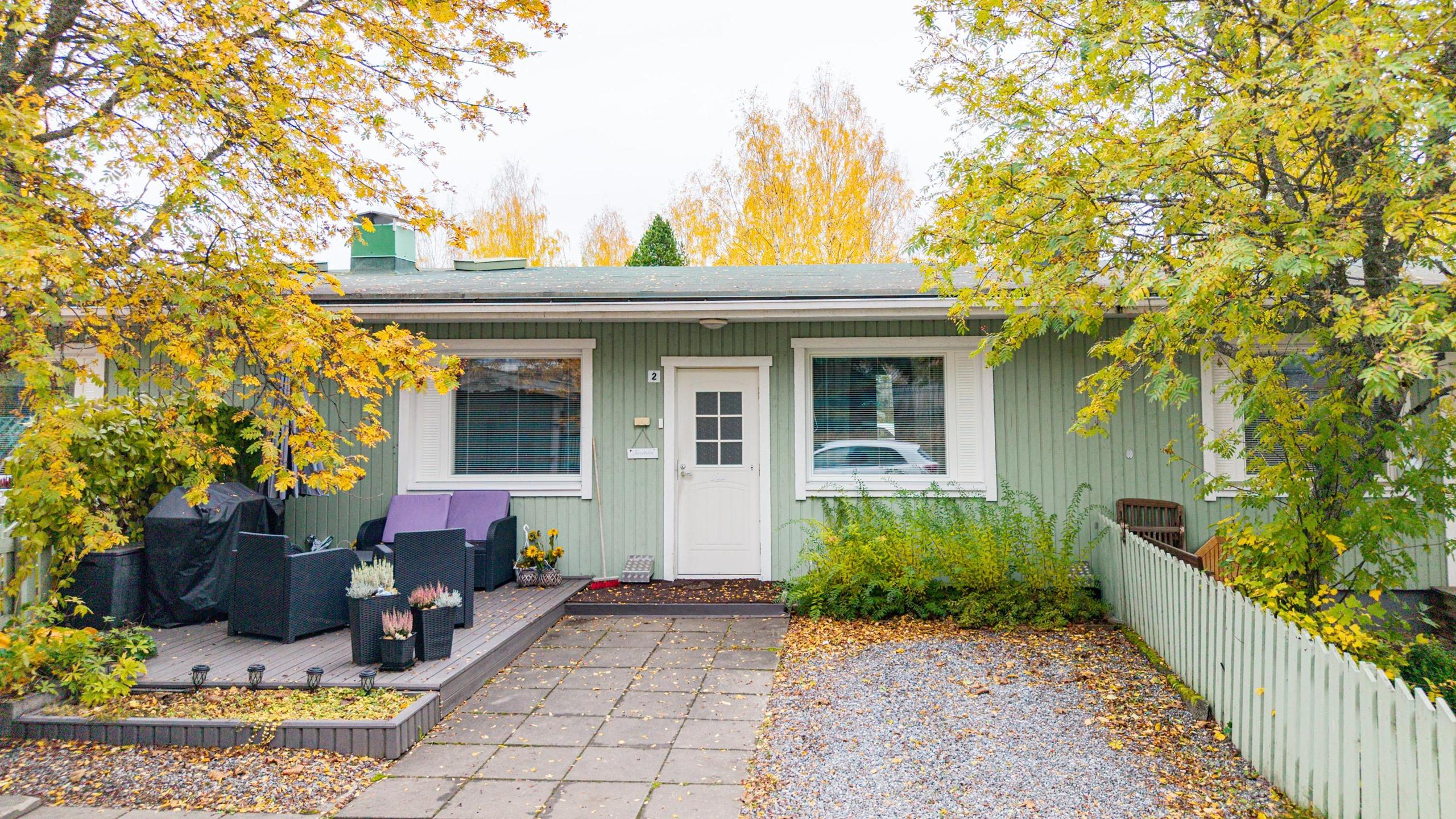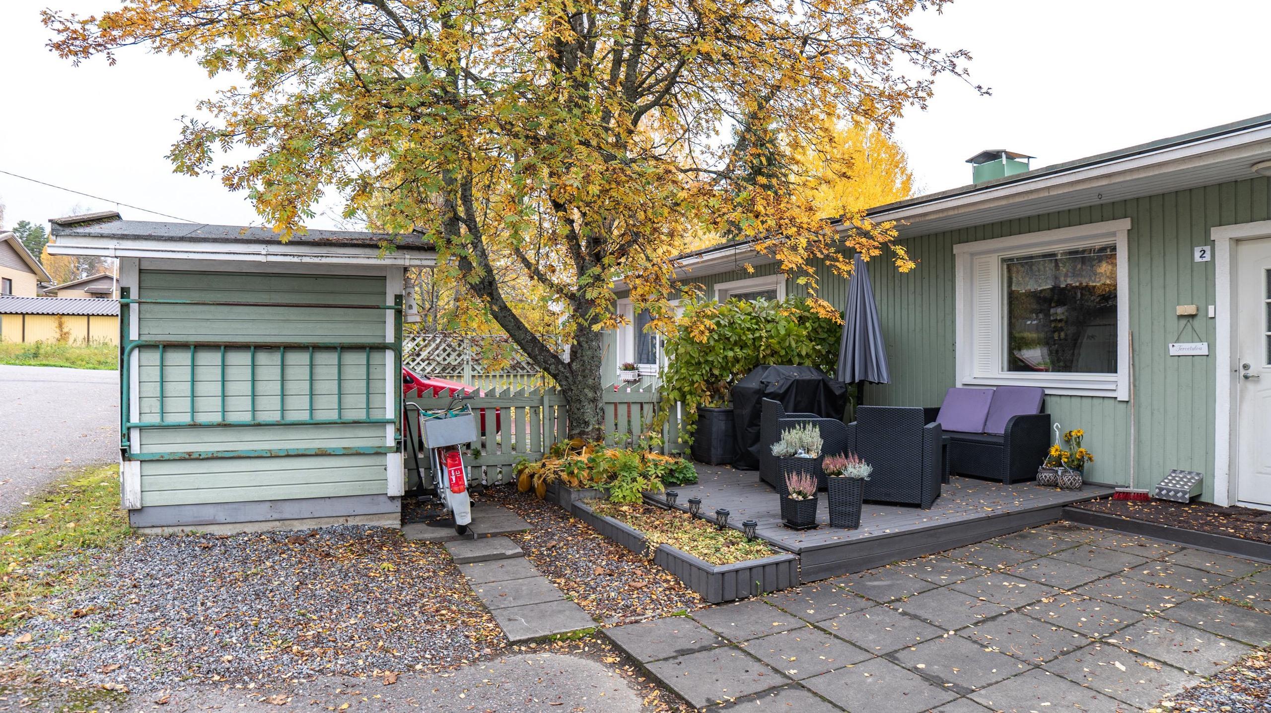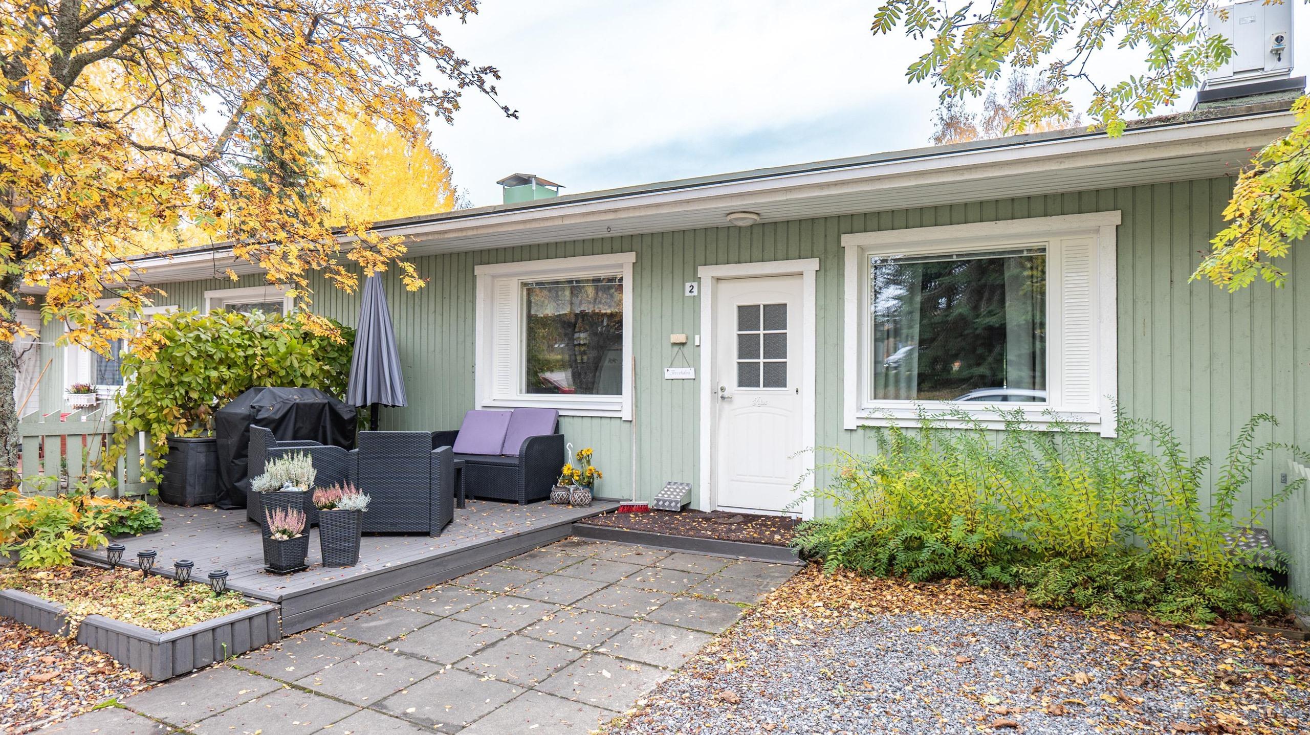 Etupihalla on viihtyisä terassi, autoa voit säilyttää lähellä omaa ulko-ovea, ei siis pitkiä matkoja kauppakassien kantamista.
