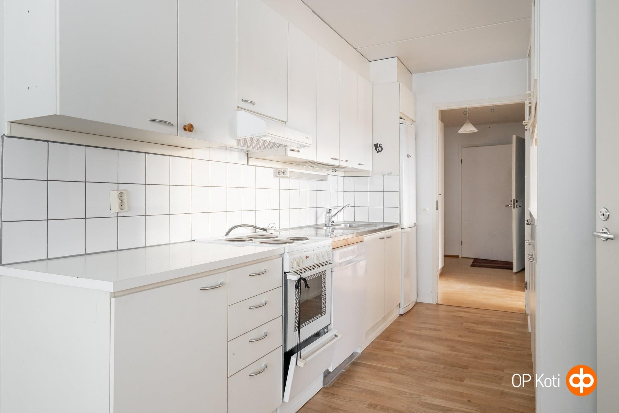 - Jääkaappipakastin, lattialiesi, liesituuletin, astianpesukone, kiinteät valaisimet.
