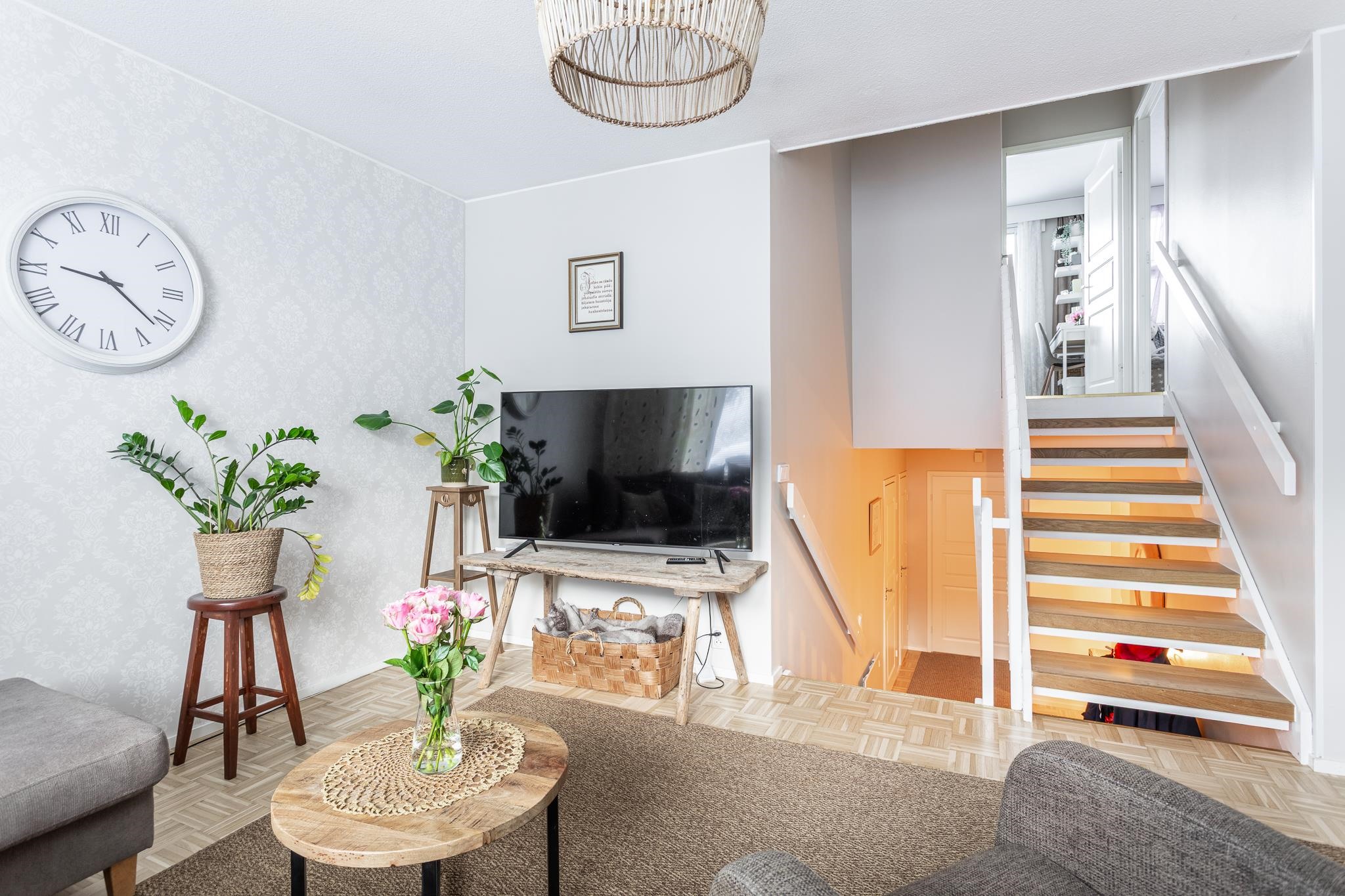 Tervetuloa tutustumaan tähän upeaan rivitalokotiin, jossa kauniit sävyt ja huolella valitut materiaalit luovat harmonisen tunnelman. Avarat ja valoisat tilat tarjoavat mahdollisuuden nauttia arjesta ja juhlahetkistä yhdessä perheen ja ystävien kanssa.