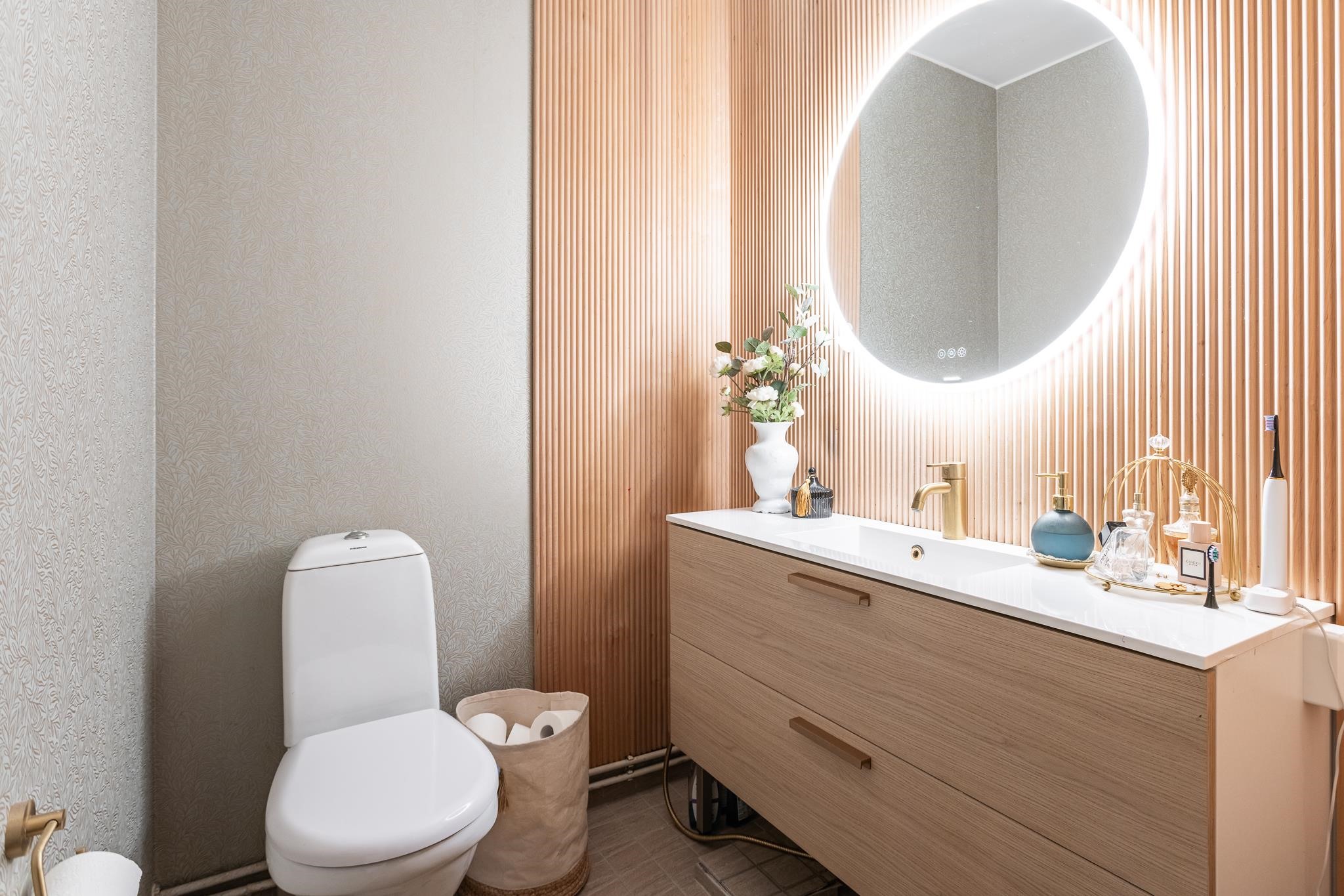 - Sauna, sähkökiuas, kylpyhuone, erillinen wc, suihku, suihkuseinä, peilit, peilikaappi, allaskaappi, pesukoneliitäntä, lattialämmitys kph, kiinteät valaisimet. Kph, sauna, wc ja yläkerran wc remontoitu kokonaan vuonna 2024