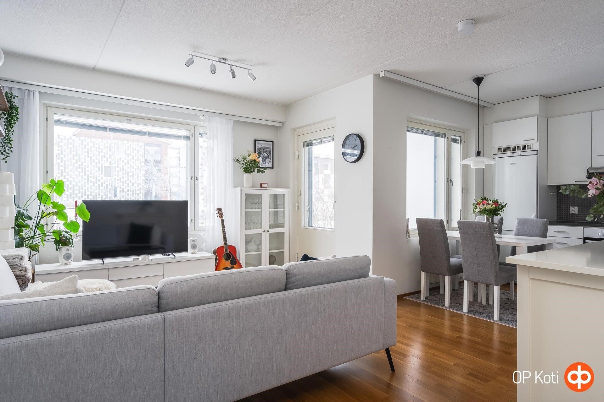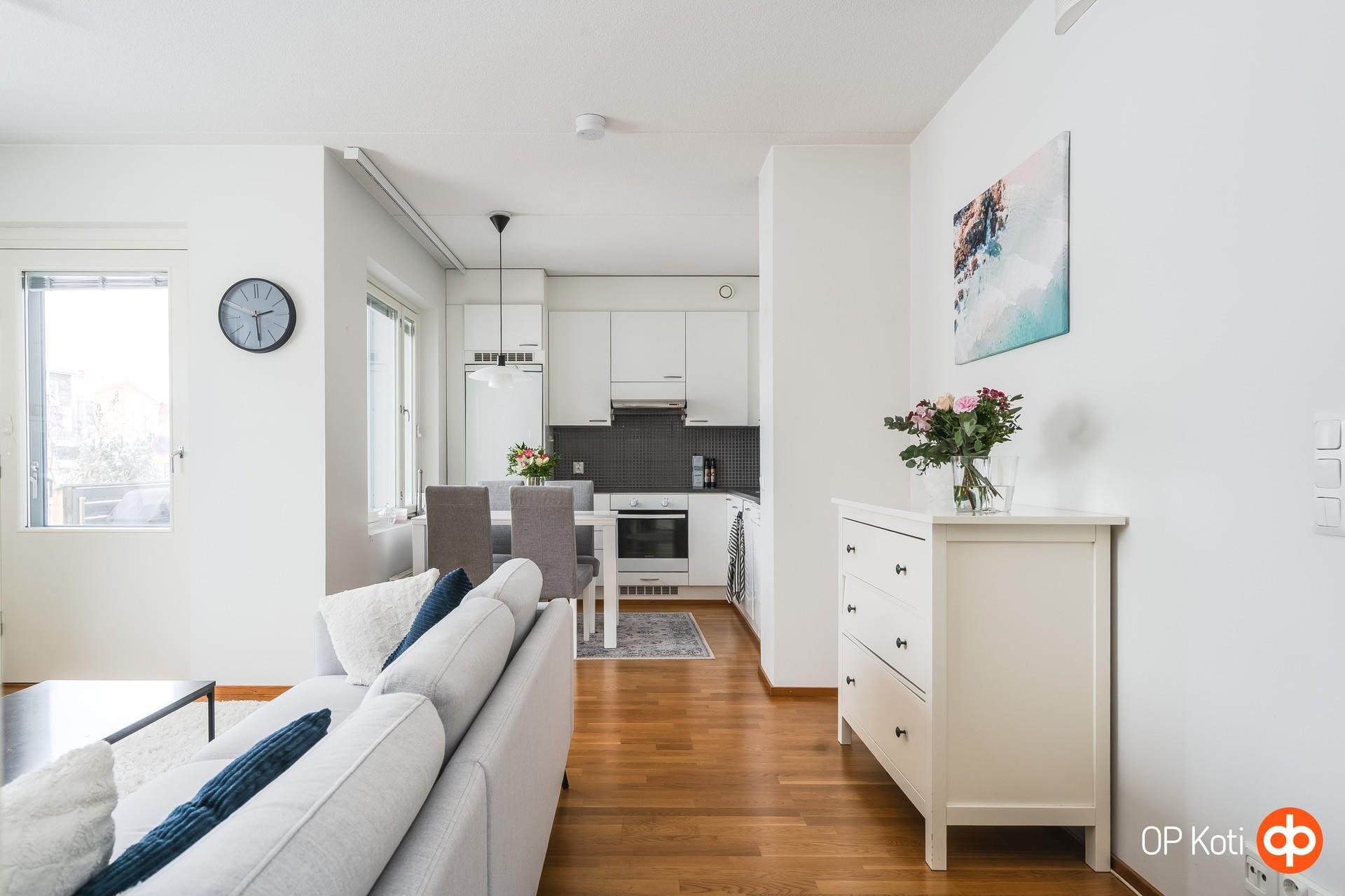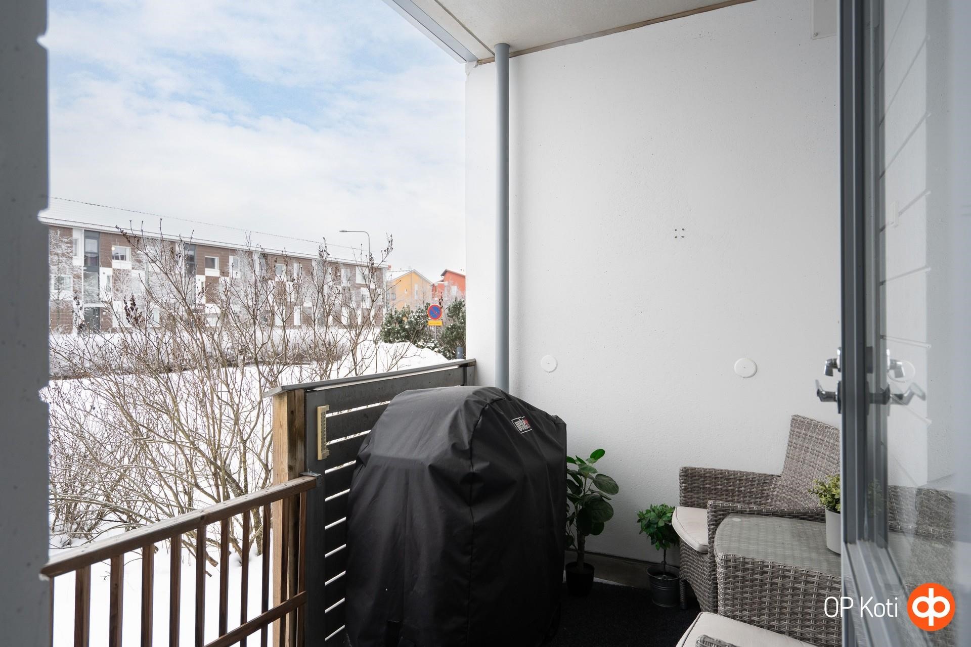 Taloyhtiö on nuori ja pidetty, ja lähialue tarjoaa kaikkea, mitä elämiseen tarvitsee: palveluita, vehreitä ulkoilureittejä, juna-aseman kävelymatkan päässä sekä Tikkurilan sykkivän keskuksen aivan lähettyvillä. Kun haluat kotiin, joka tuntuu oikealta heti ovella, tämä asunto täyttää toiveet ja antaa vähän enemmänkin.