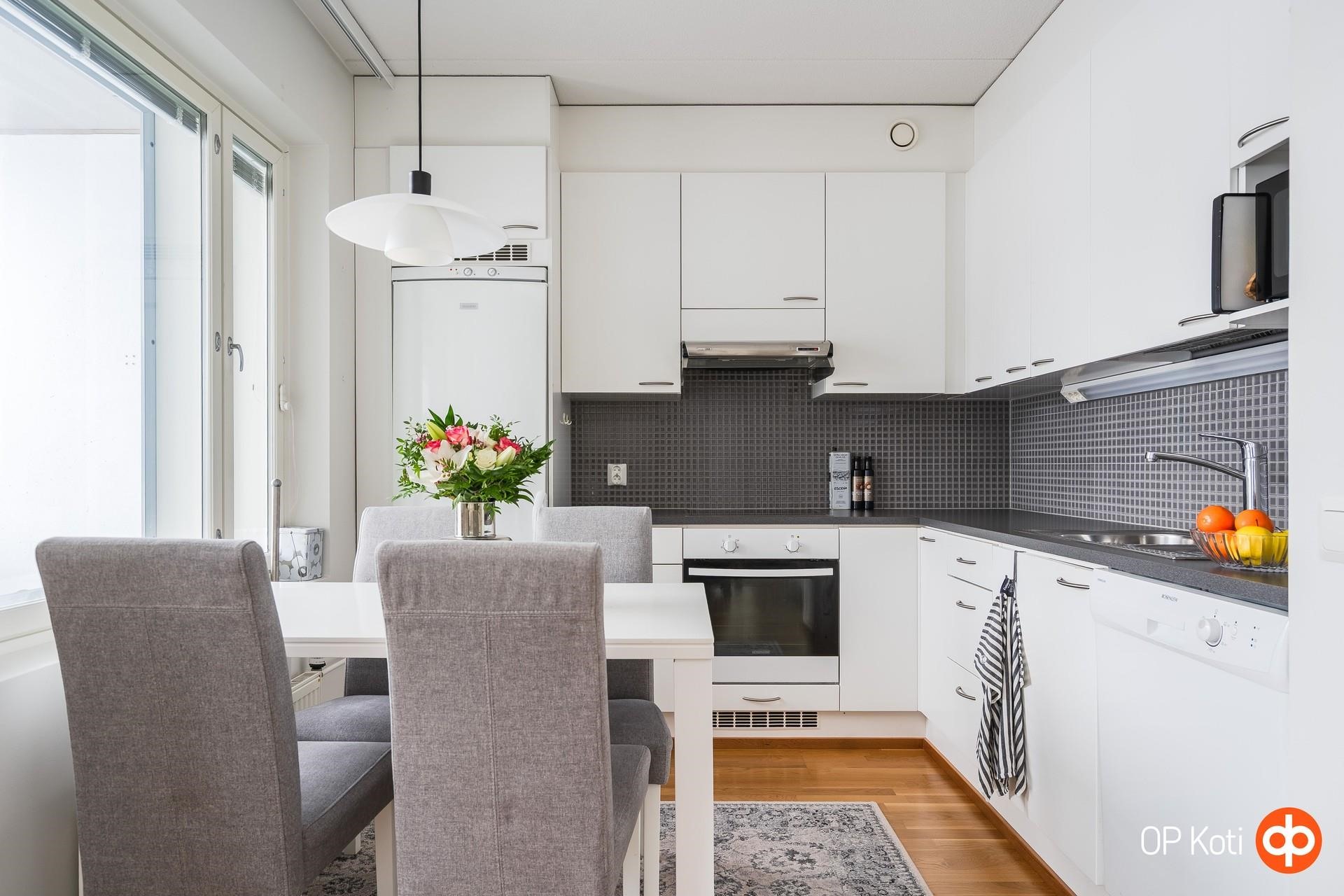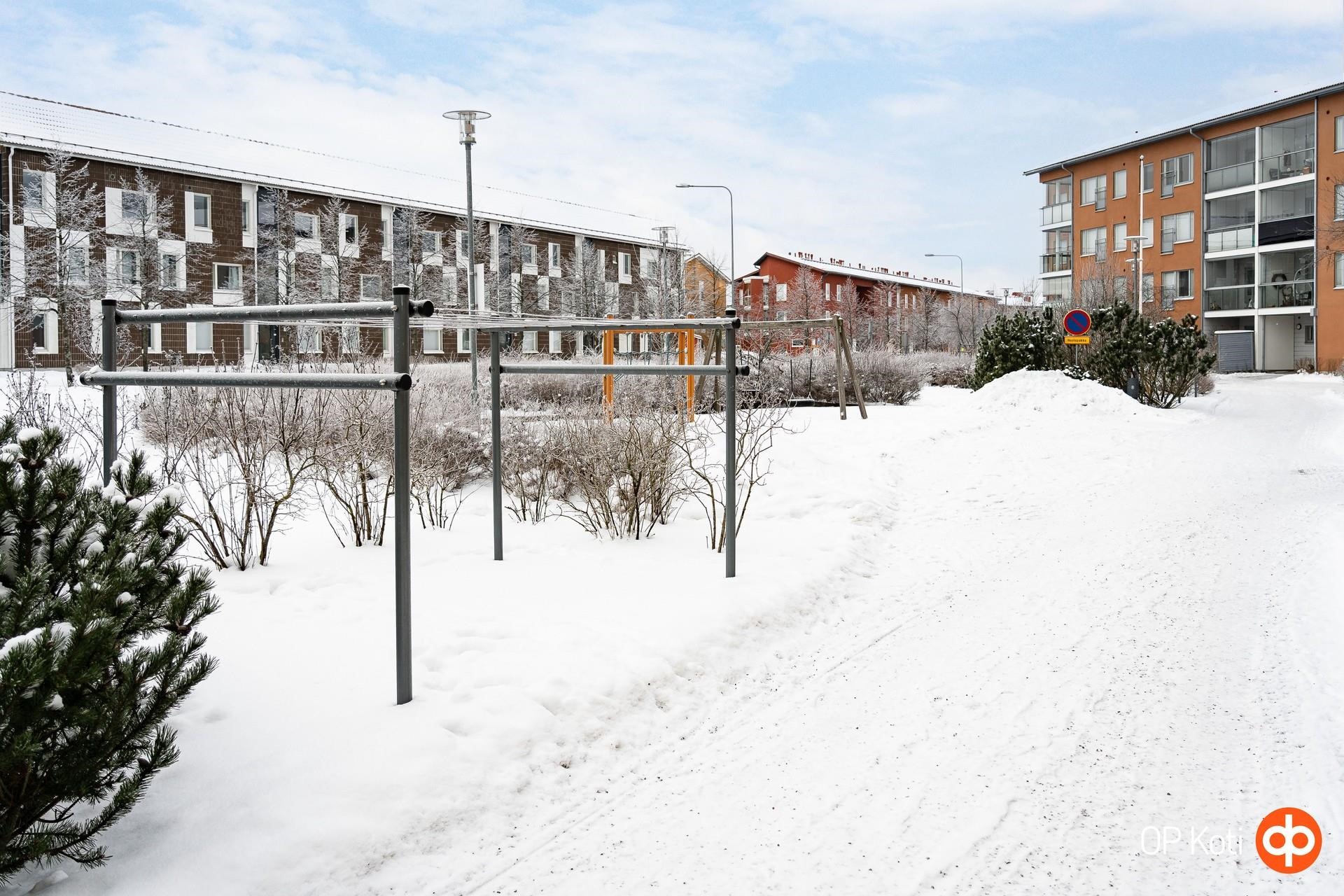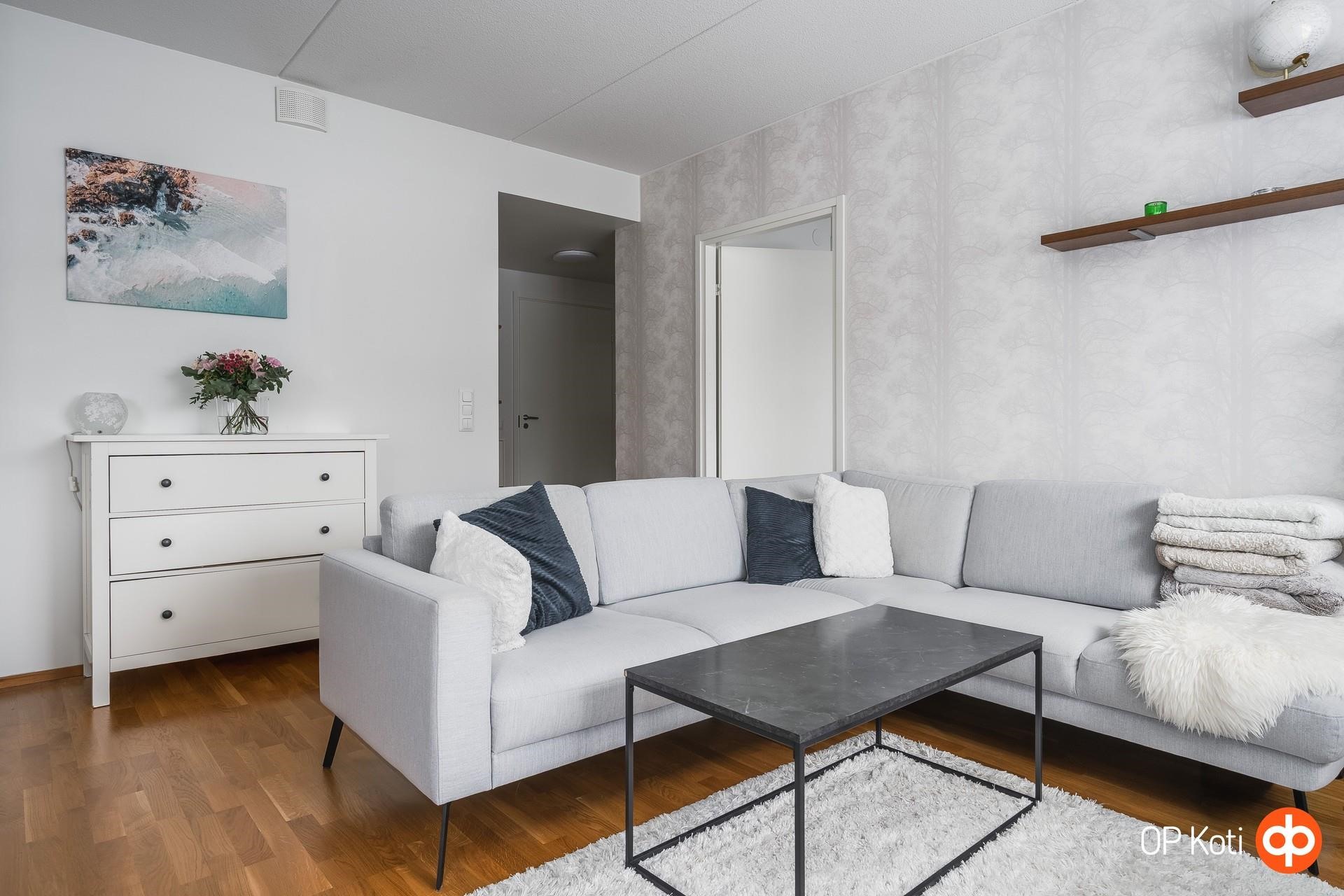 Taloyhtiö on nuori ja pidetty, ja lähialue tarjoaa kaikkea, mitä elämiseen tarvitsee: palveluita, vehreitä ulkoilureittejä, juna-aseman kävelymatkan päässä sekä Tikkurilan sykkivän keskuksen aivan lähettyvillä. Kun haluat kotiin, joka tuntuu oikealta heti ovella, tämä asunto täyttää toiveet ja antaa vähän enemmänkin.