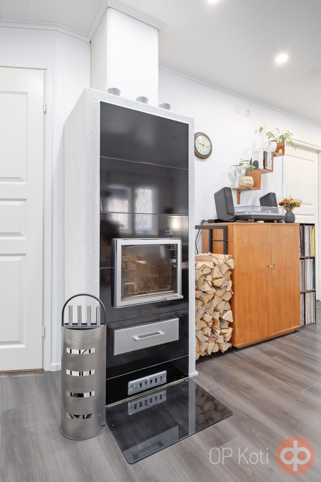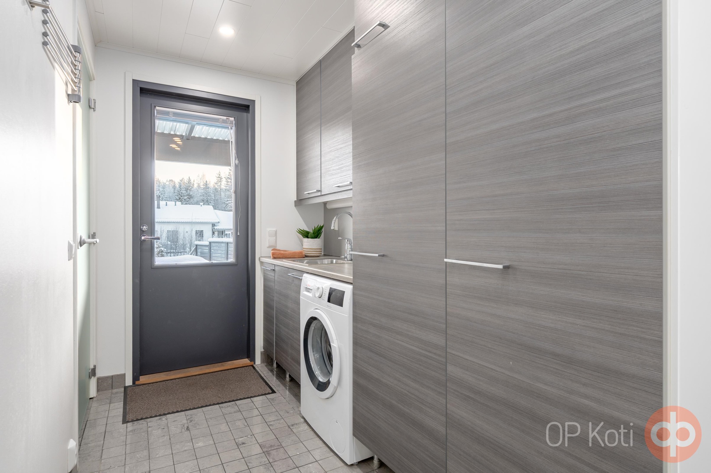Arjen toimivuutta lisäävät tilava kodinhoitohuone, erillinen wc sekä erillinen vaatehuone ja runsaasti kiinteitä säilytyskomeroita. Tyylikkäässä kylpyhuoneessa ja saunassa pääset rentoutumaan, ja varaava takka luo lämpöä ja tunnelmaa viileinä iltoina.