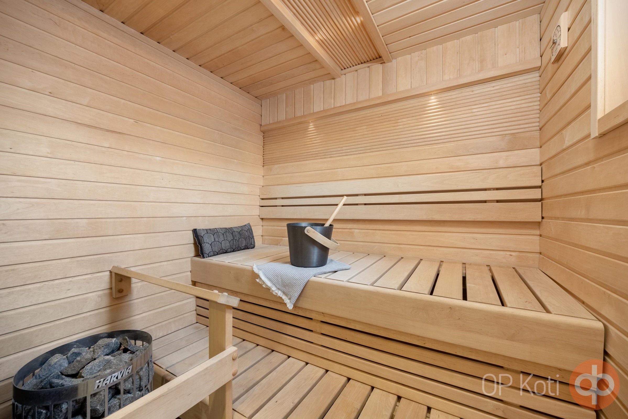 - Sauna, sähkökiuas, kylpyhuone, erillinen wc, suihku, suihkuseinä, peilit, pesukoneliitäntä, lattialämmitys, kiinteät valaisimet.