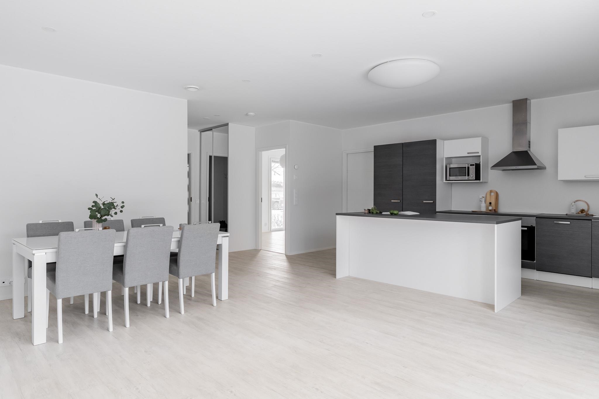 Tässä Perennakdun ihastuttavassa asunnossa arki toimii hyvien ratkaisujen ansiosta. Yhdessä tasossa oleva 80 neliön pohjaratkaisu ja siistit pinnat tekevät kodista valoisan ja avaran tuntuisen. Lisäksi iso terassi ja yksityinen takapiha tuovat mukavasti lisätilaa kesäpäivien oleskeluun.