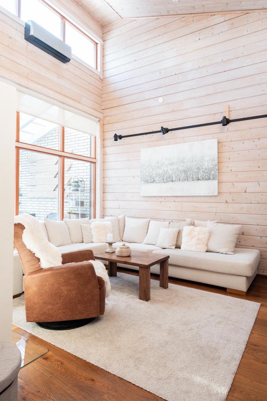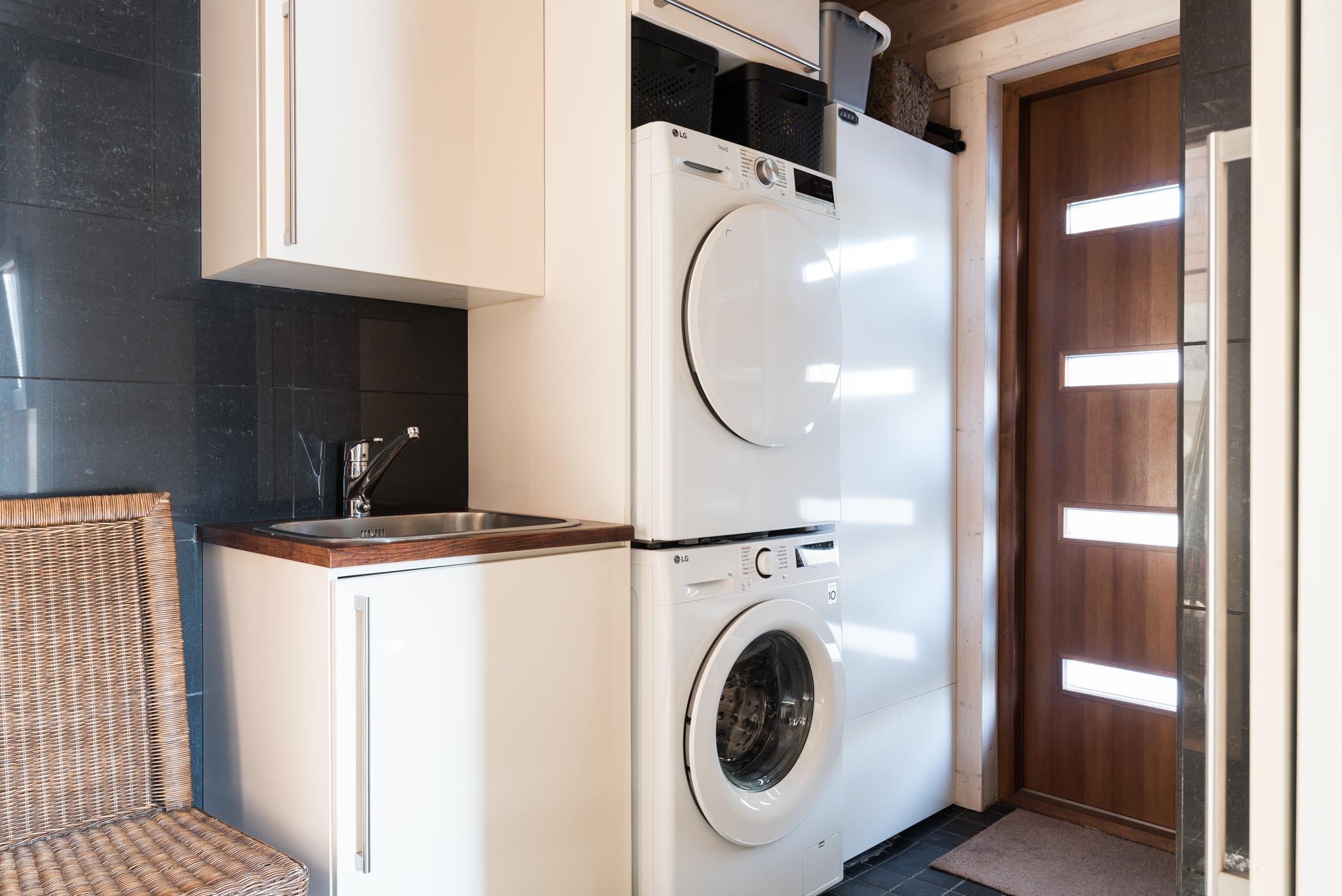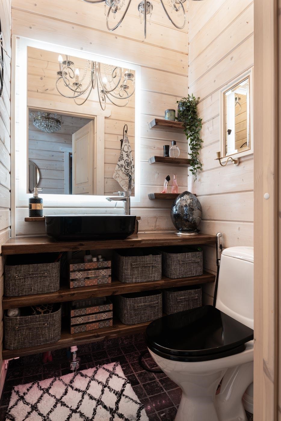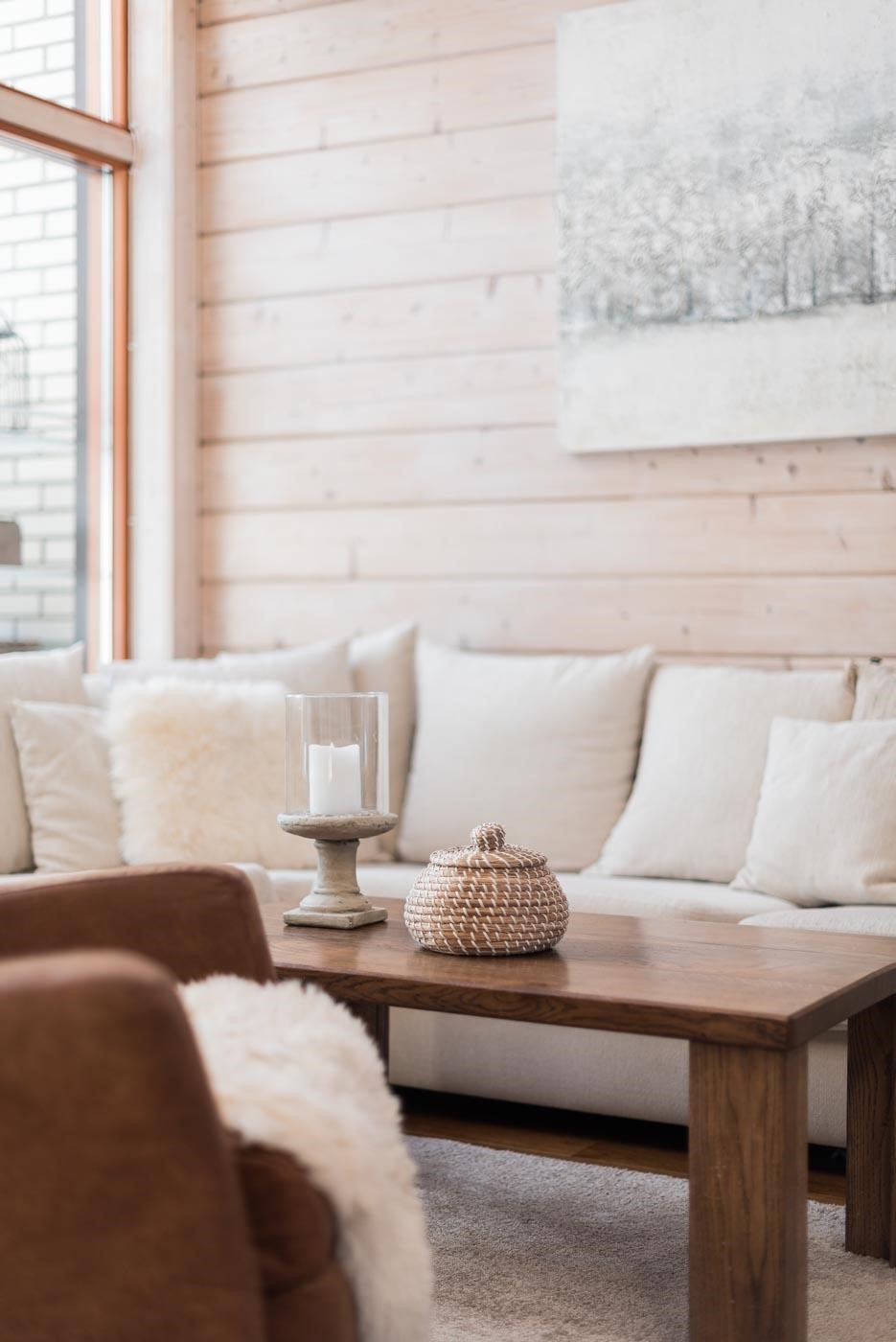 Asunnon pohjaratkaisu on suunniteltu arjen sujuvuutta silmällä pitäen. Neljä makuuhuonetta ja parvi, iso keittiö ja ruokailutila, kaksi wc:tä, vaatehuone, kodinhoitohuone ja sauna tarjoavat monipuoliset tilat niin perheen yhteisiin hetkiin kuin omaan rauhaan. Materiaalivalinnat ovat laadukkaat : keittiössä kivitasot, parketti ja laattalattiaa, hirsiseinät sekä makuuhuoneissa seinien osalta tyylikkäät yhdistelmät kiveä ja hirttä. Säilytystilaa löytyy runsaasti kaappitilojen, vaatehuoneen ja varastojen myötä. Talo lämpiää sähkötoimisella lattialämmityksellä, ilmalämpöpumpulla ja olohuoneessa sijaitsevalla takalla.