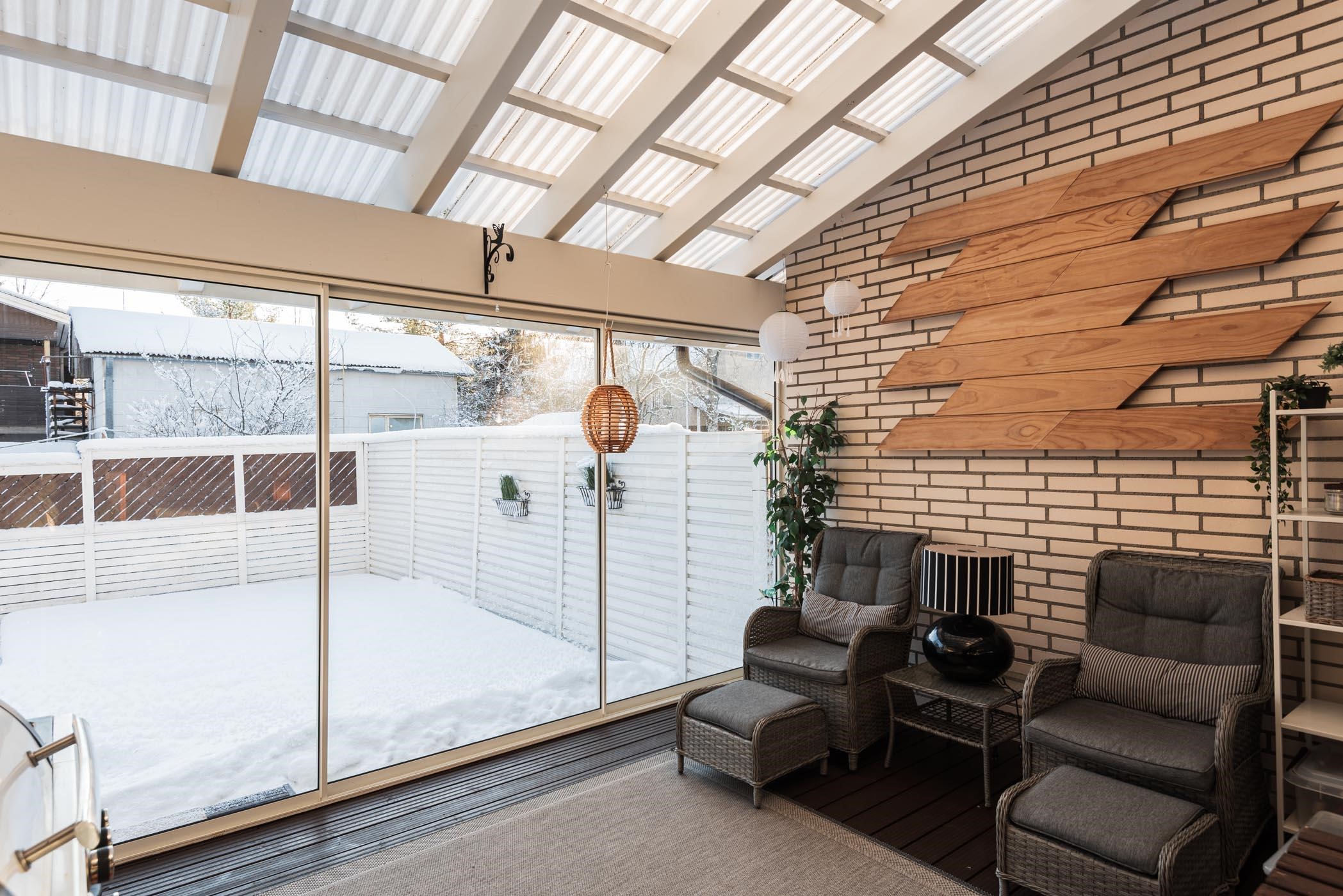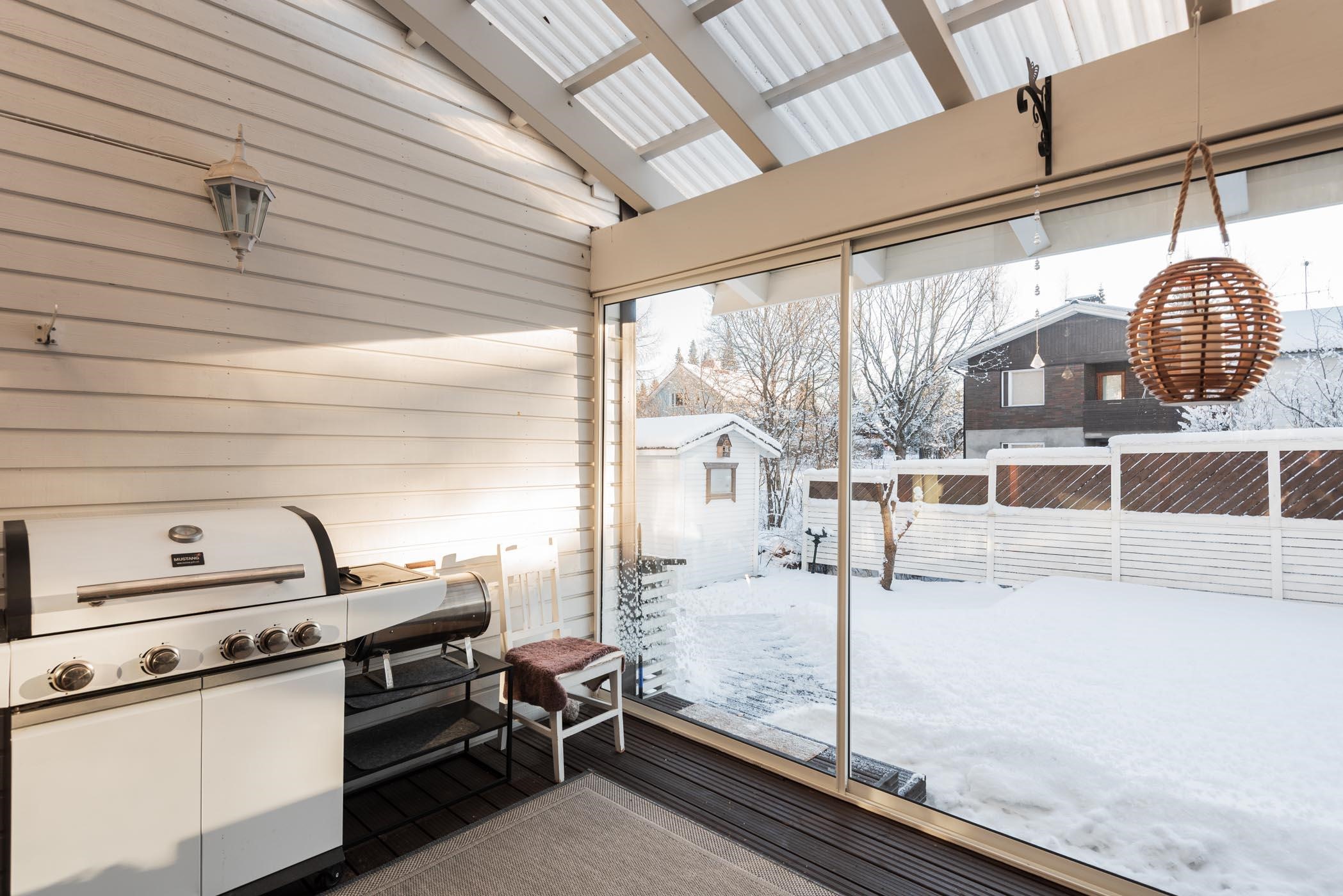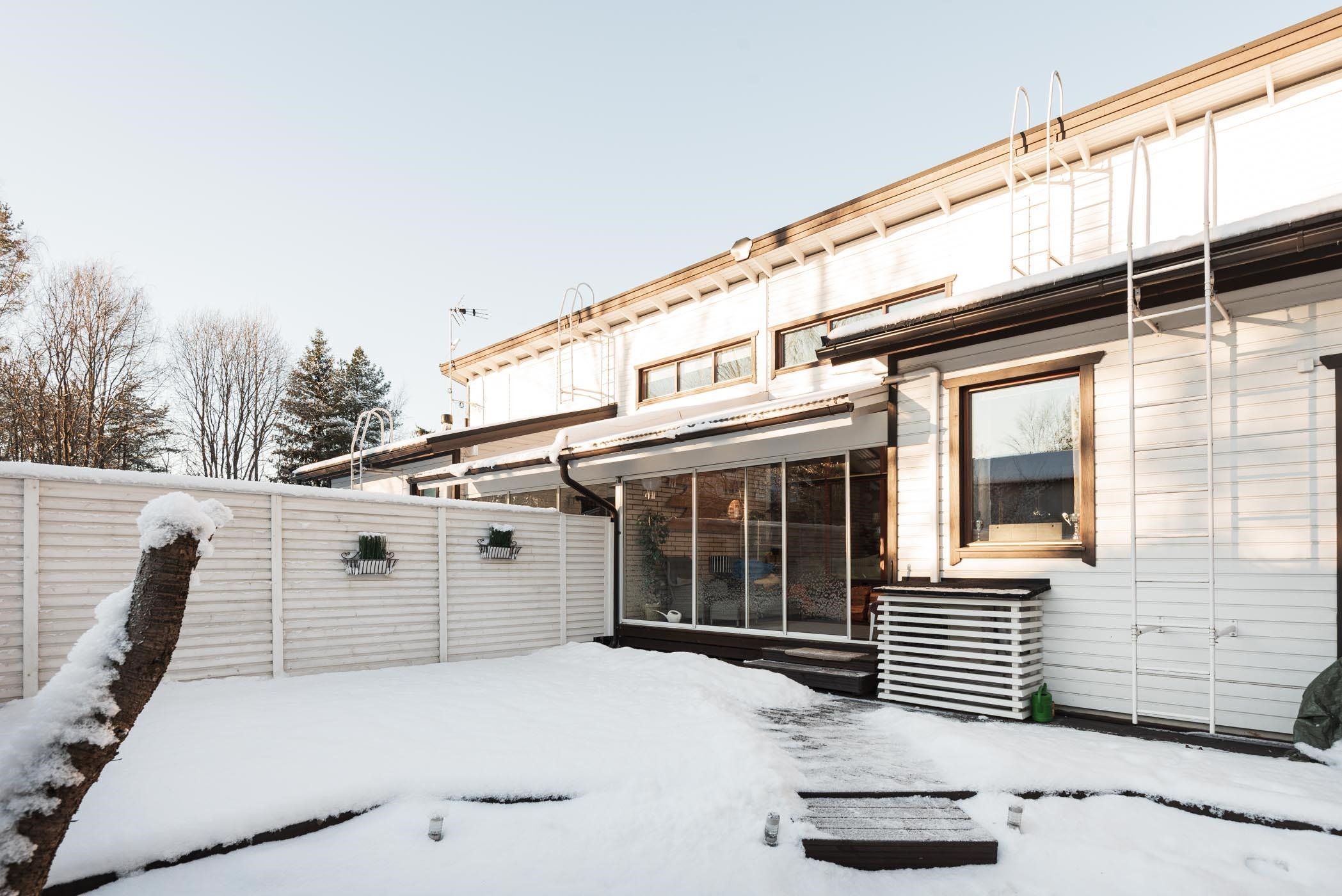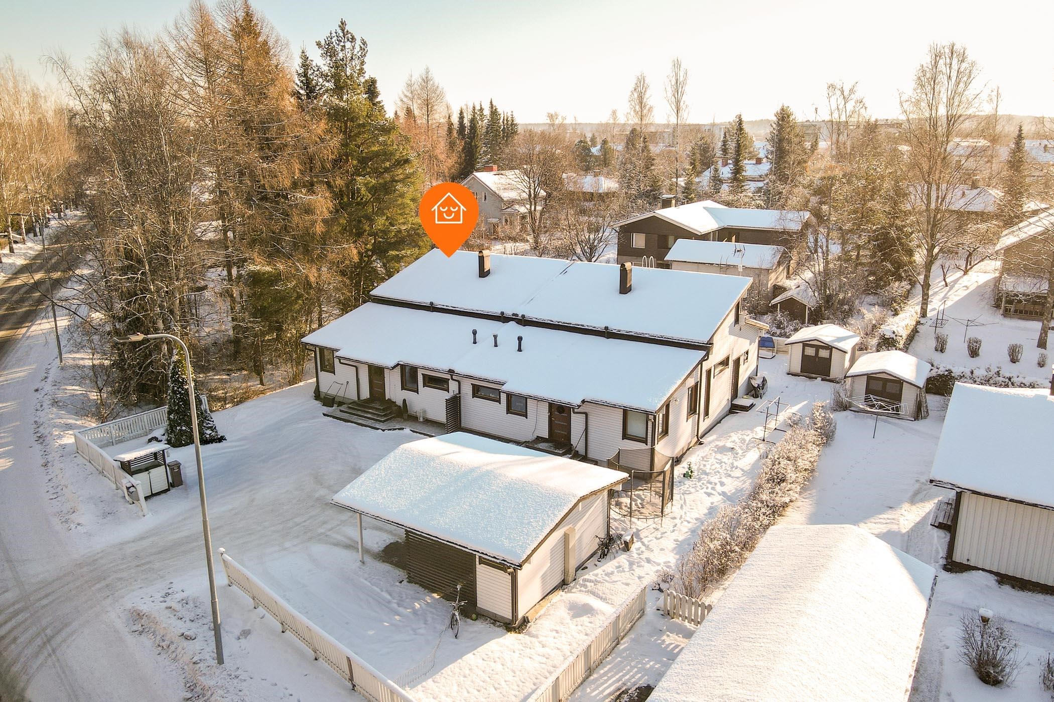 Tervetuloa asumaan Linnainmaan suositulle alueelle, jossa arki sujuu vaivattomasti lähellä kaikkia peruspalveluita. Tämä vuonna 2008 valmistunut hirsirakenteinen paritalokoti tarjoaa reilut tilat suuremmallekin perheelle. Tilava, valoisa ja avara koti hurmaa korkealla huonekorkeudellaan sekä runsaalla ikkunapinta-alallaan. Olohuoneen kautta on käynti noin 60 m²:n suurelle terassialueelle, josta osa on lasitettu. Takapiha avautuu etelään, joten päivänvaloa riittää.