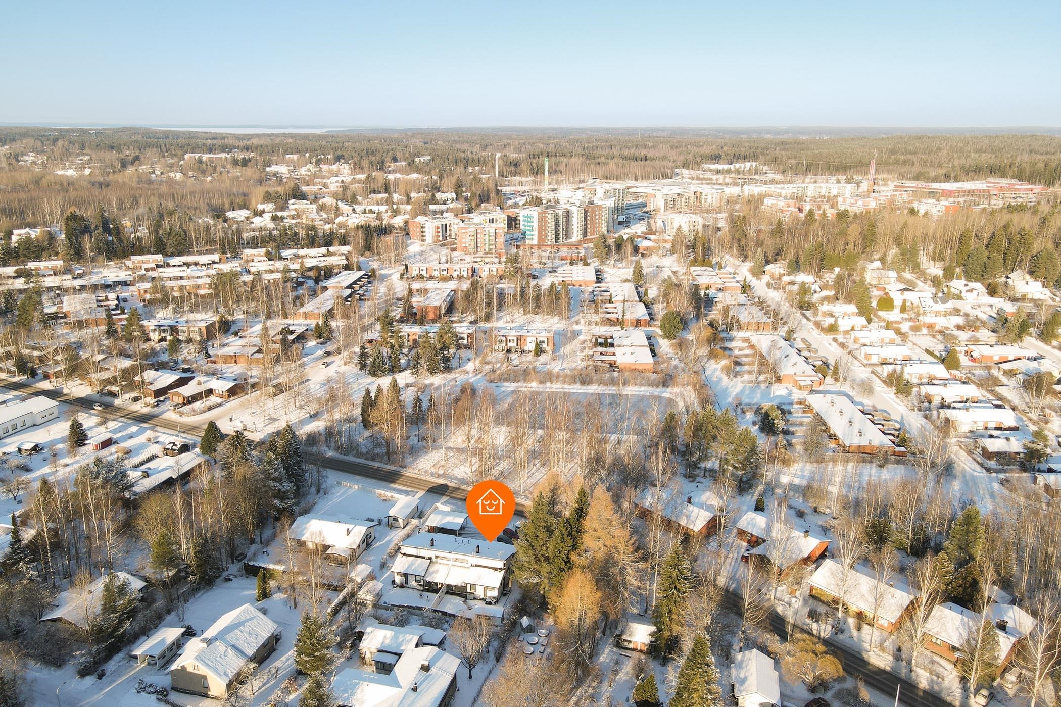 Linnainmaan palvelut löytyvät kävelyetäisyydeltä: Prisma, K-Citymarket, kuntosali ja terveysasema ym. ovat vain reilun kilometrin päässä. Koulut ja päiväkoti ovat lähietäisyydellä, ja bussipysäkille kävelet myös hetkessä. Vehreä ja rauhallinen ympäristö, hyvät ulkoilumaastot sekä nopea yhteys keskustaan tekevät tästä sijainnista erinomaisen. Autoille löytyy katospaikka, ja pihassa myös pysäköintitilaa.