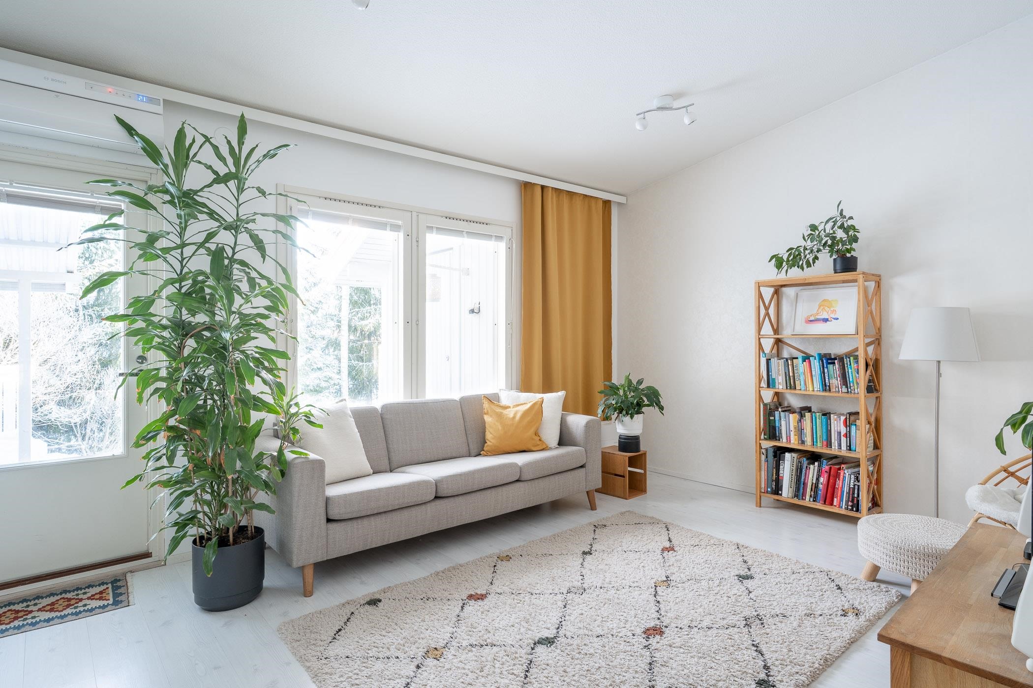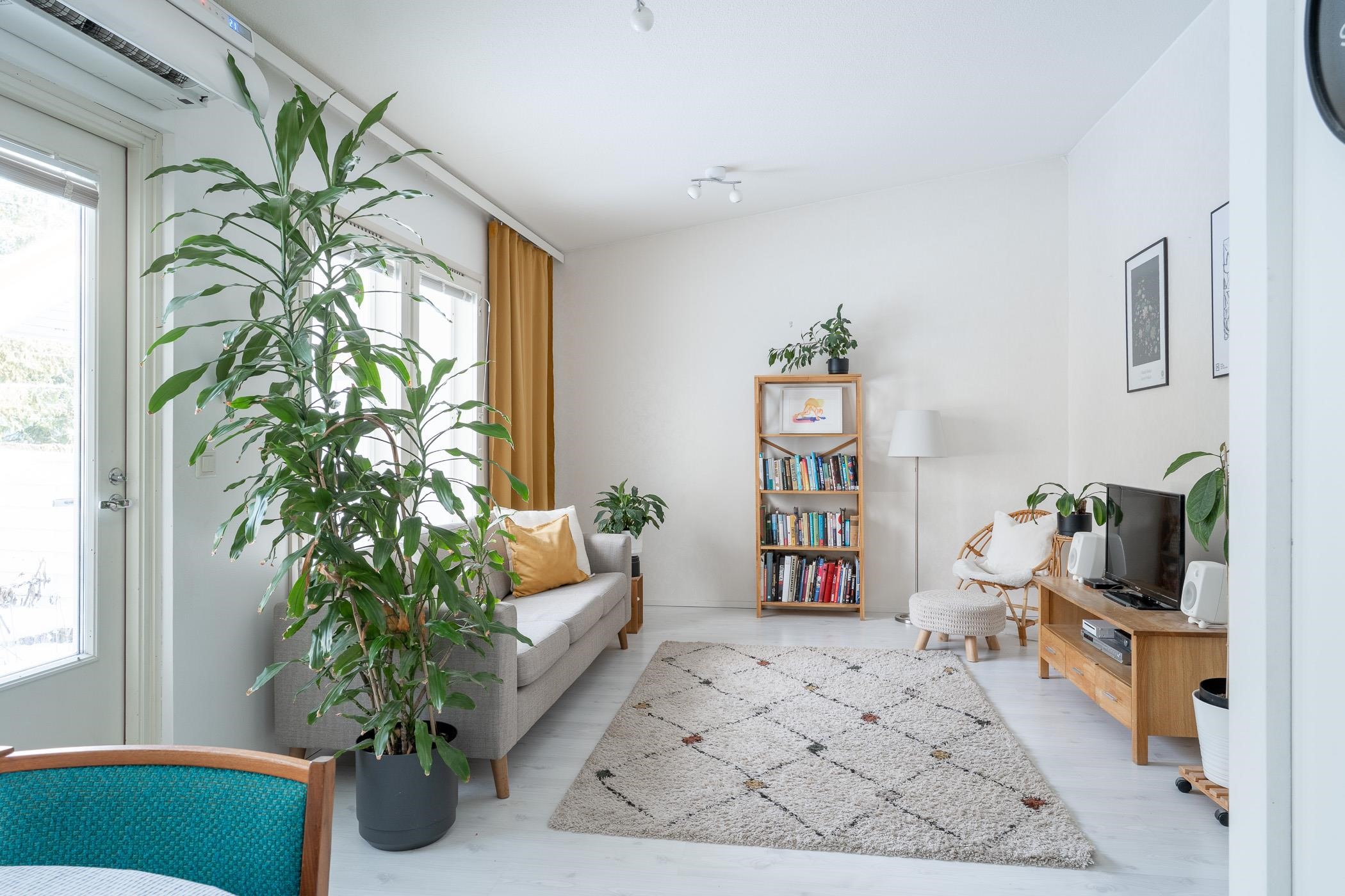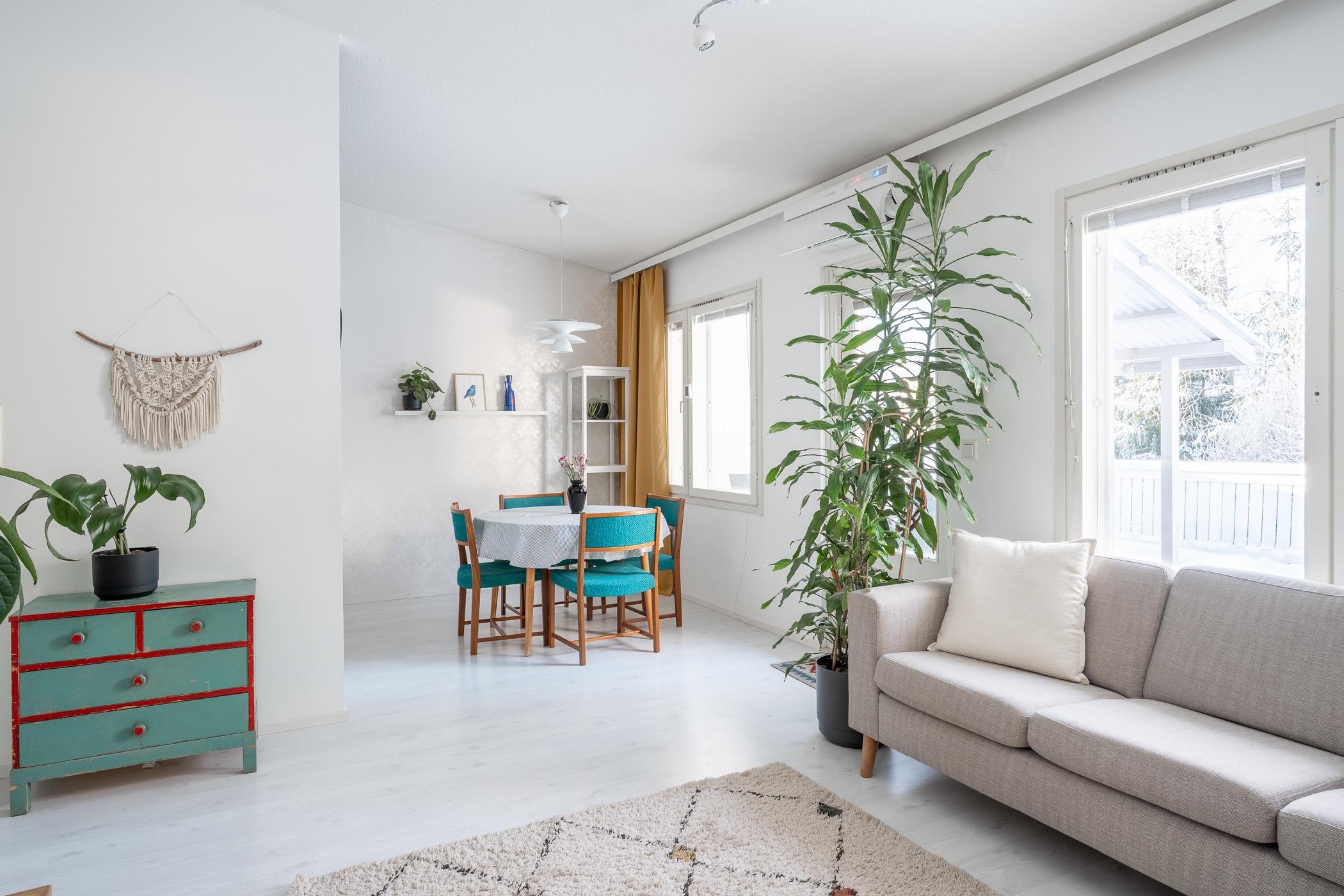 - Sähkö. Olohuoneessa ilmalämpöpumppu lämmitykseen sekä kesähelteillä viilennykseen.