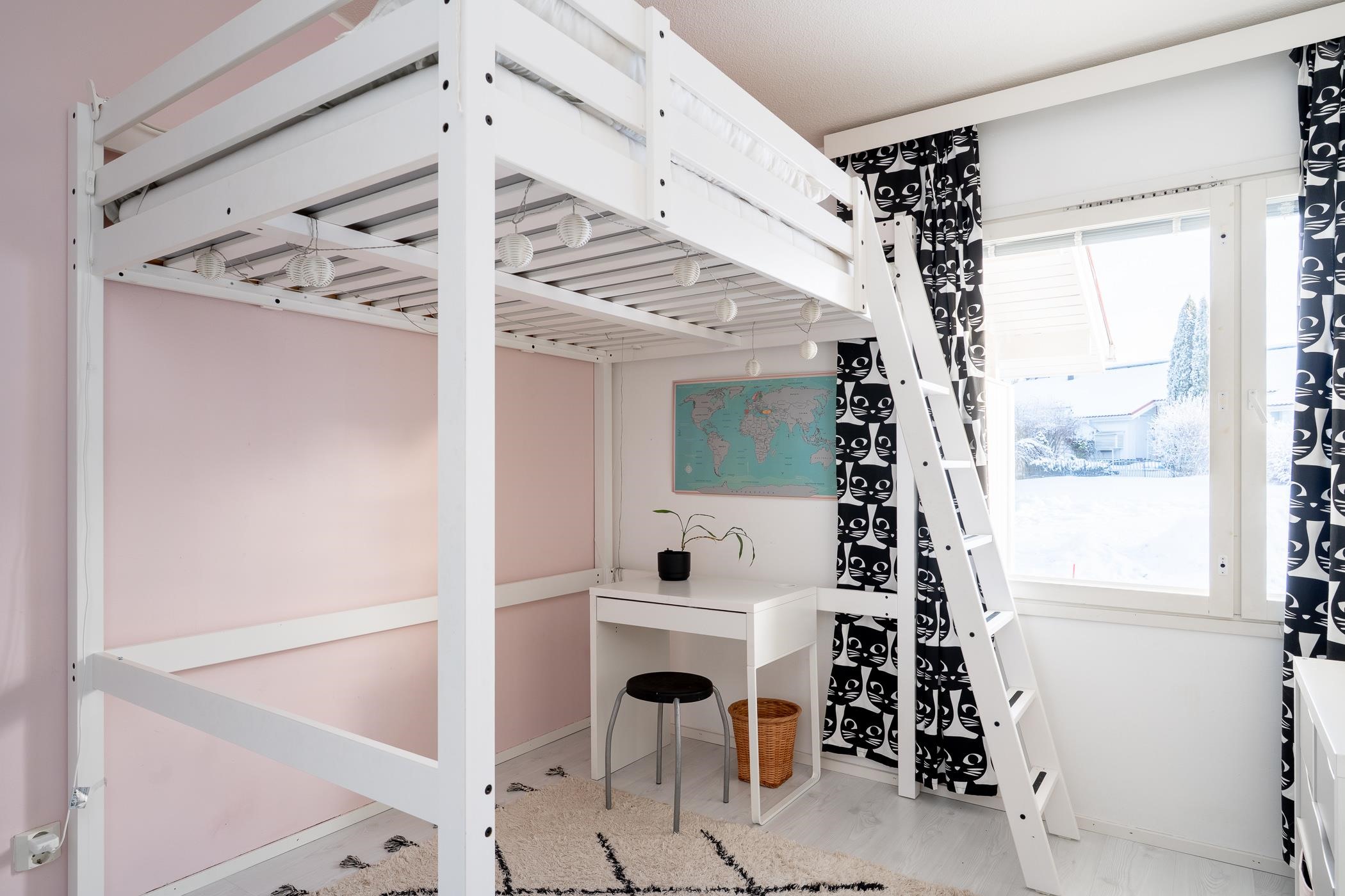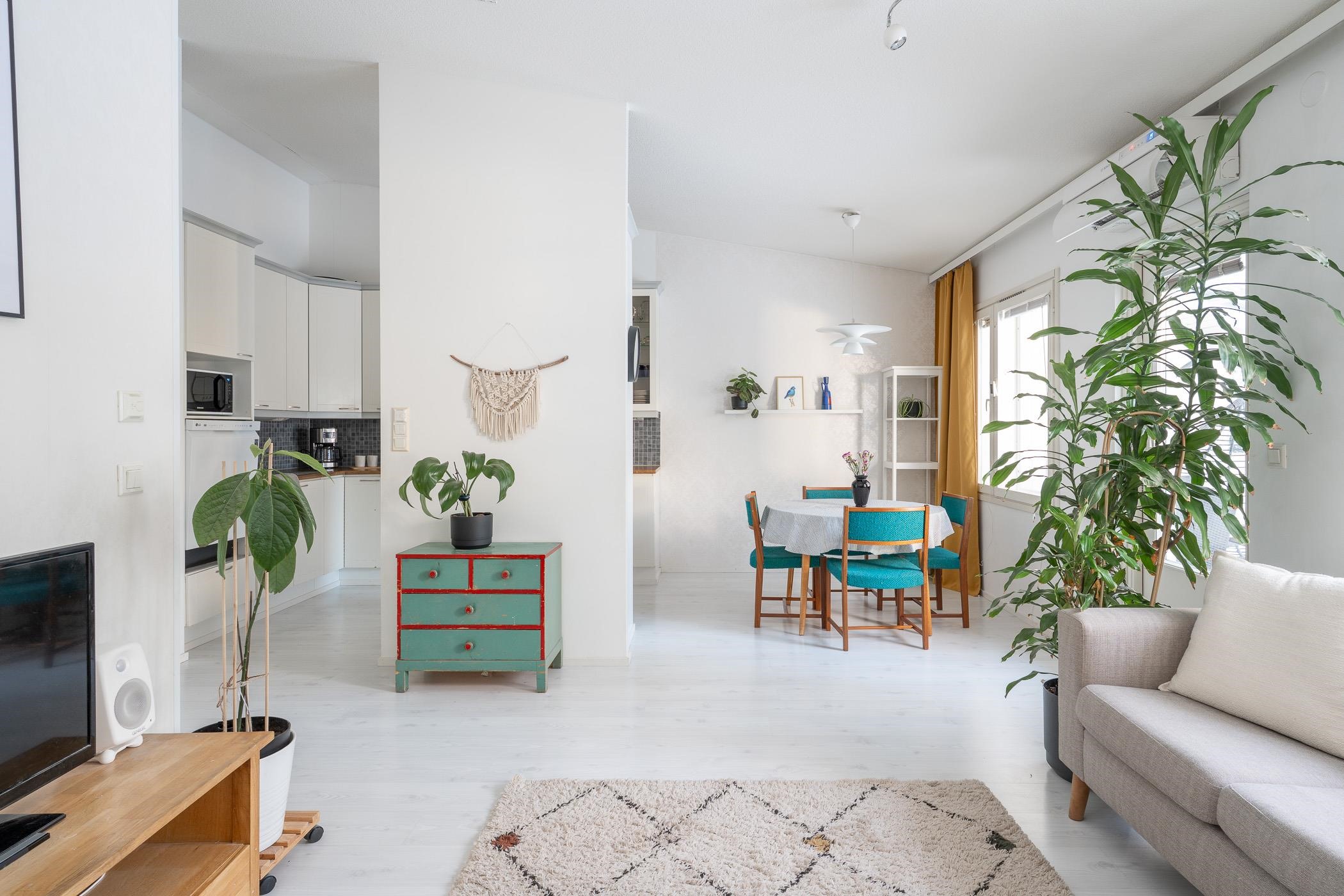 Tervetuloa asumaan Kurikan viihtyisälle ja rauhalliselle asuinalueelle, jossa arki ja vapaa-aika yhdistyvät sujuvasti. Tässä kodissa pääset nauttimaan huolettomasta asumisesta yhdessä tasossa, oman suojaisan takapihan rauhassa. Kodin avara ja valoisa tunnelma syntyy korkeasta viistokatosta sekä fiksusta pohjaratkaisusta - täällä neliöt on todellakin käytetty tehokkaasti. Tämä koti sopii niin pienelle perheelle, pariskunnalle kuin tilaa kaipaavalle yksinasujalle. Säilytystilan riittävyydestä pitää huolen ulkoiluvälinekatos, ulkovarasto, vaatehuone sekä erillinen lämmin häkkivarasto yhtiön tiloissa. Huoneistolle kuuluu autokatospaikka yhtiön pihasta