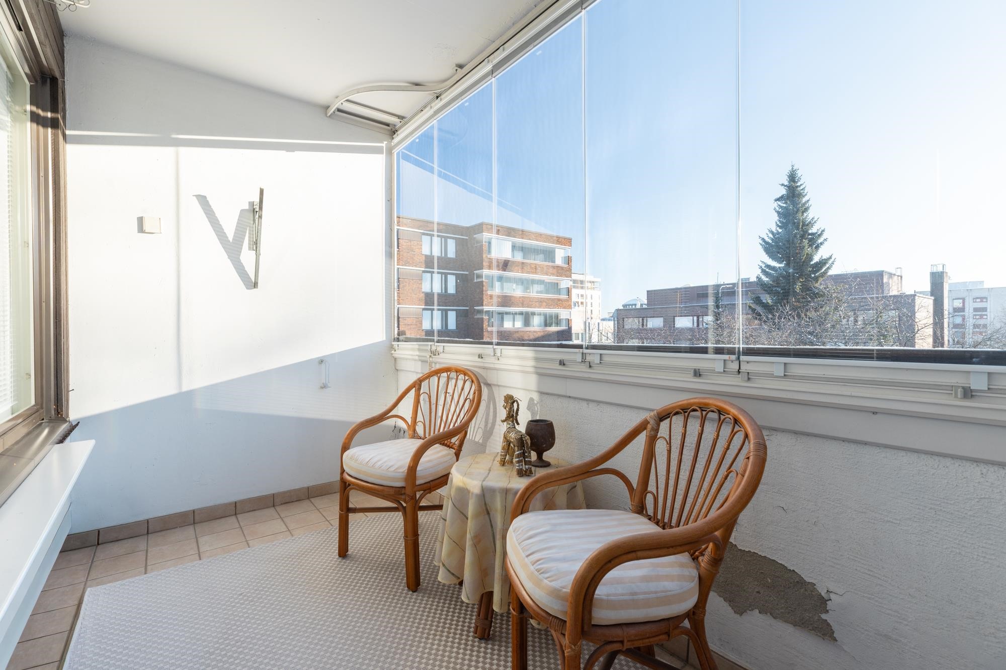 Asunnon kaikki pinnat on käyty läpi n. vuonna 2005 ja se onkin varsin siisti kokonaisuus. Asumismukavuutta lisää vehreällä näkymällä oleva lasitettu parveke, jossa rentoudut aikaisesta keväästä pitkälle syksyyn.