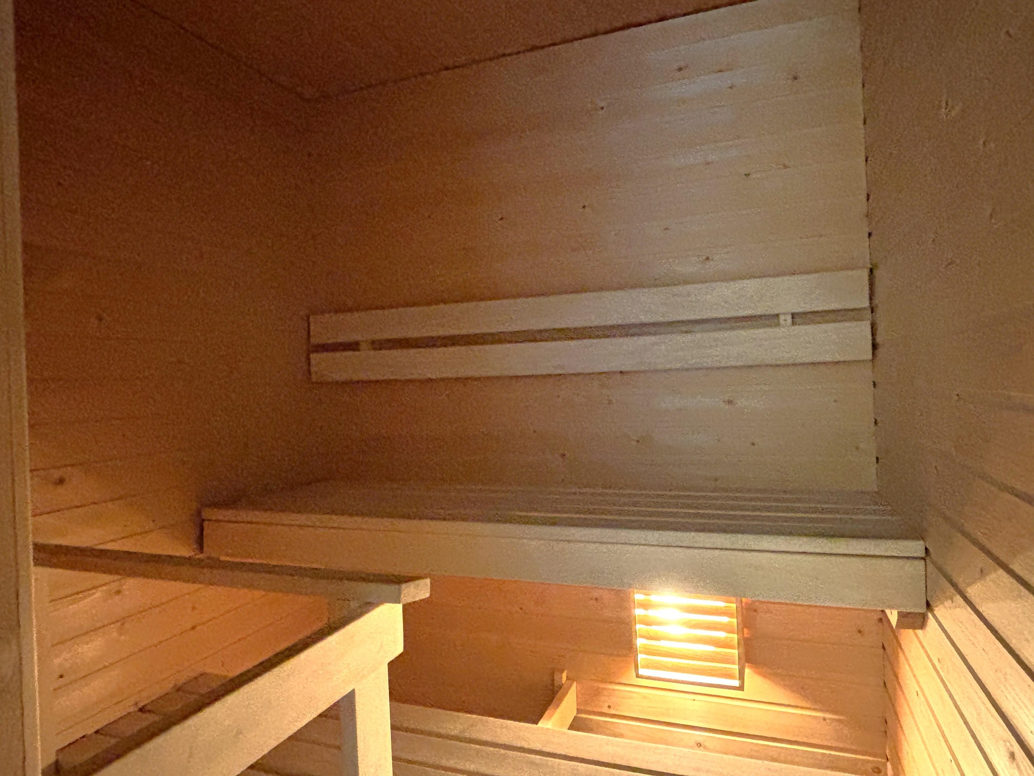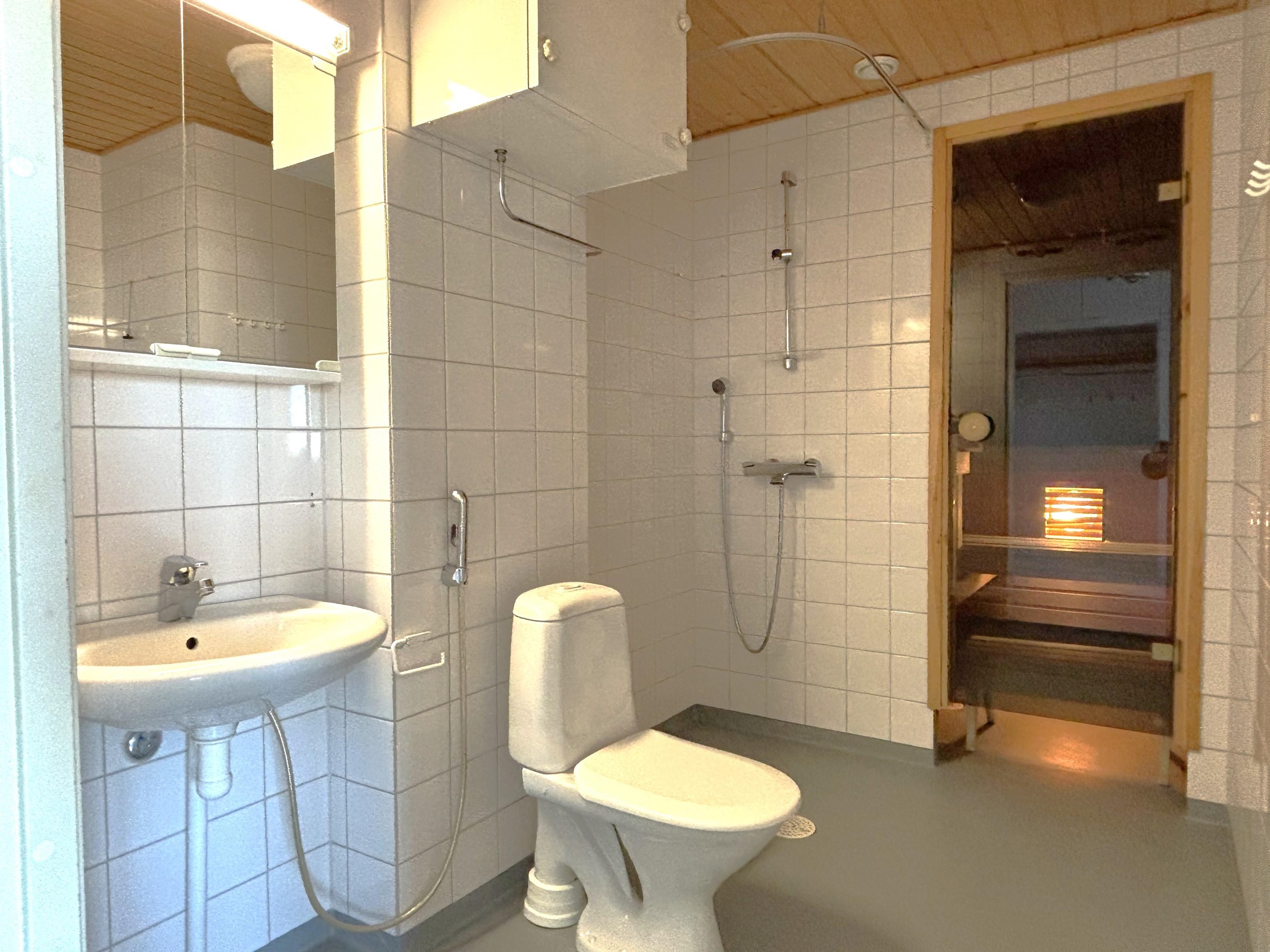 - Sauna, sähkökiuas, suihku, peilikaappi, pesukoneliitäntä.
