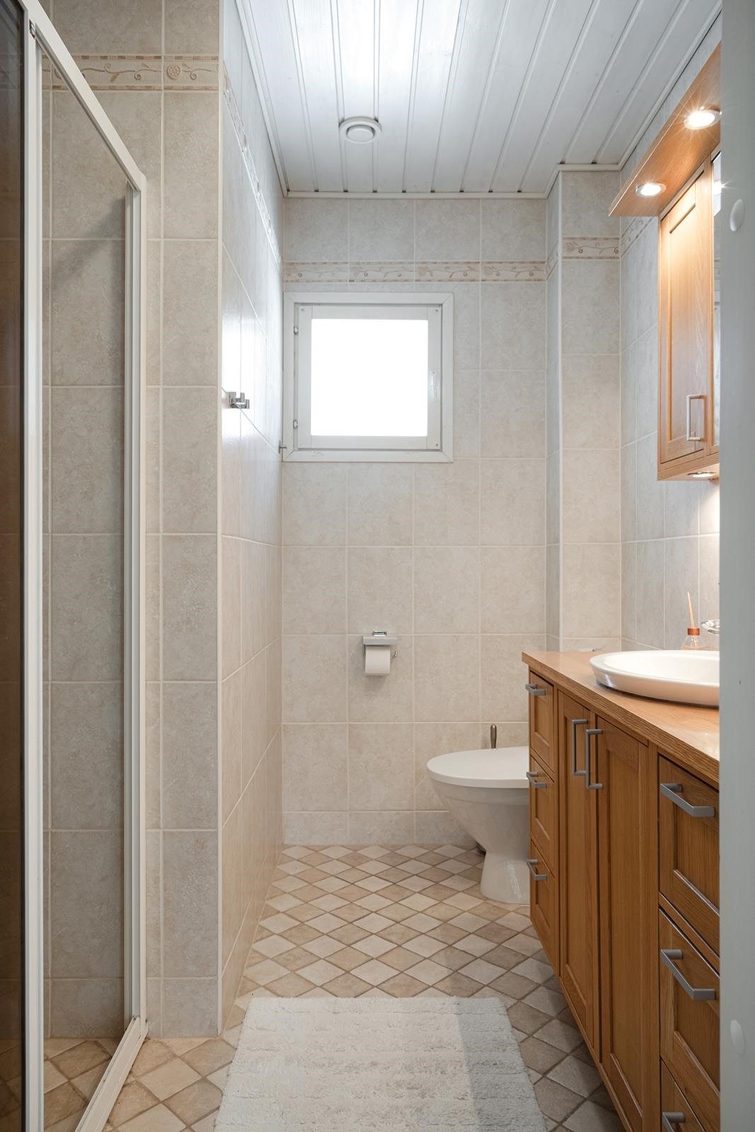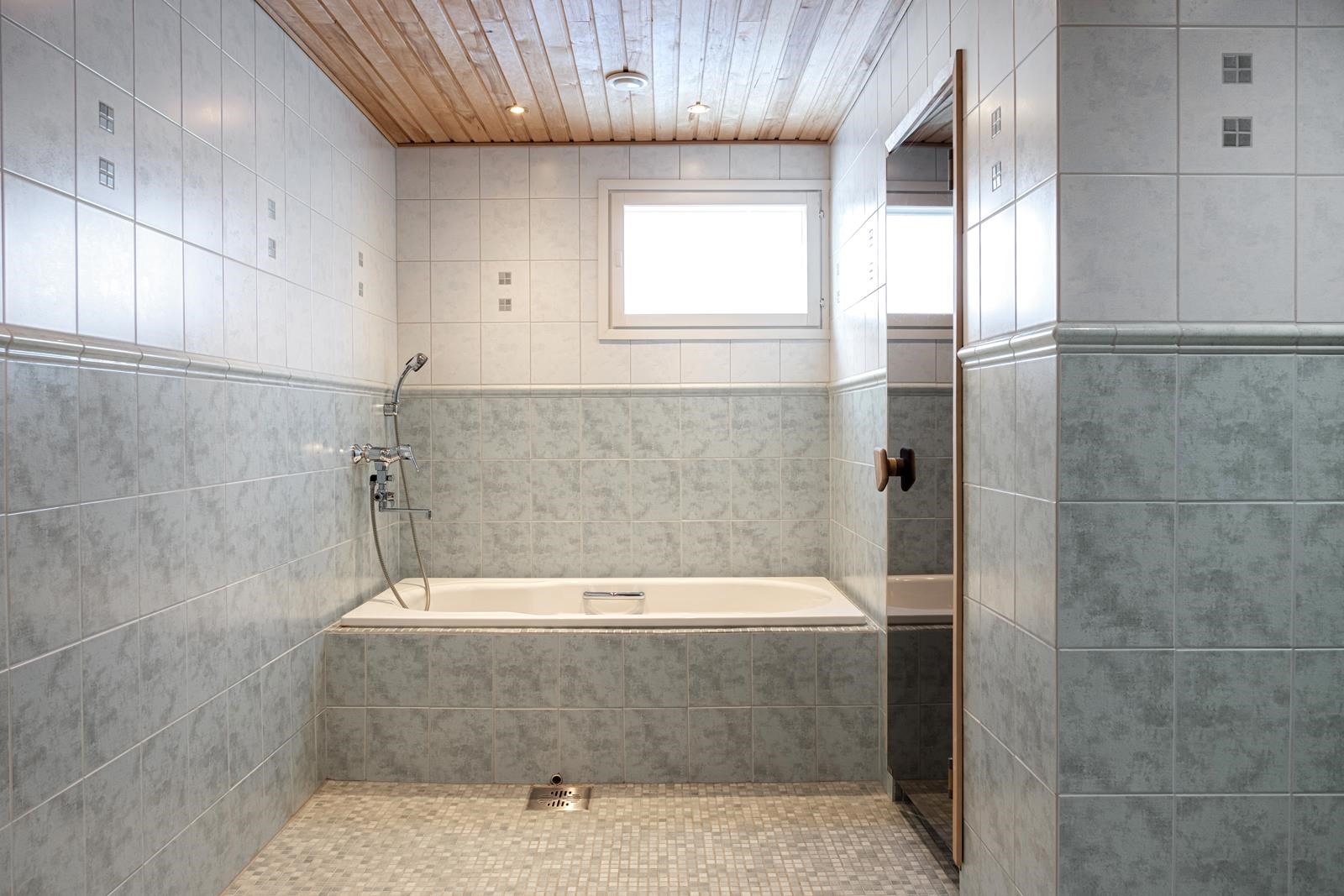 - Sauna, heti valmis sähkökiuas, kylpyhuone, wc, amme, peilit, peilikaappi, pesukoneliitäntä kodinhoitohuoneessa, lattialämmitys. Saunaosasto uusittu 2006, yläkerran kph/wc uusittu 2006.