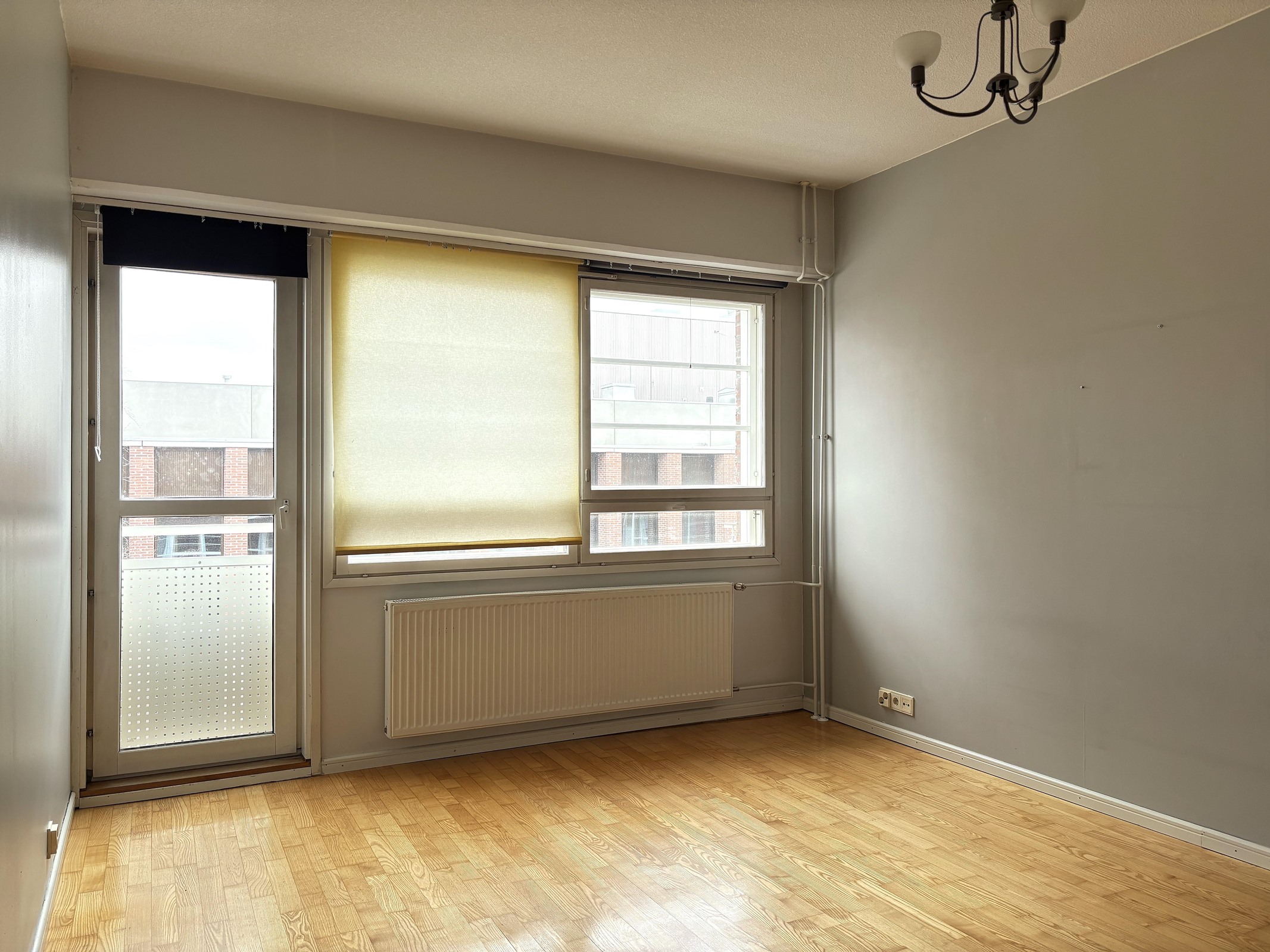 Seinät: maalattu. Lattiat: parketti. KPH, s: laatoitettu, paneli.